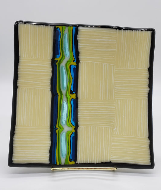 Parquet pattern art glass dish
