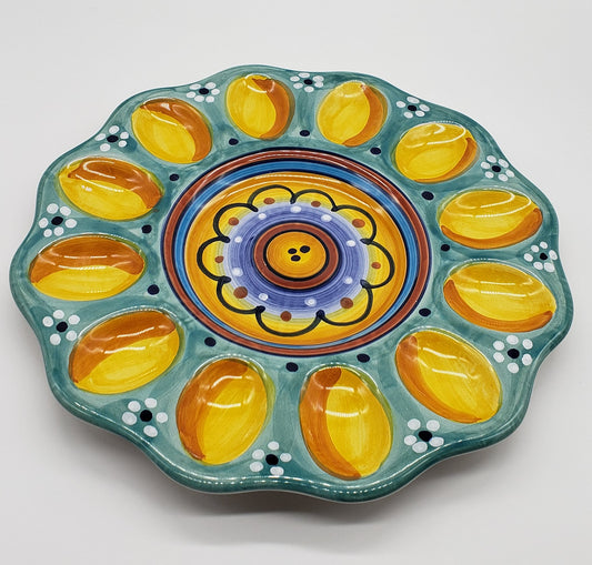 Deruta Italy Deviled Egg Plate Pottery Dish Hand Painted