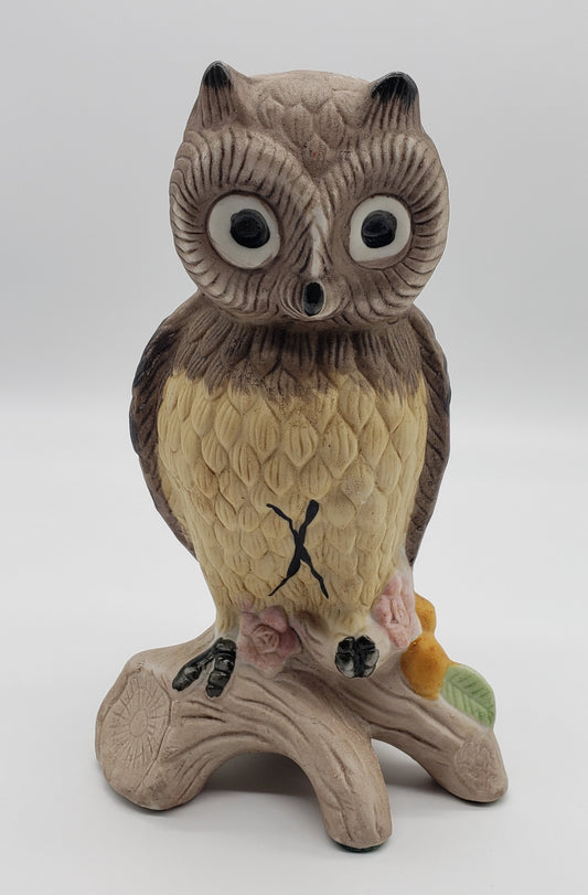 Vintage Ceramic Owl on Log Hobbyist Speckled Glaze MCM