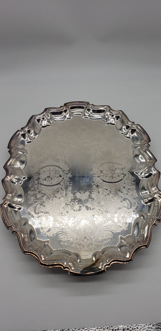 Leonard Silver Plate Footed Engraved Baroque Oval / oblong Tray