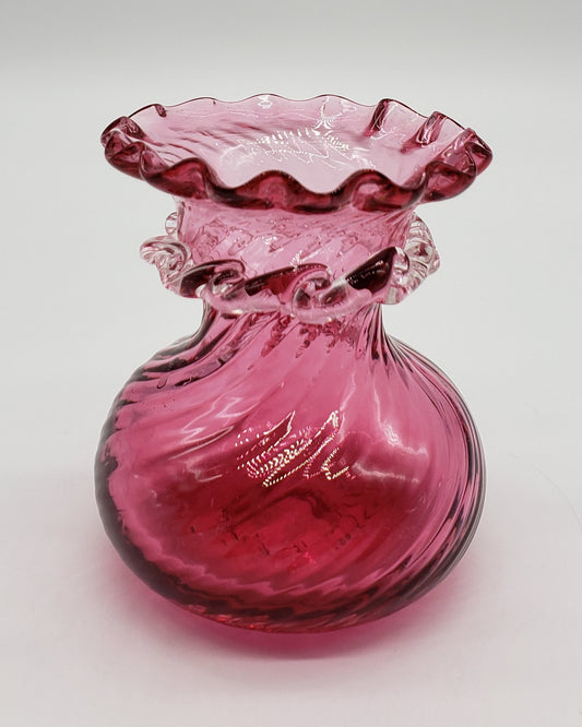 Fused Art Glass Hanging Wall Pocket Vase With Ribbon Hanger