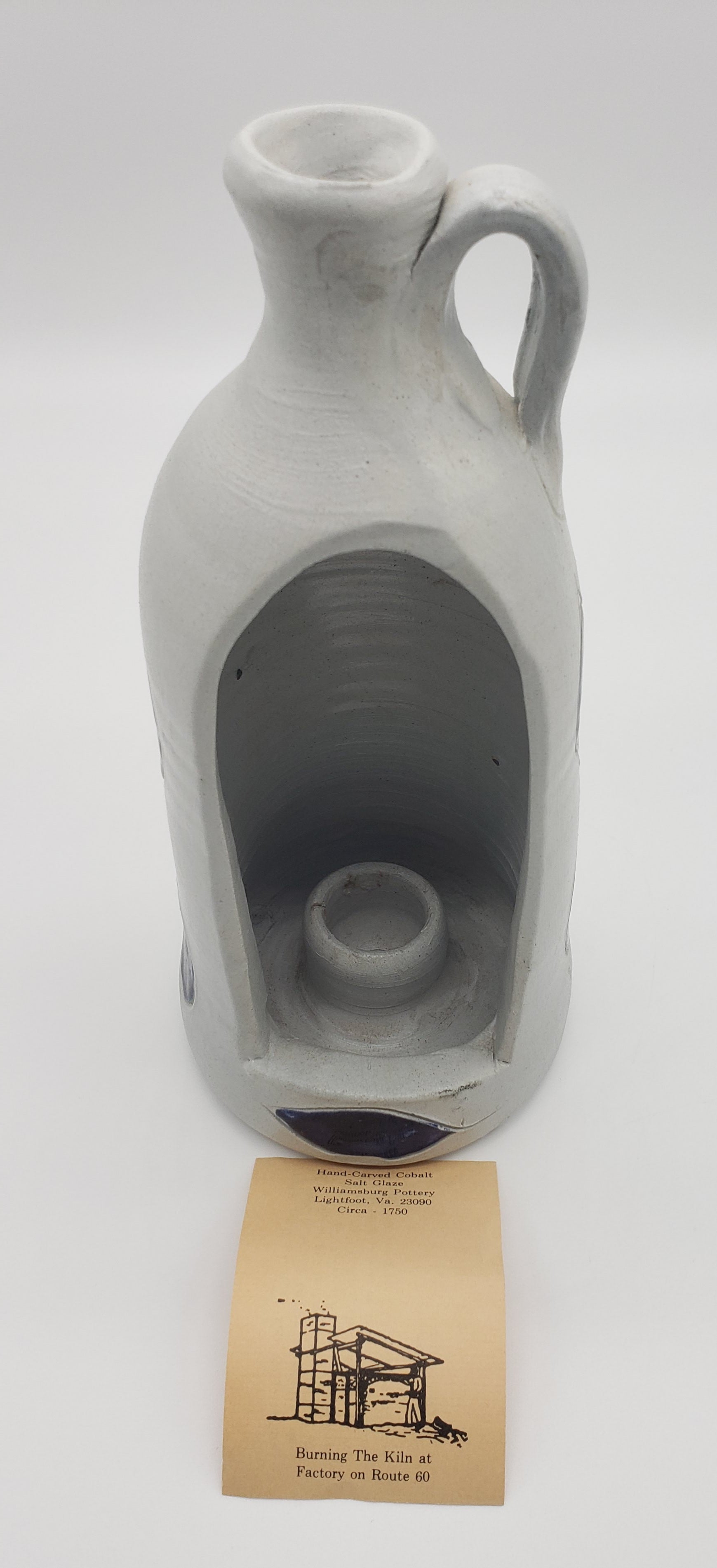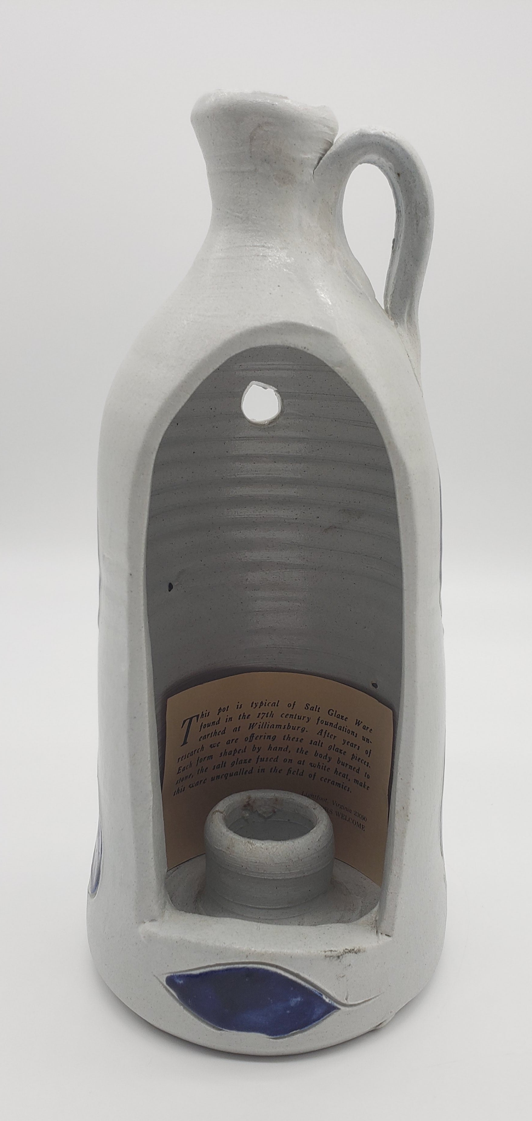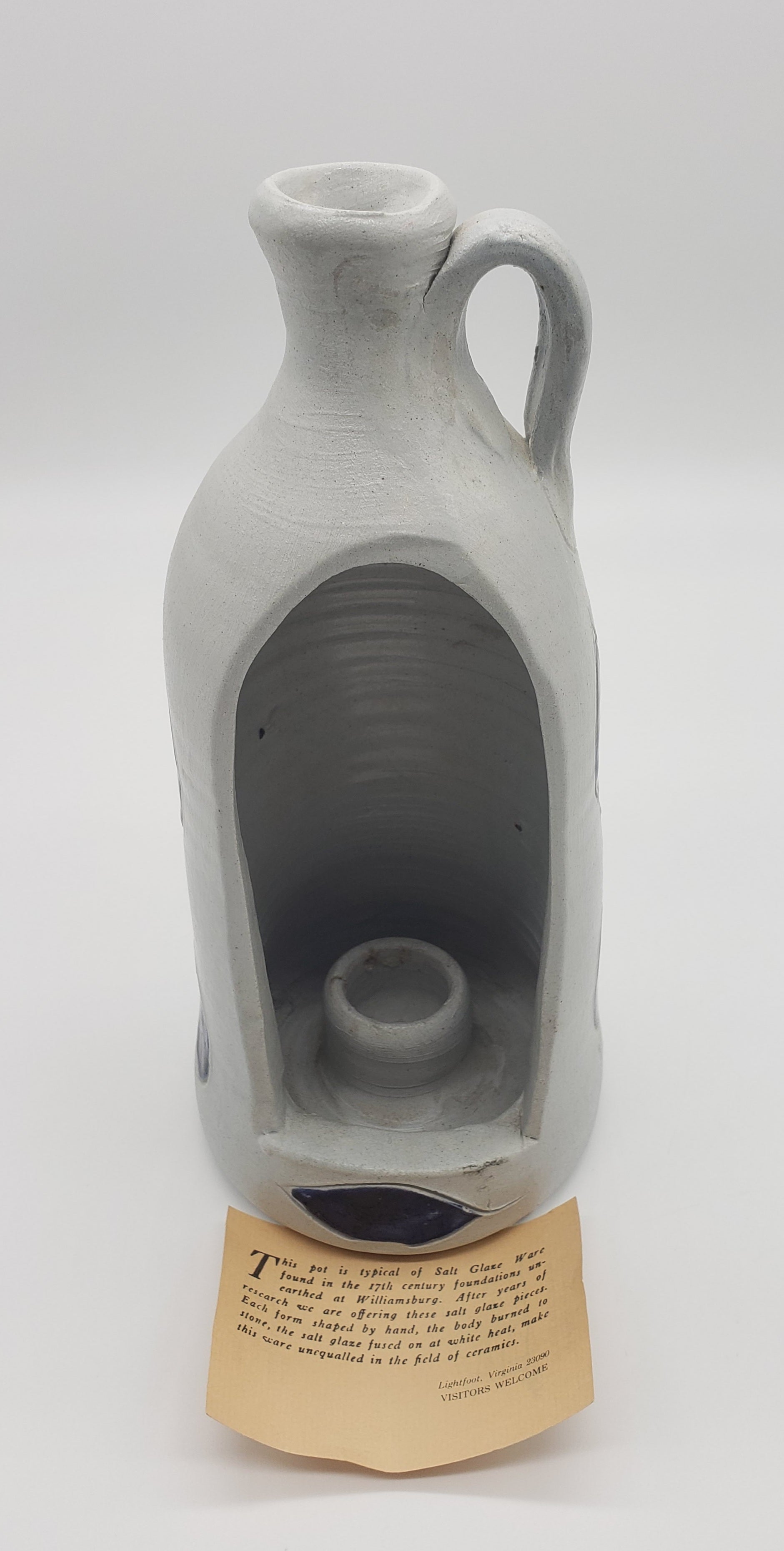 Williamsburg Pottery Grey and Blue Salt Glazed Bottle Candle Holder