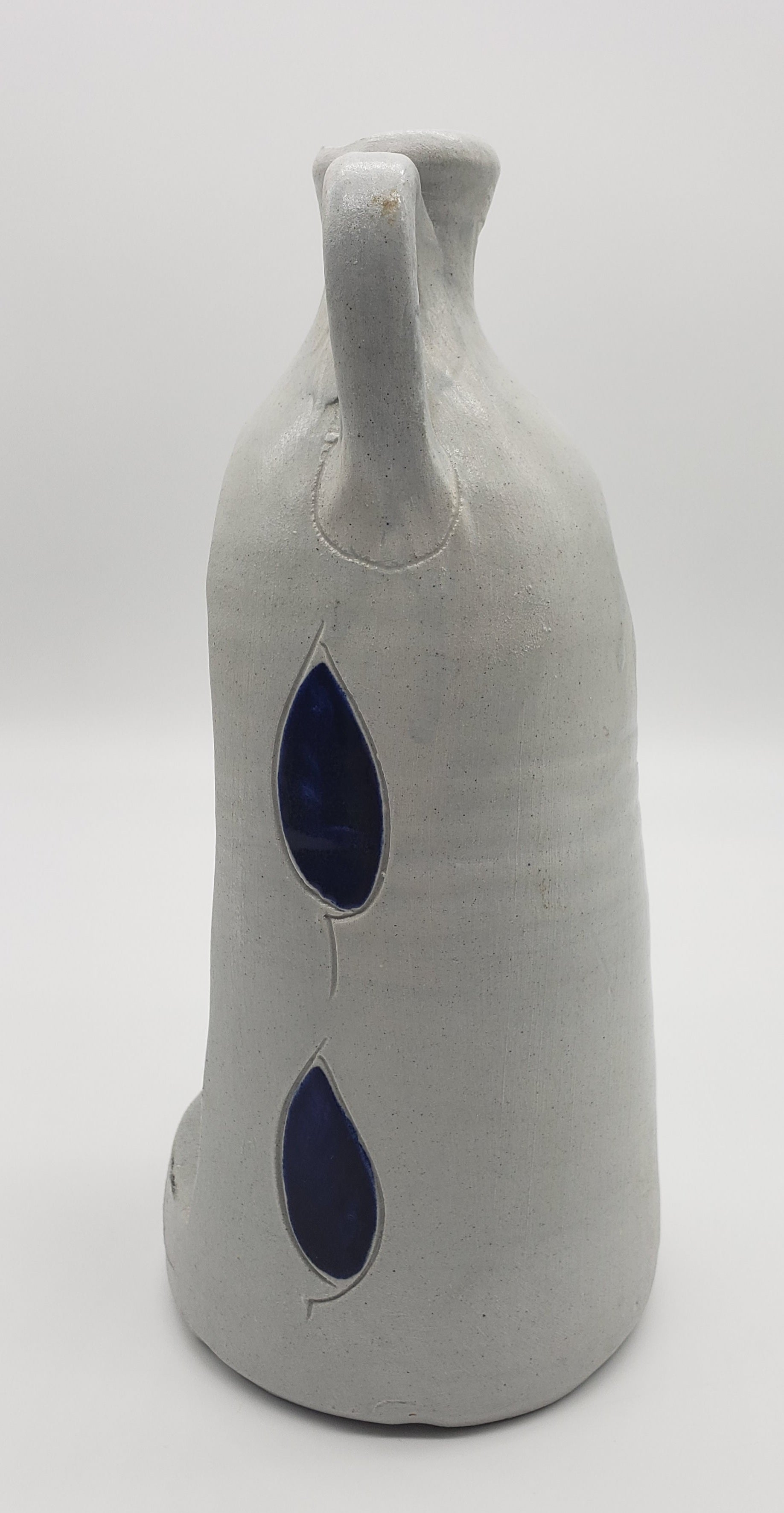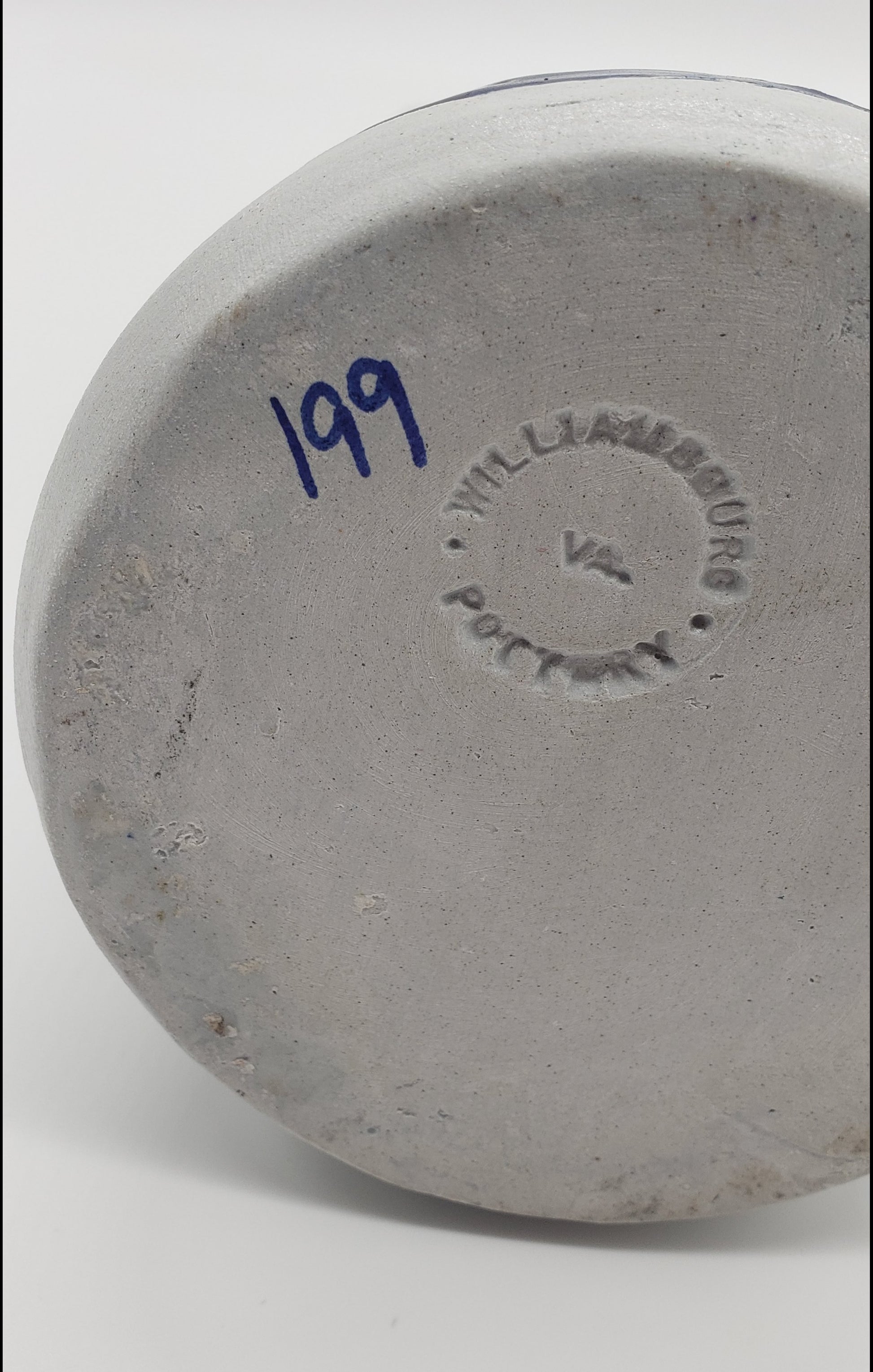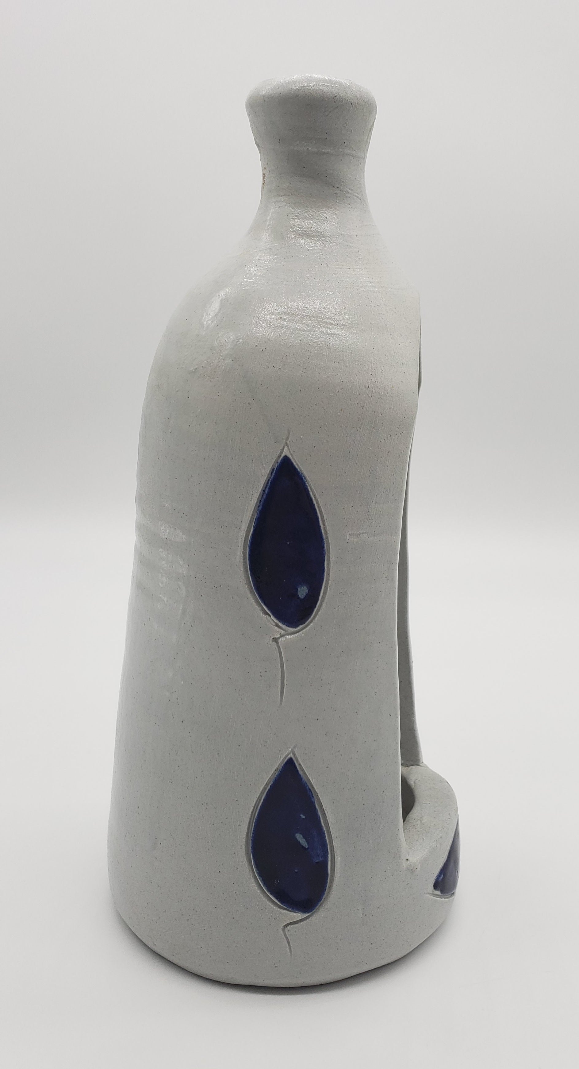 Williamsburg Pottery Grey and Blue Salt Glazed Bottle Candle Holder