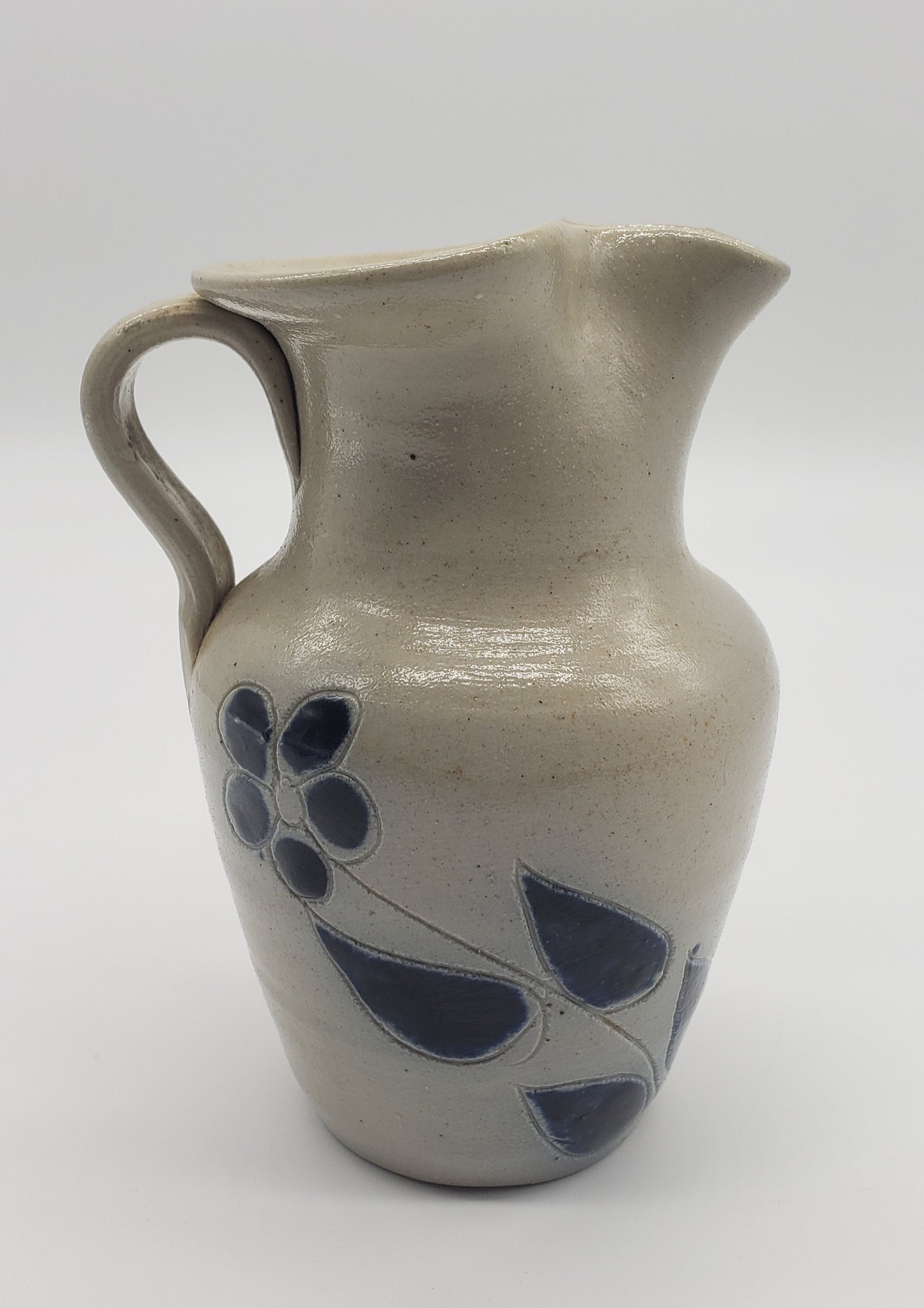 Williamsburg Pottery w/ Blue Enameled Leaves Vase / Pitcher
