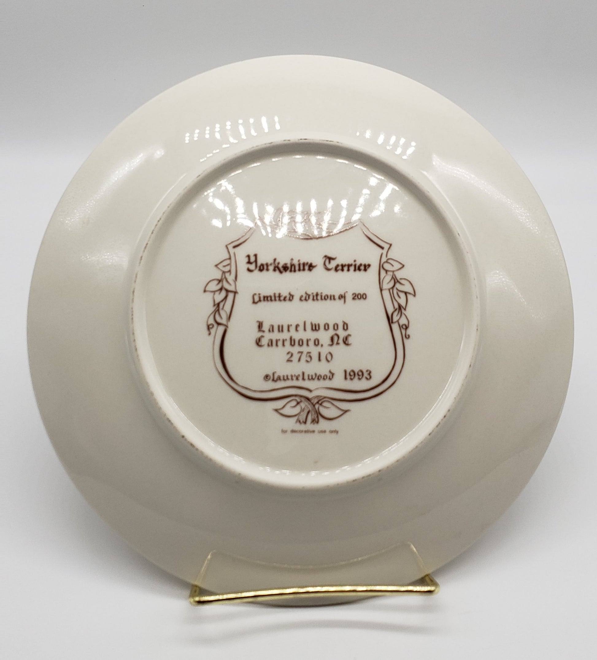 Yorkshire Terrier Yorkie Dog Collector Laurelwood Plate 1993