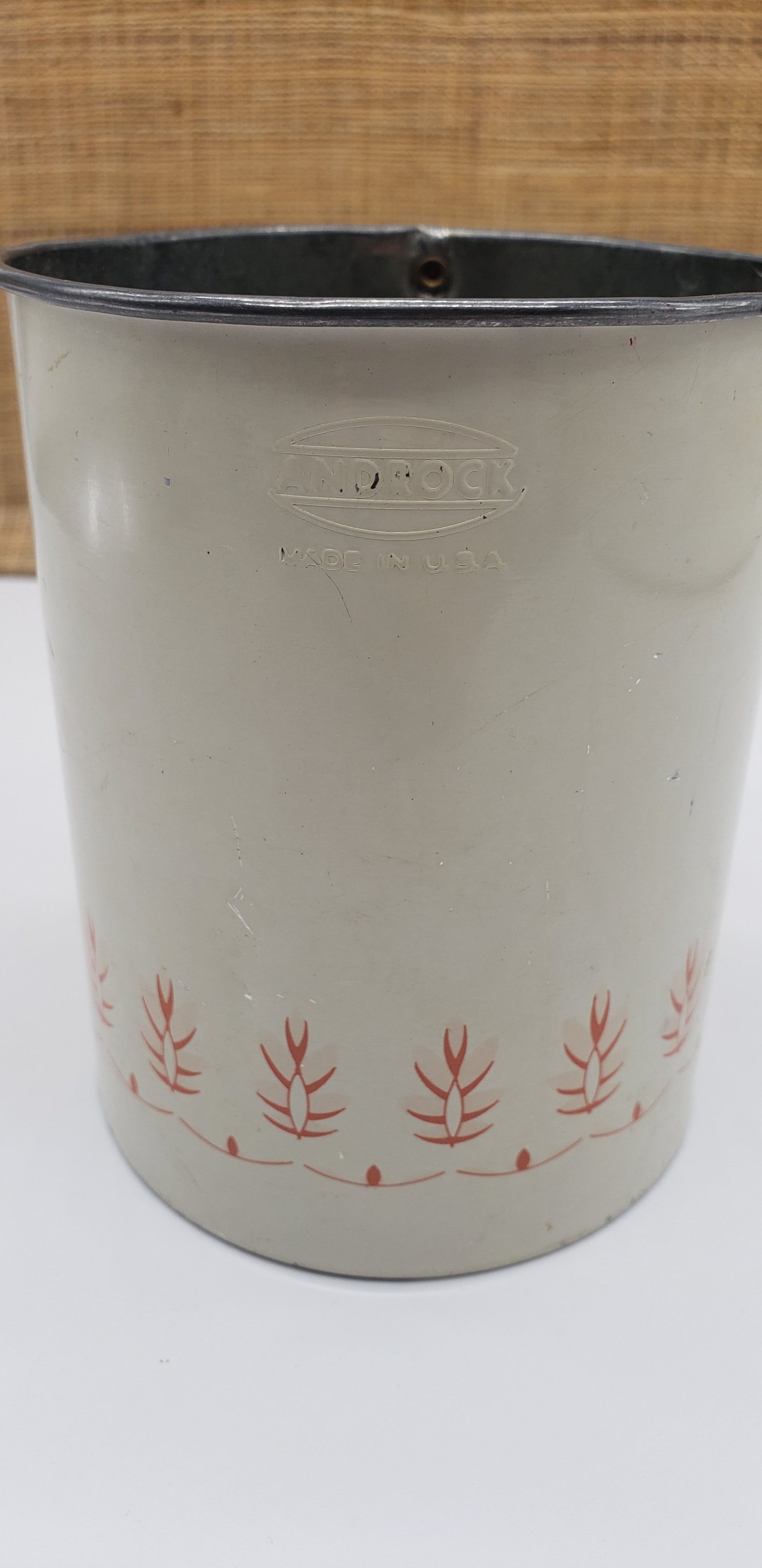 Androck Silver Metal Sifter, White Painted Metal Sifter with Orange Details