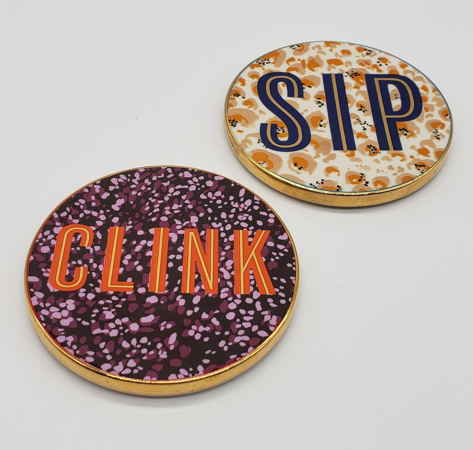 Anthropologie Ceramic Coaster Set - SIP & CLINK (2 coasters)
