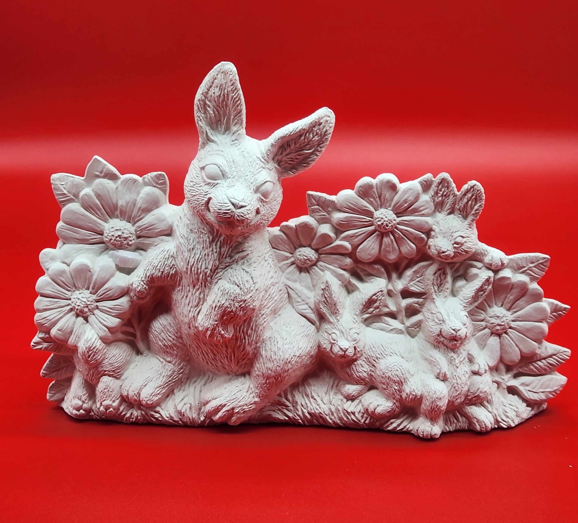 Bisque Rabbit with Flower Scene - Unpainted
