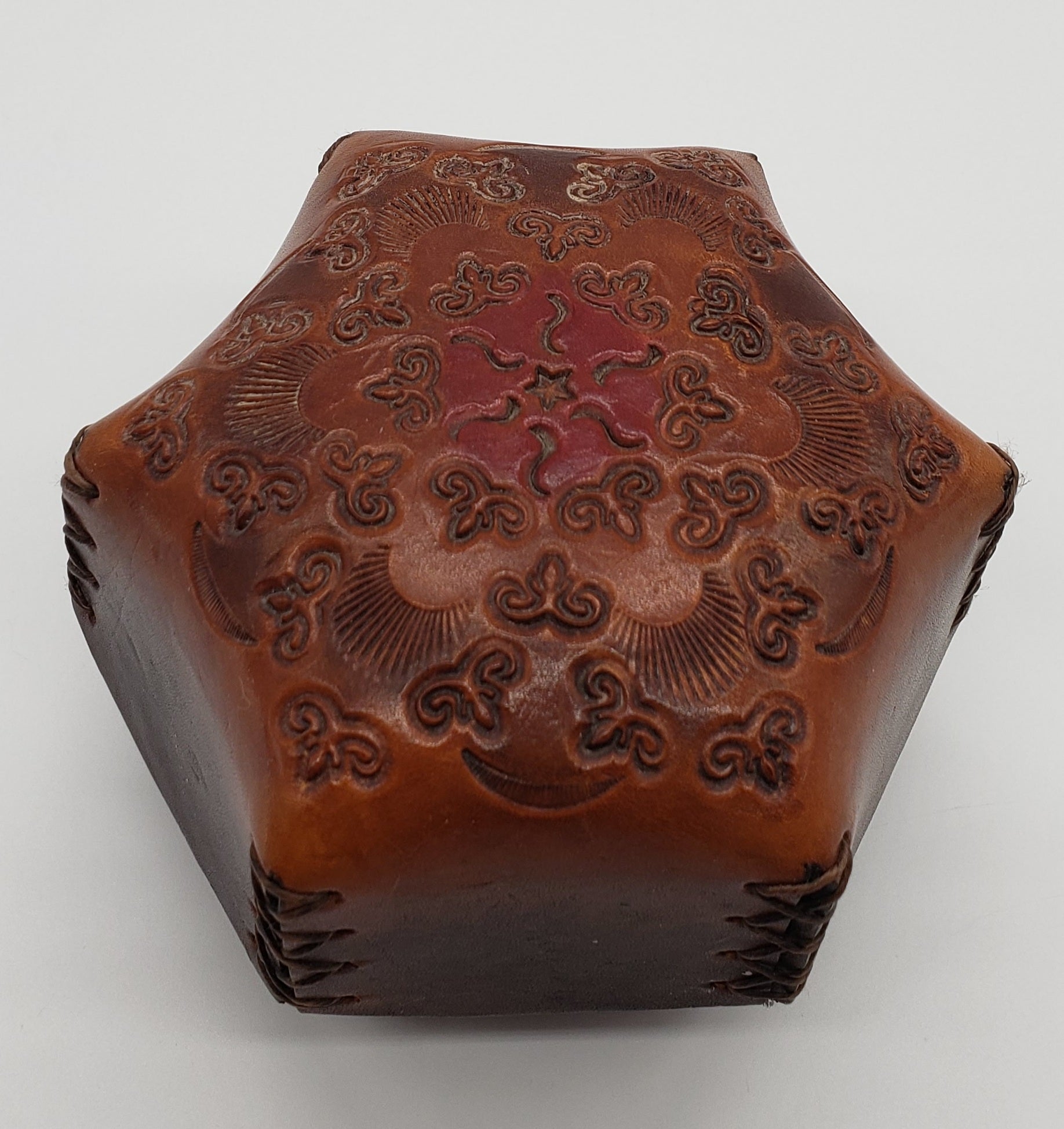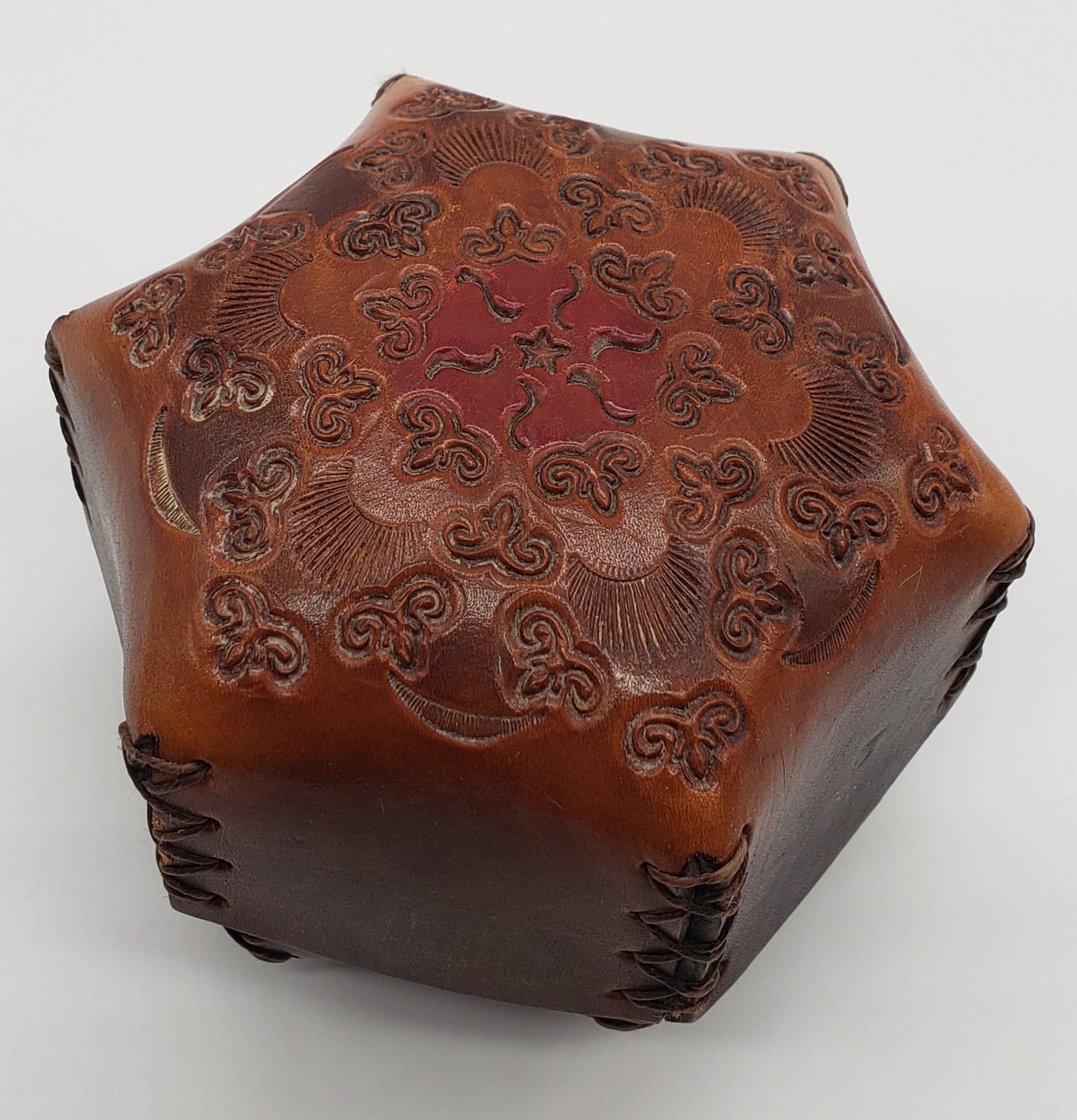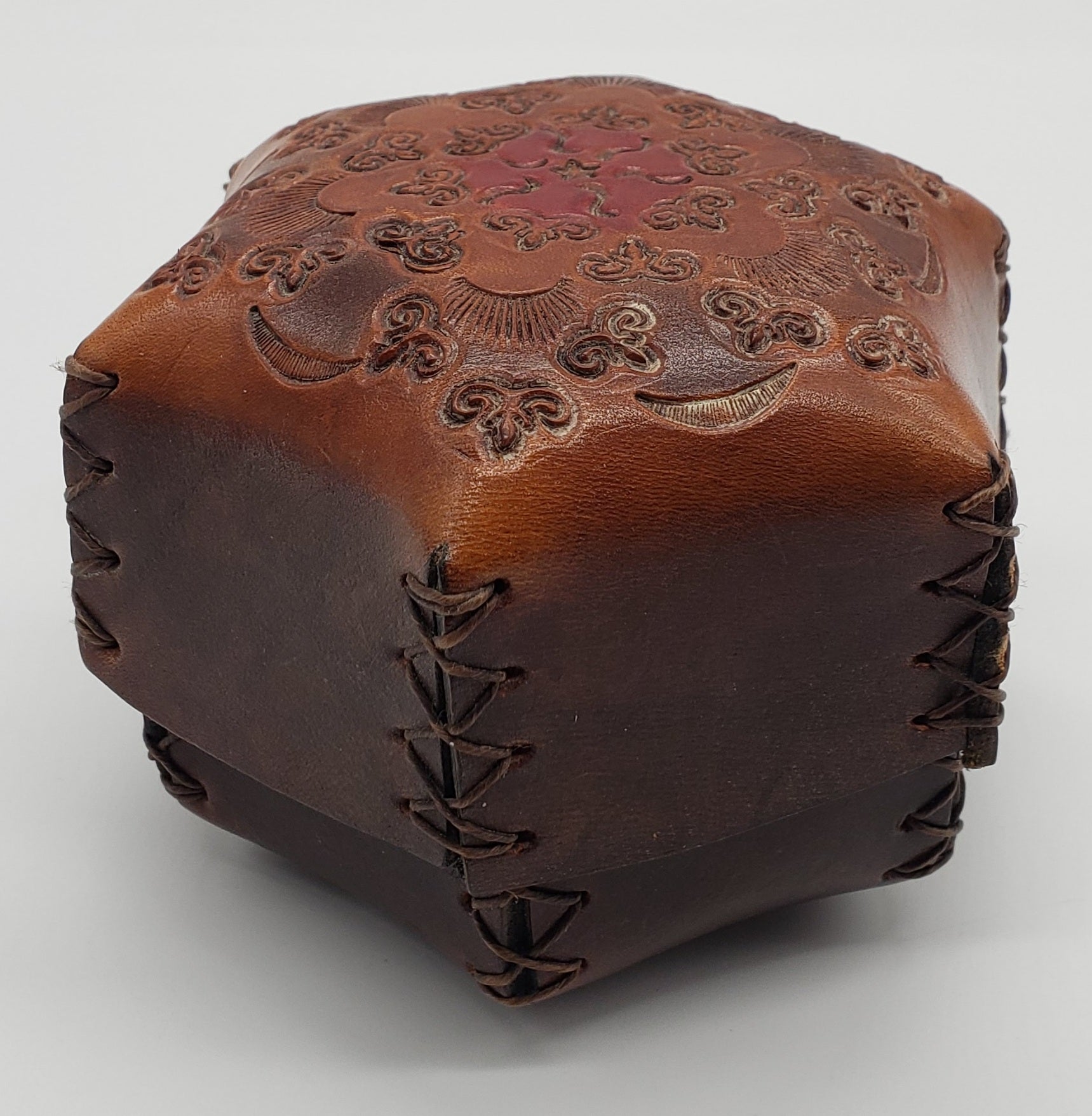 Handmade Tooled Leather Hexagon Lidded Trinket Box