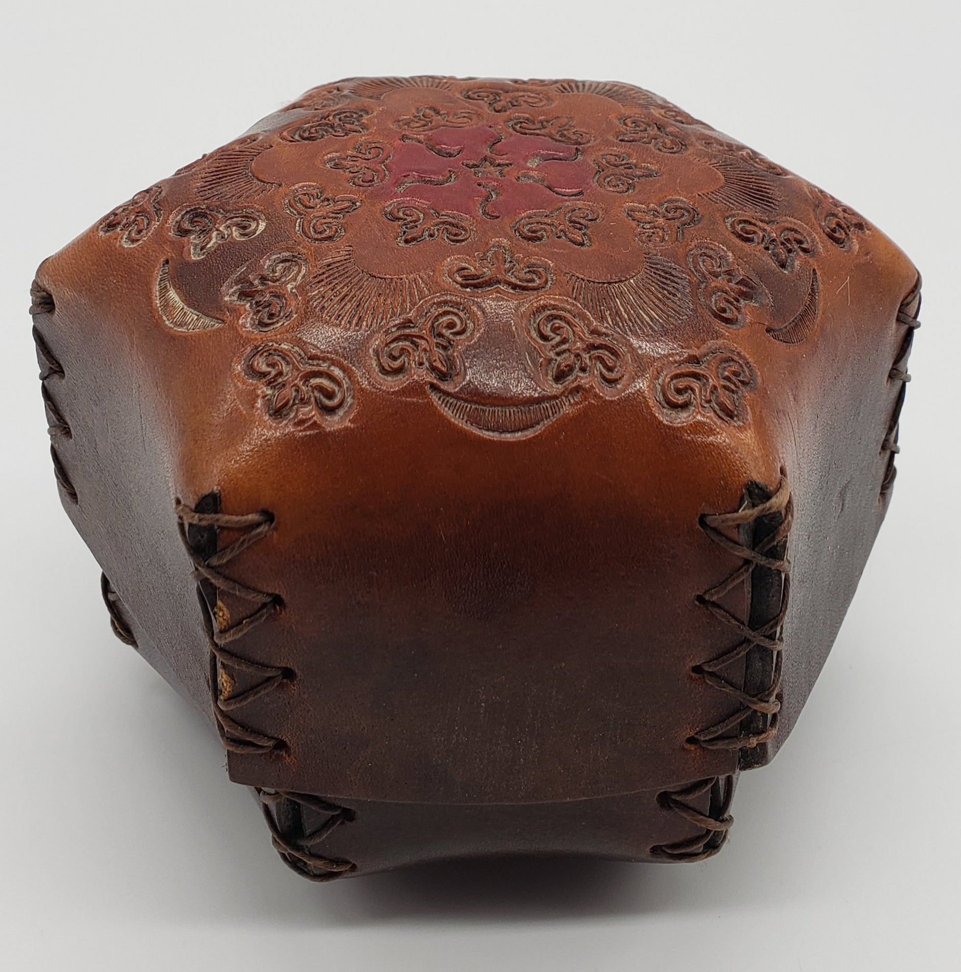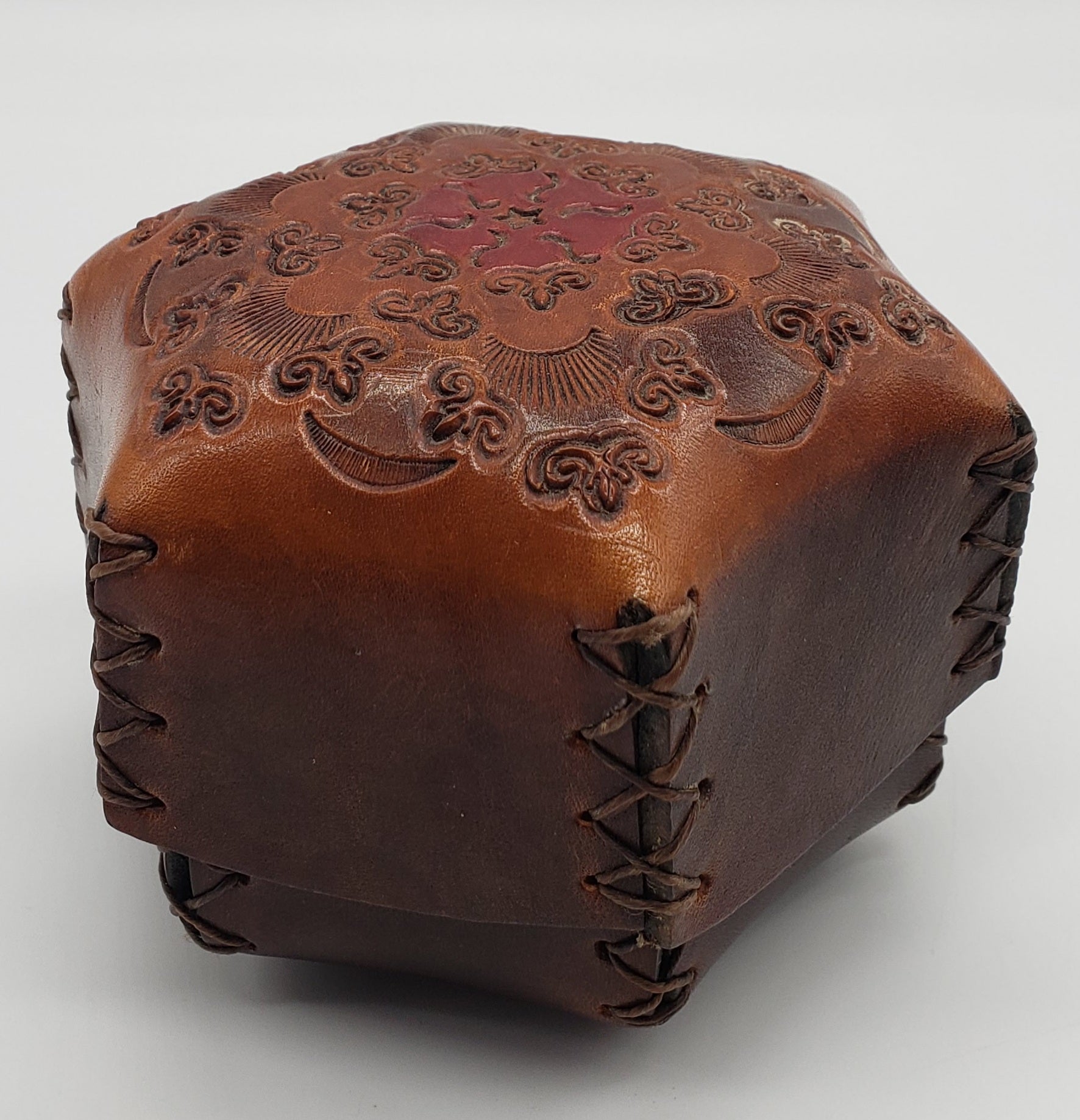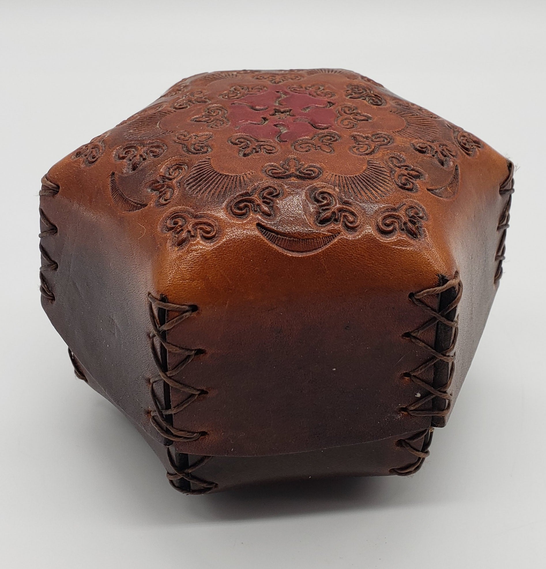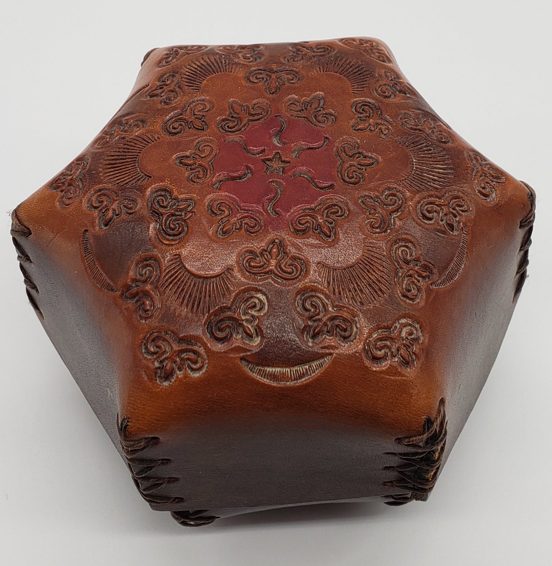Handmade Tooled Leather Hexagon Lidded Trinket Box
