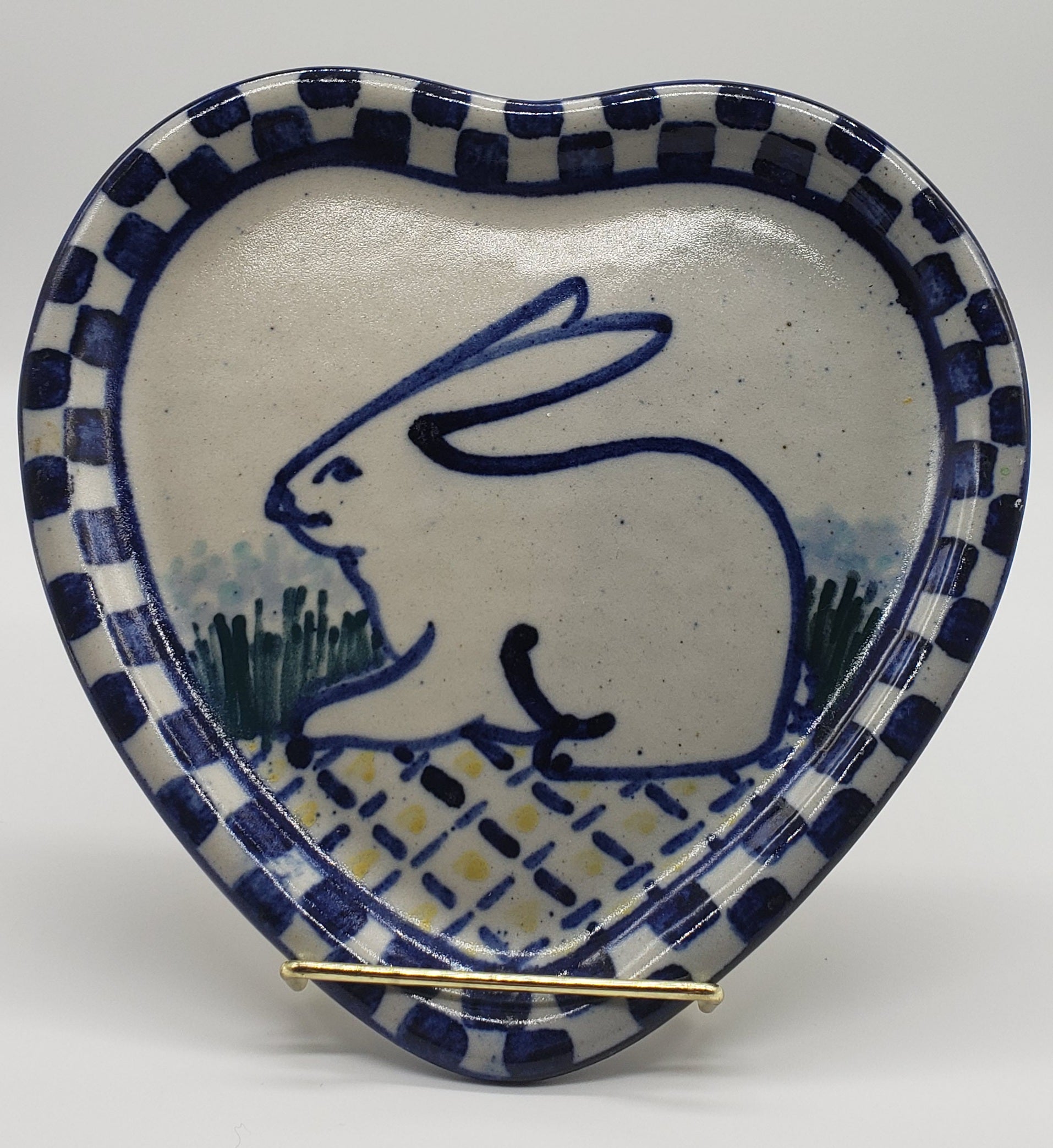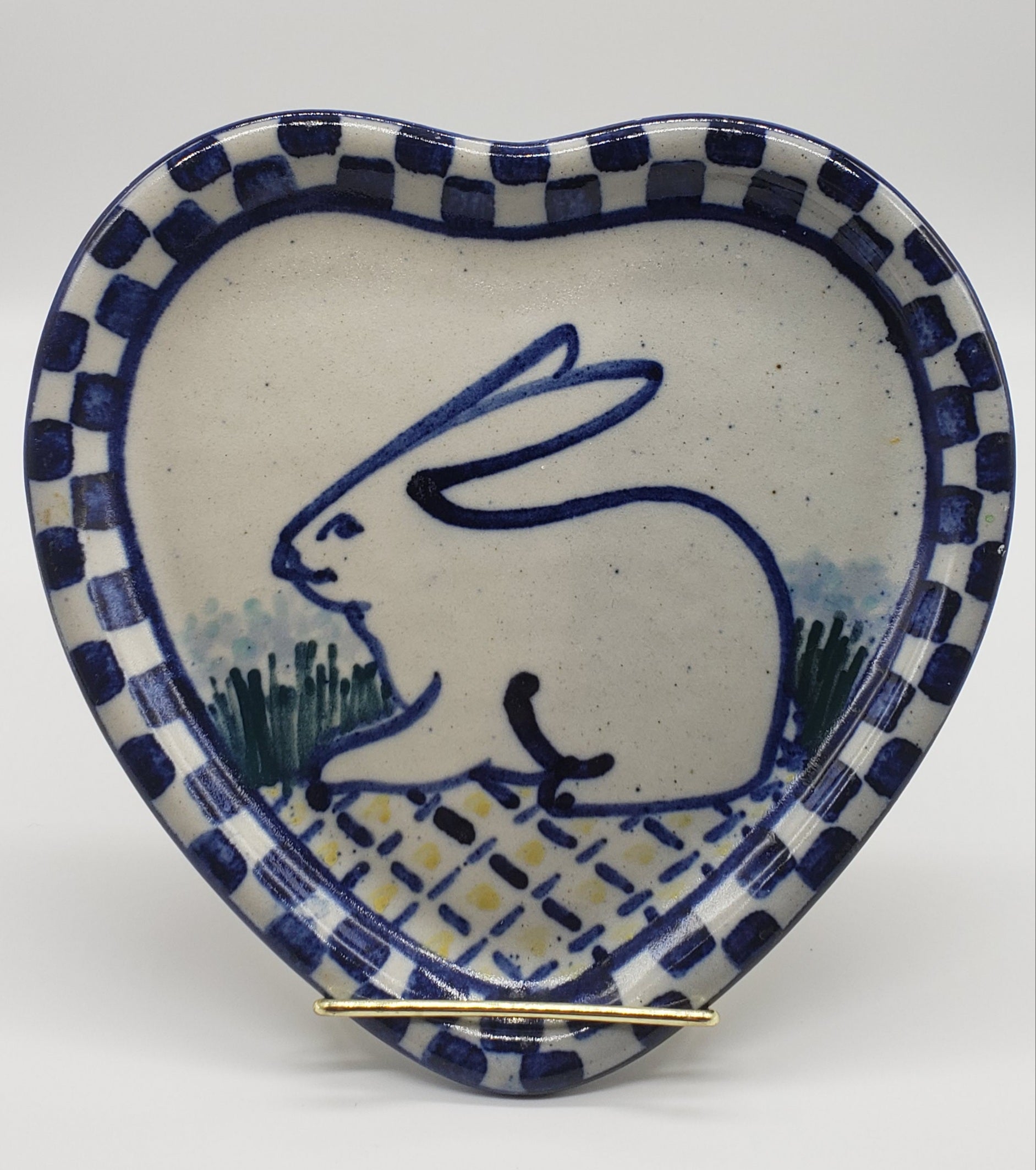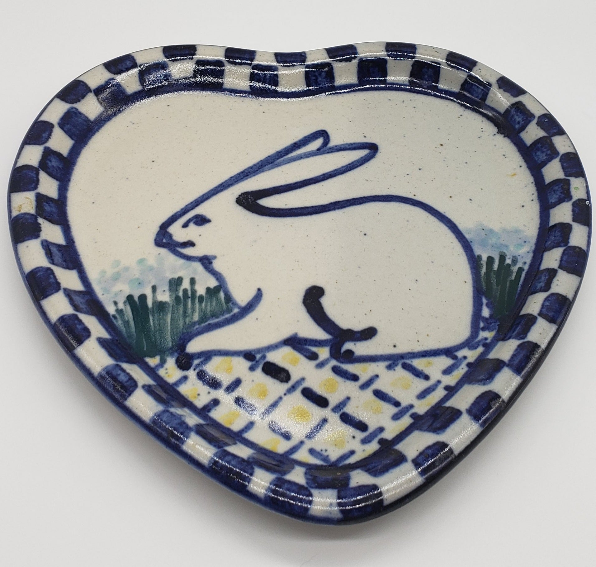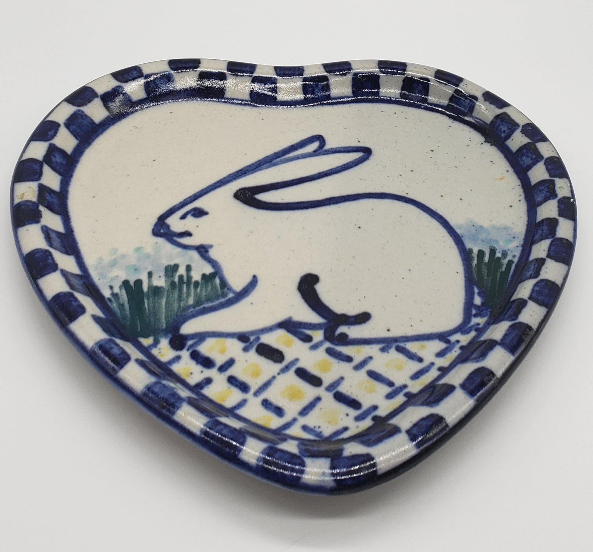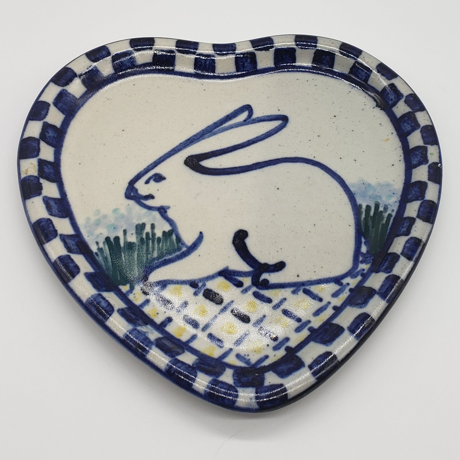 Heart Shaped Plate with Rabbit (salt glaze look)
