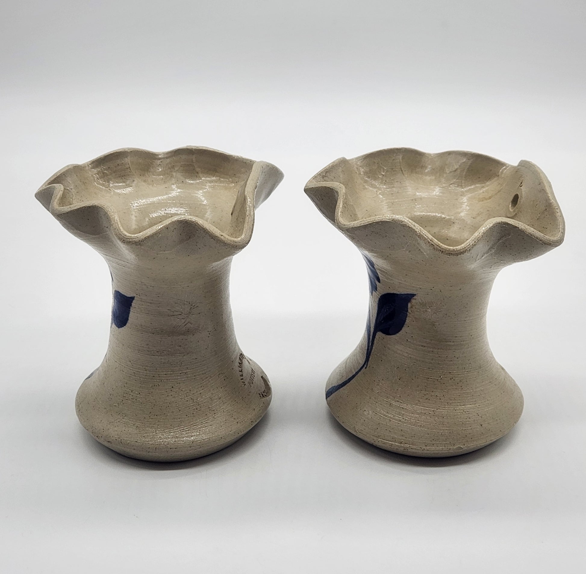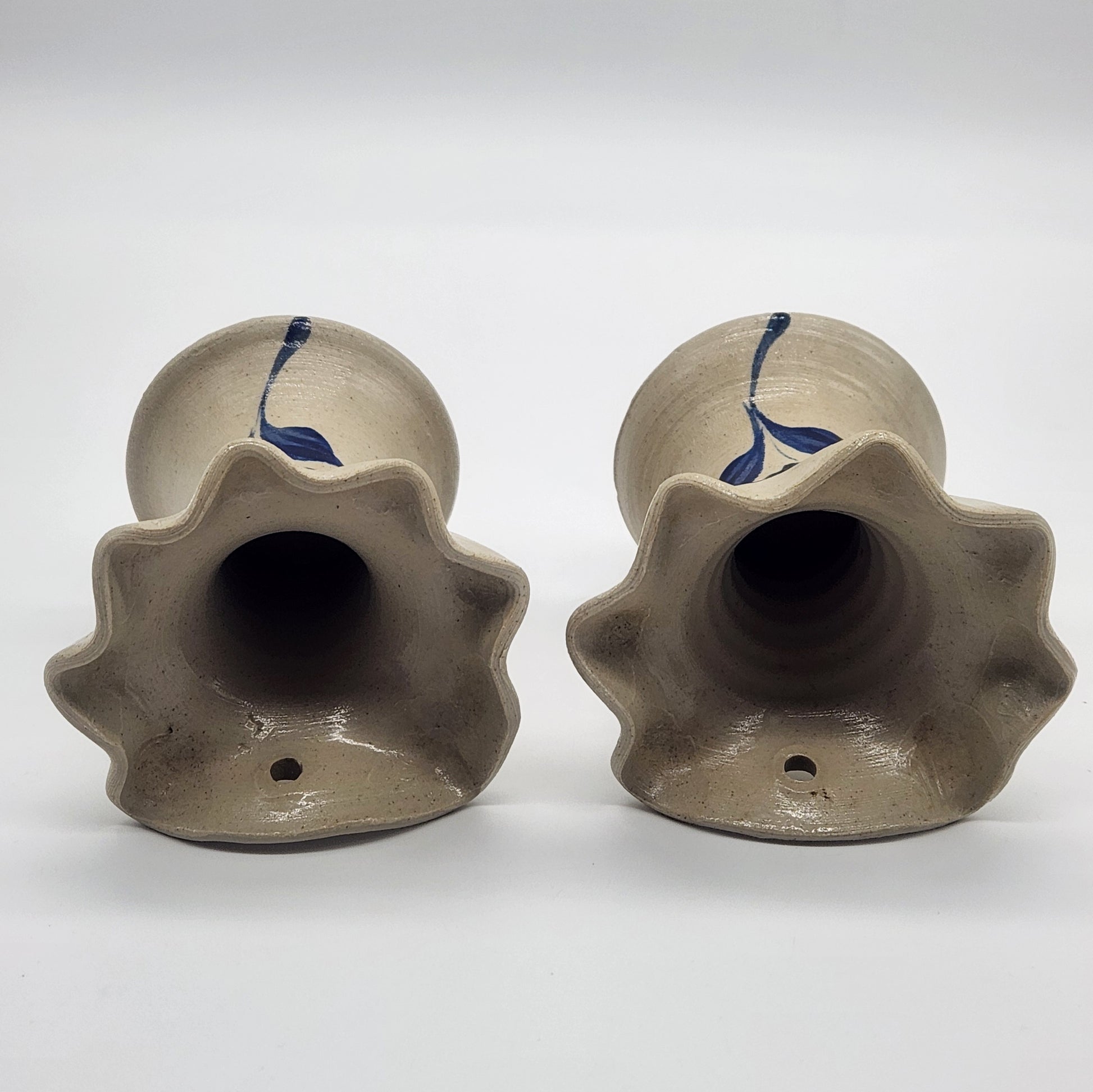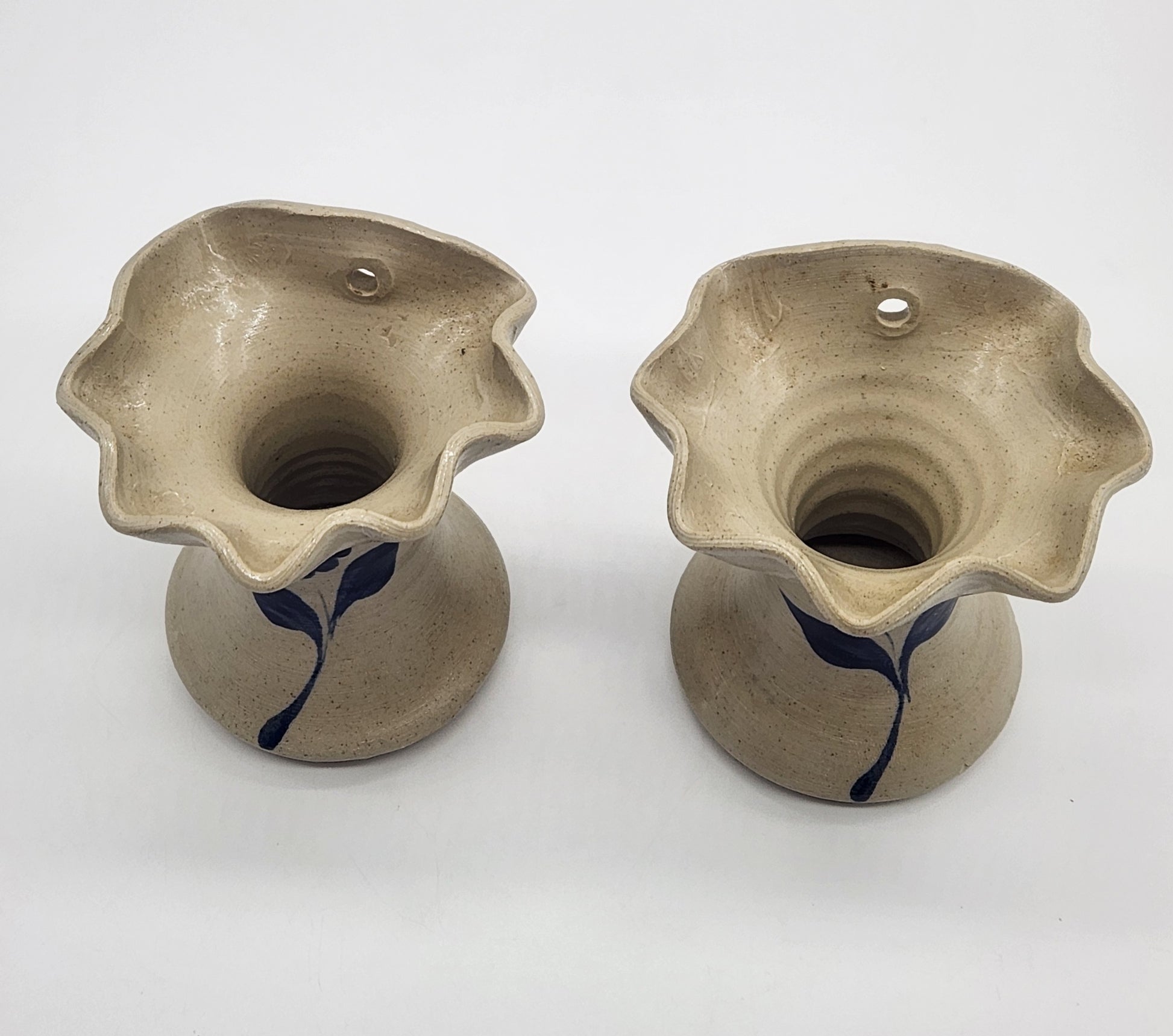 Williamsburg Pottery Pair of Wall Pocket Vases Blue Floral Design