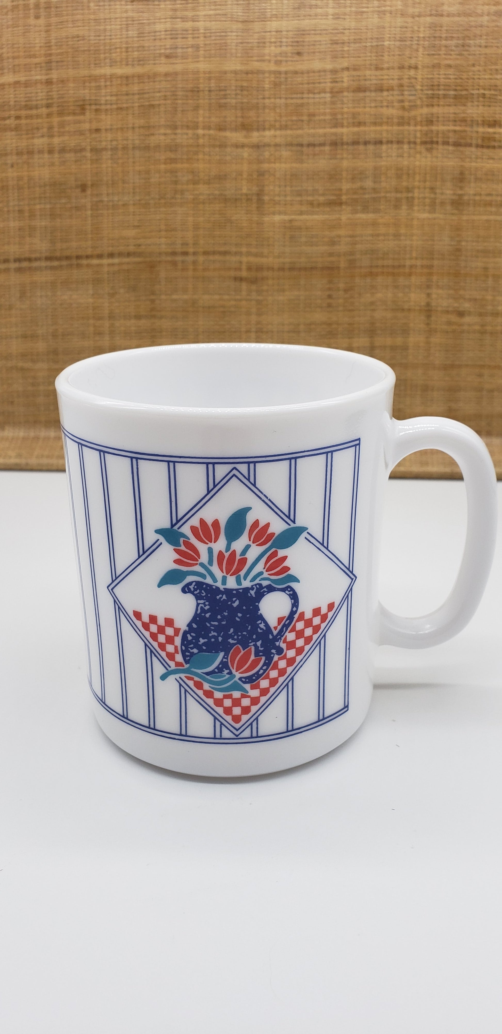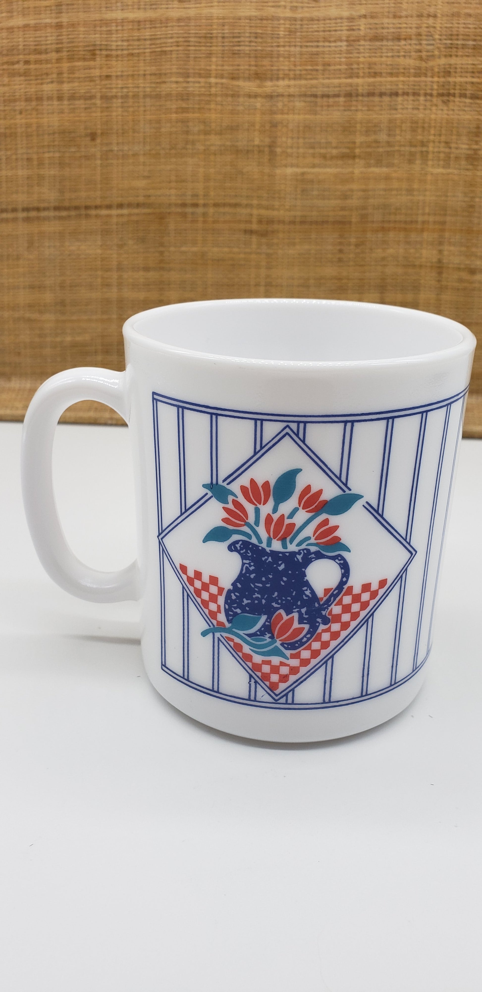 Vintage Arcopal France Coffee mug. Red tulips in pitcher design.