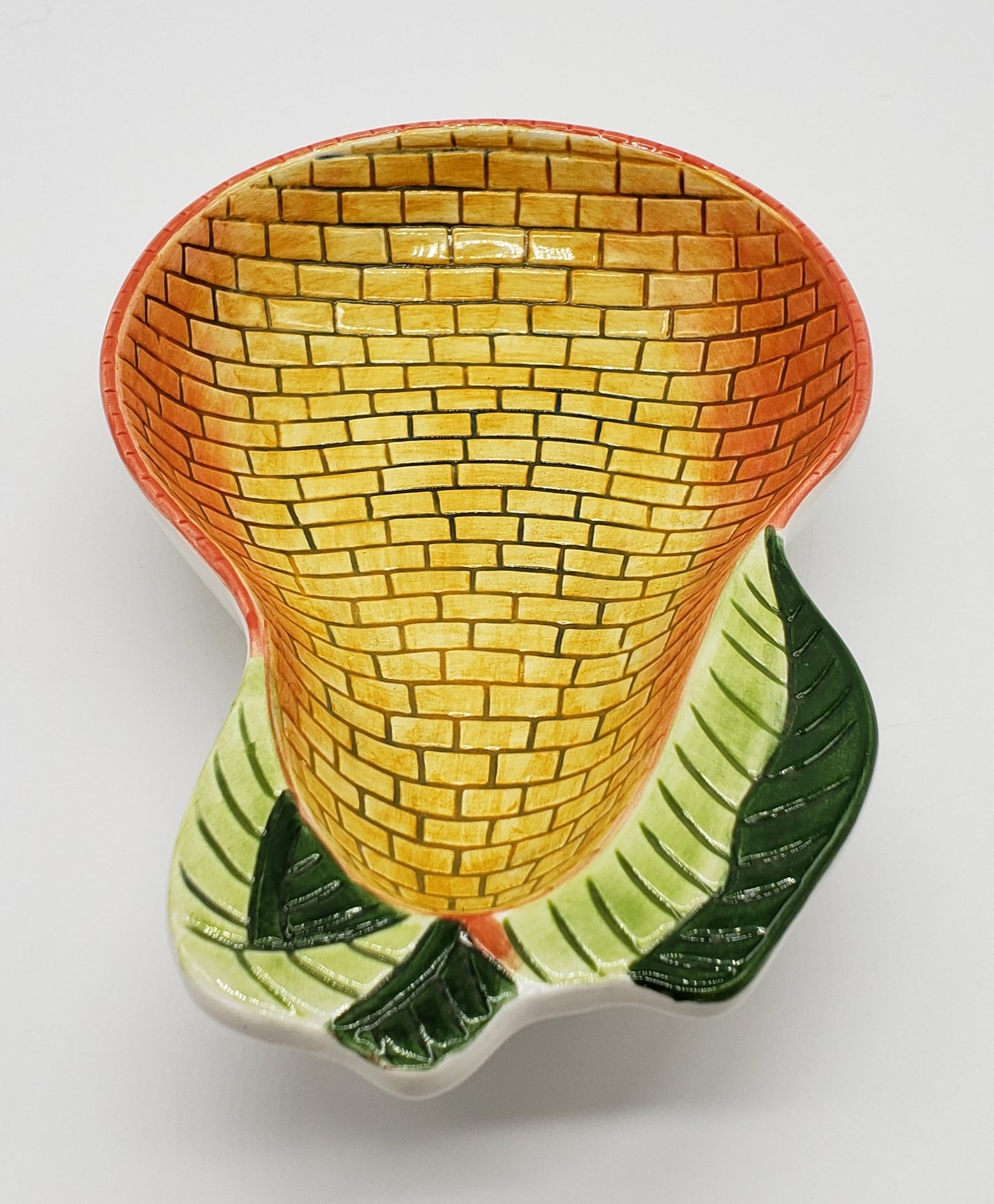 Vintage Clay Art Yellow Brick Pear Serving Dish Bowl Trinket Dish C.A..