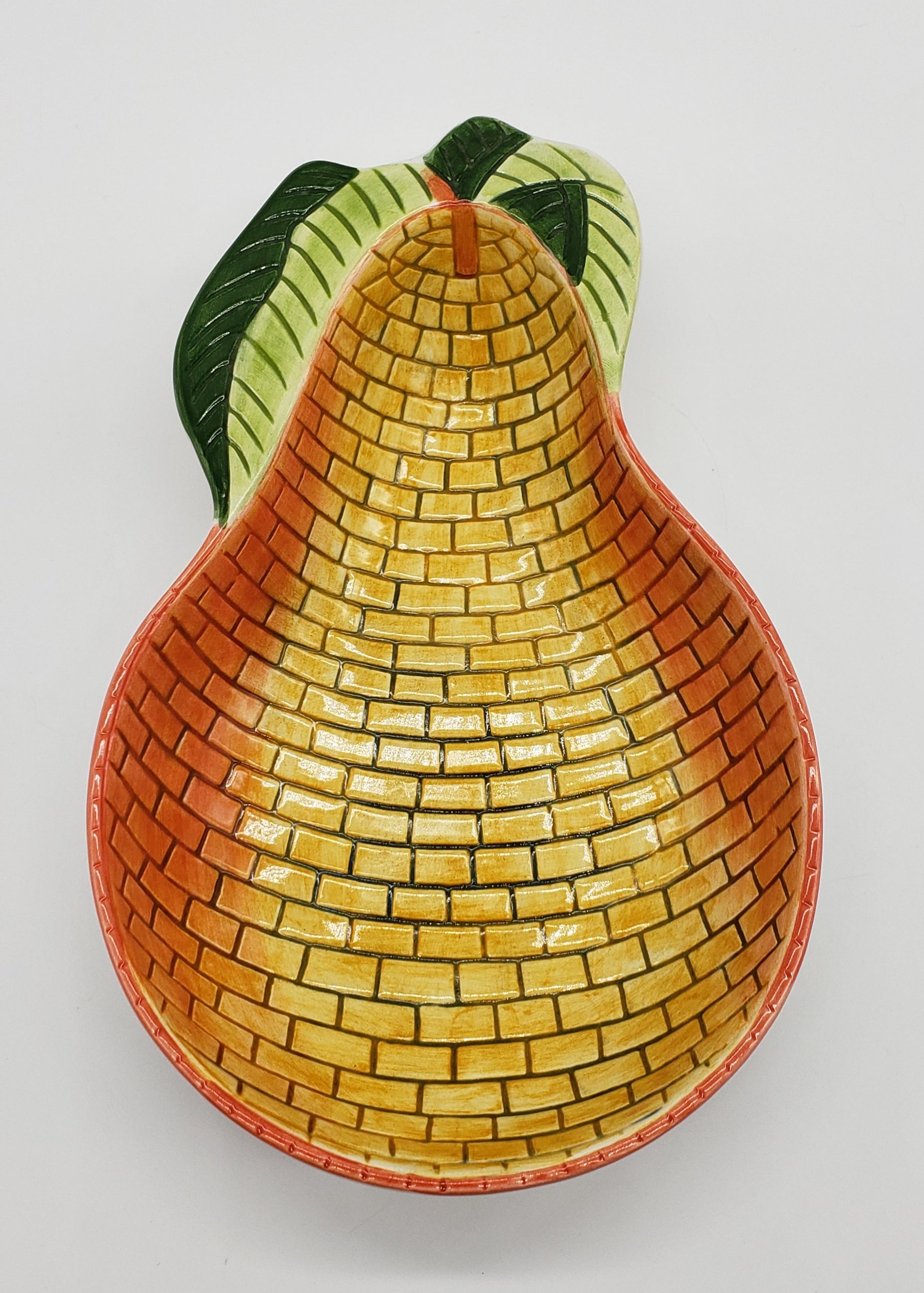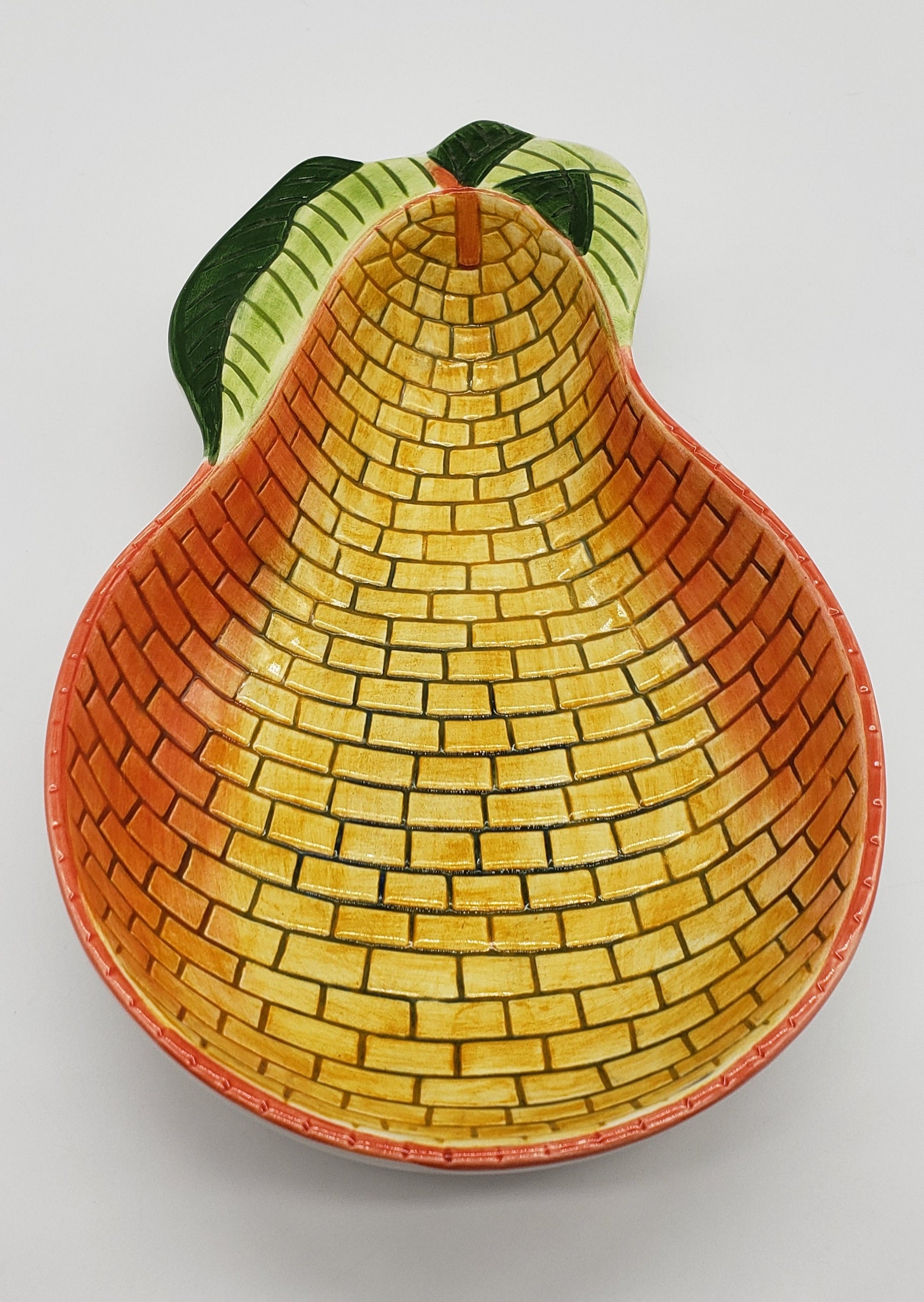Clay Art Yellow Brick Pear Serving Dish Bowl