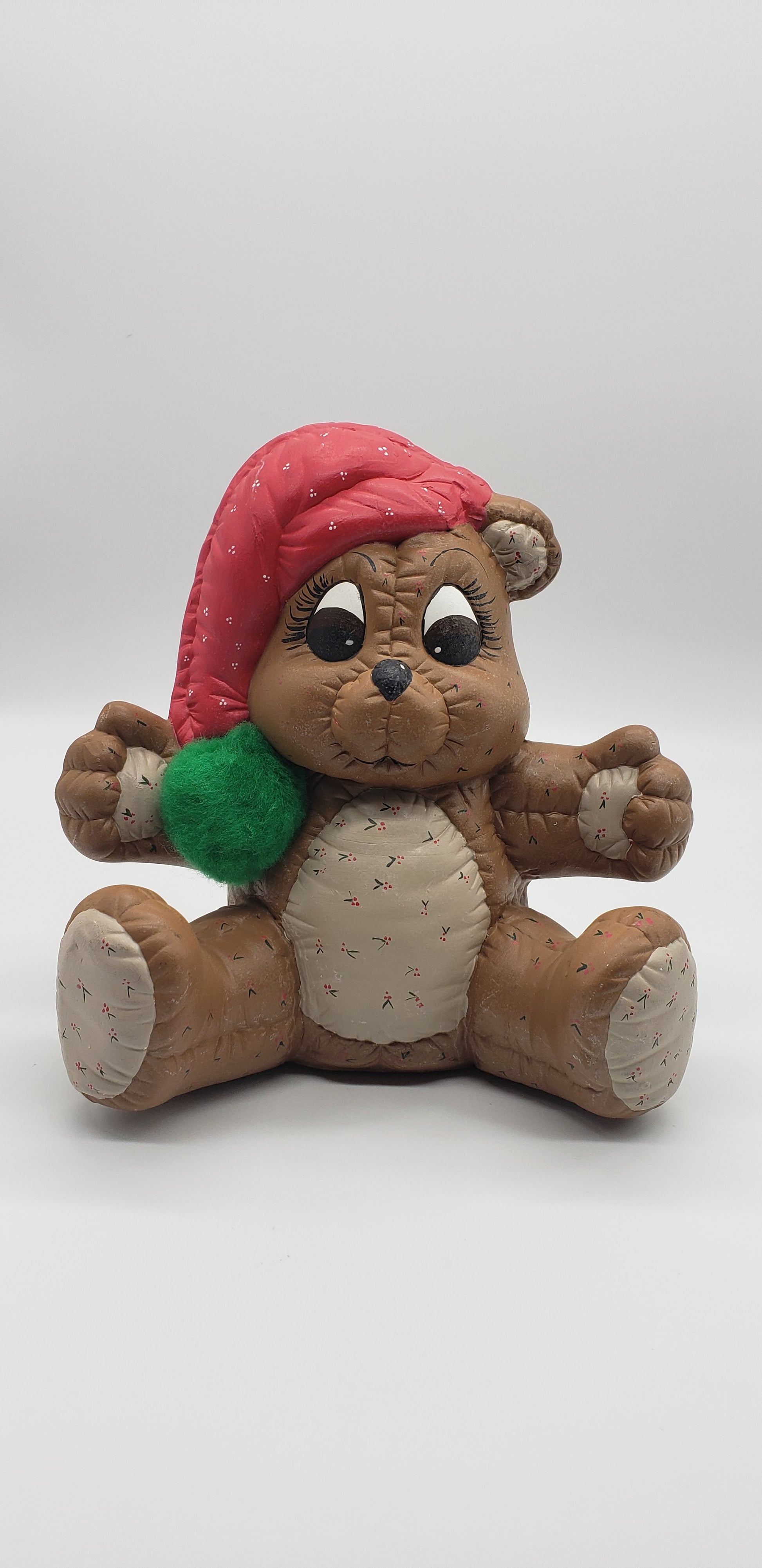 Vintage Ceramic Christmas Teddy Bear. 8 x 9