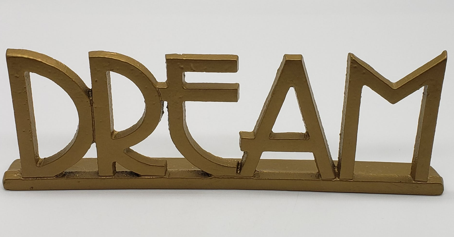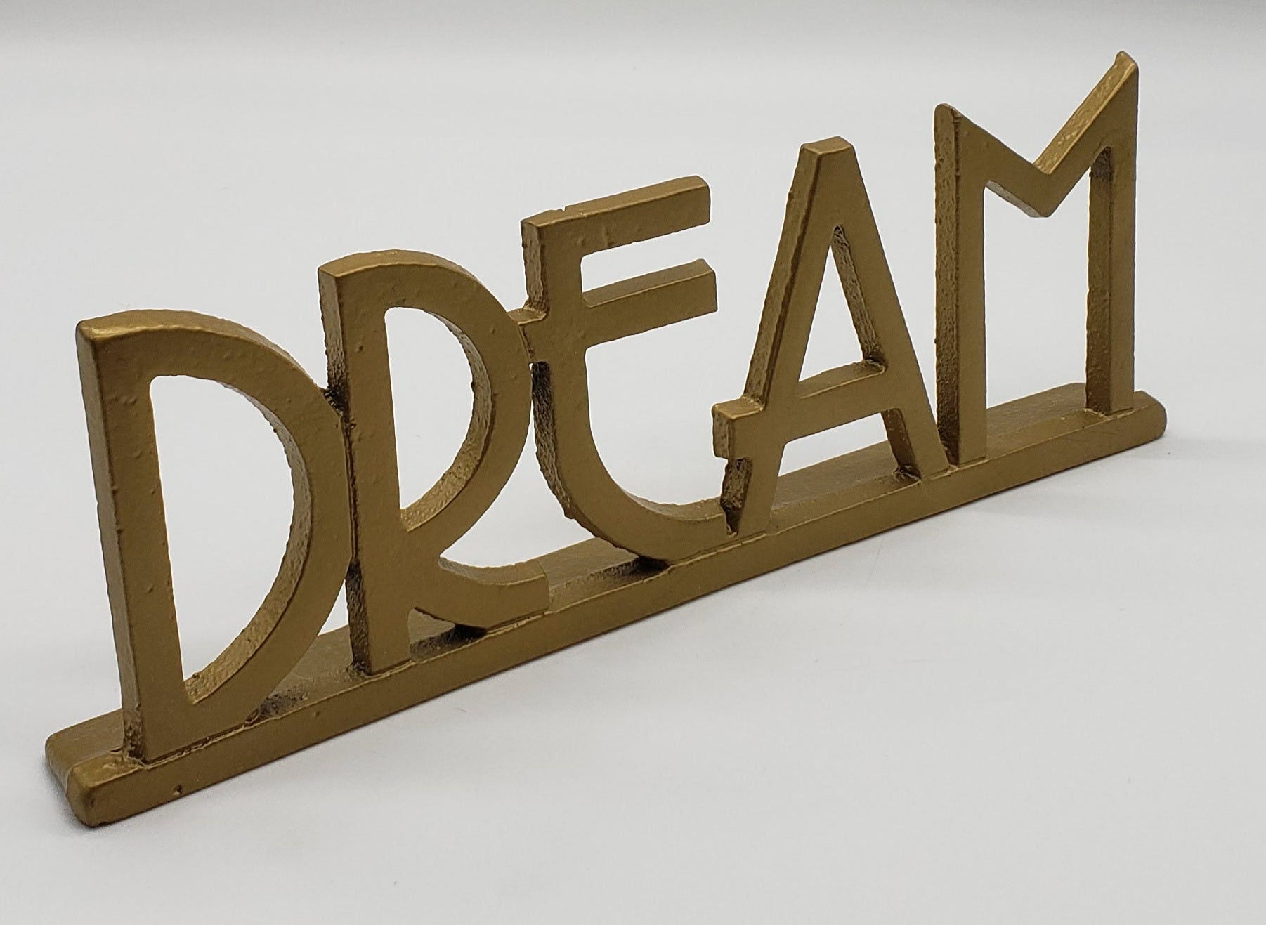 Metal Art Sign DREAM 3-D Home Decor Rustic Antique Gold Finish