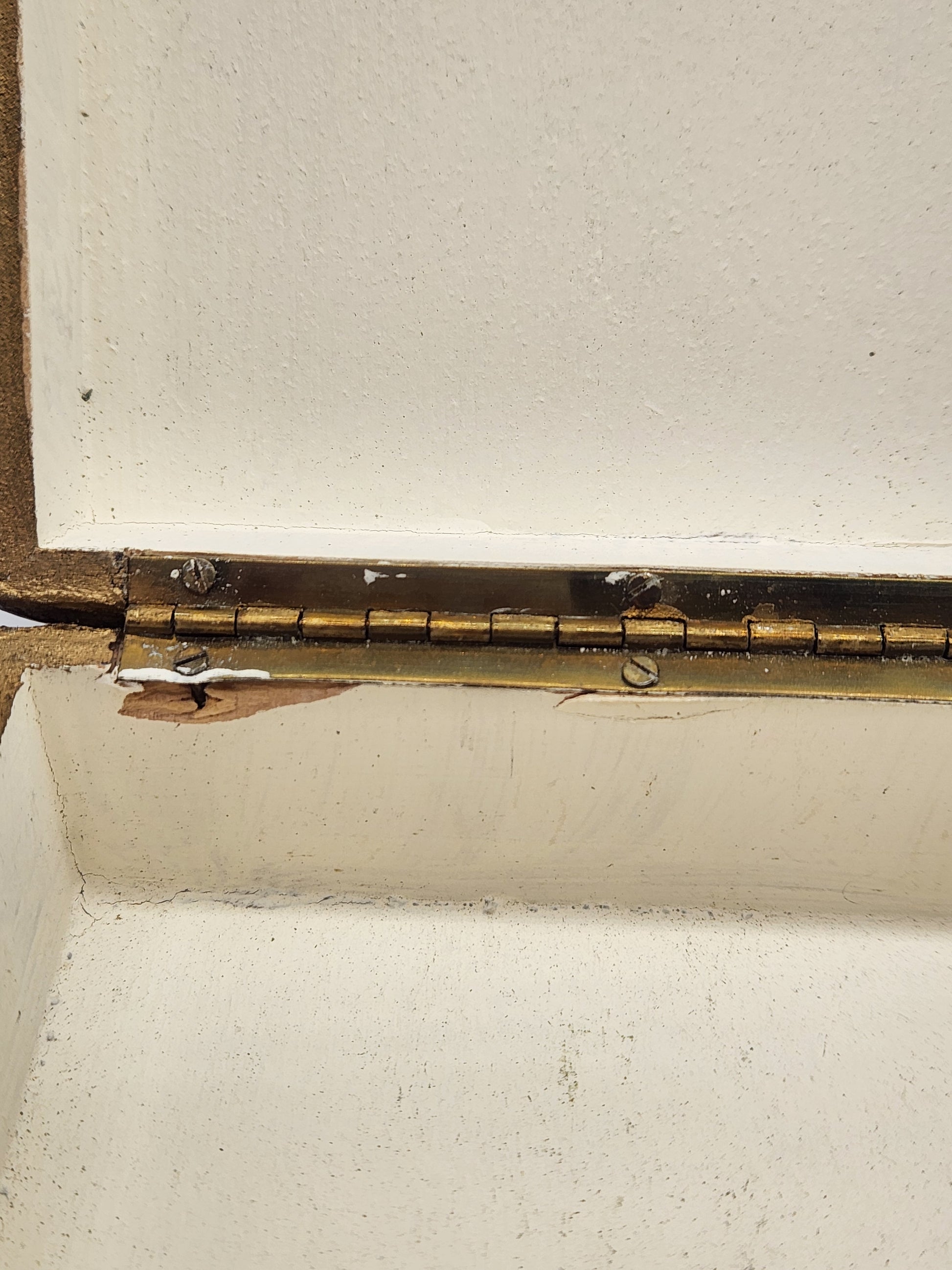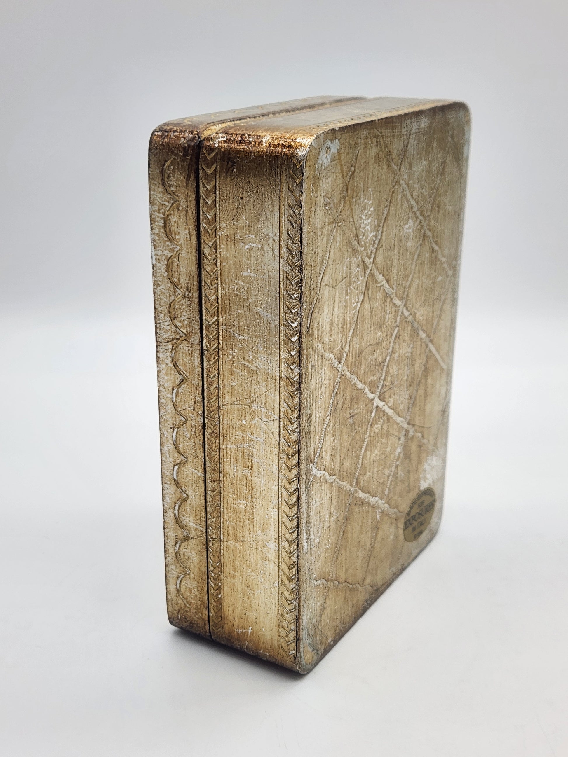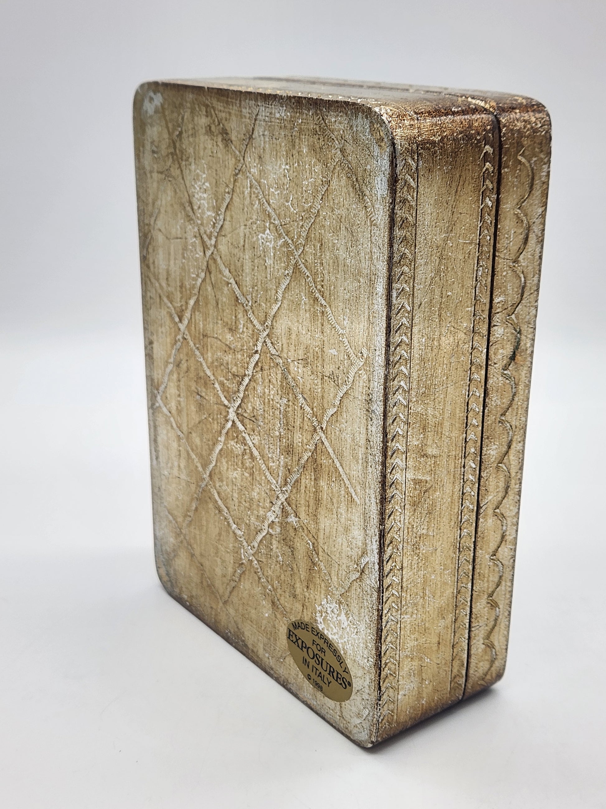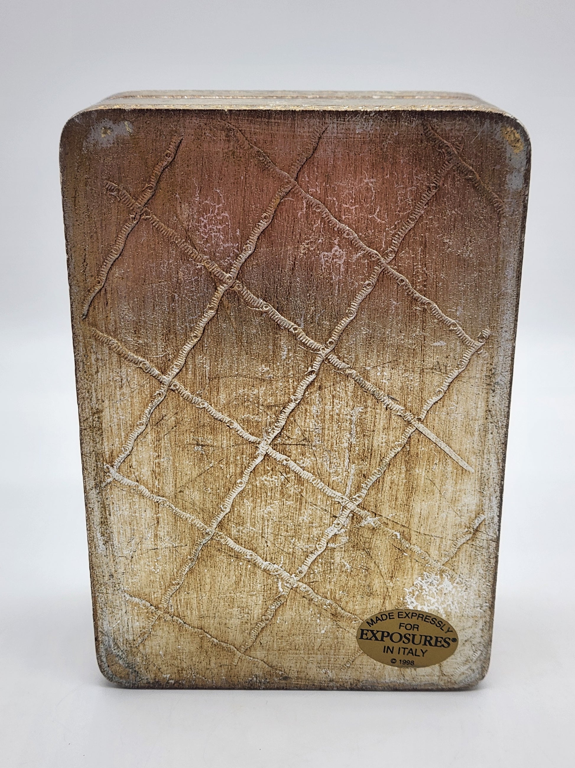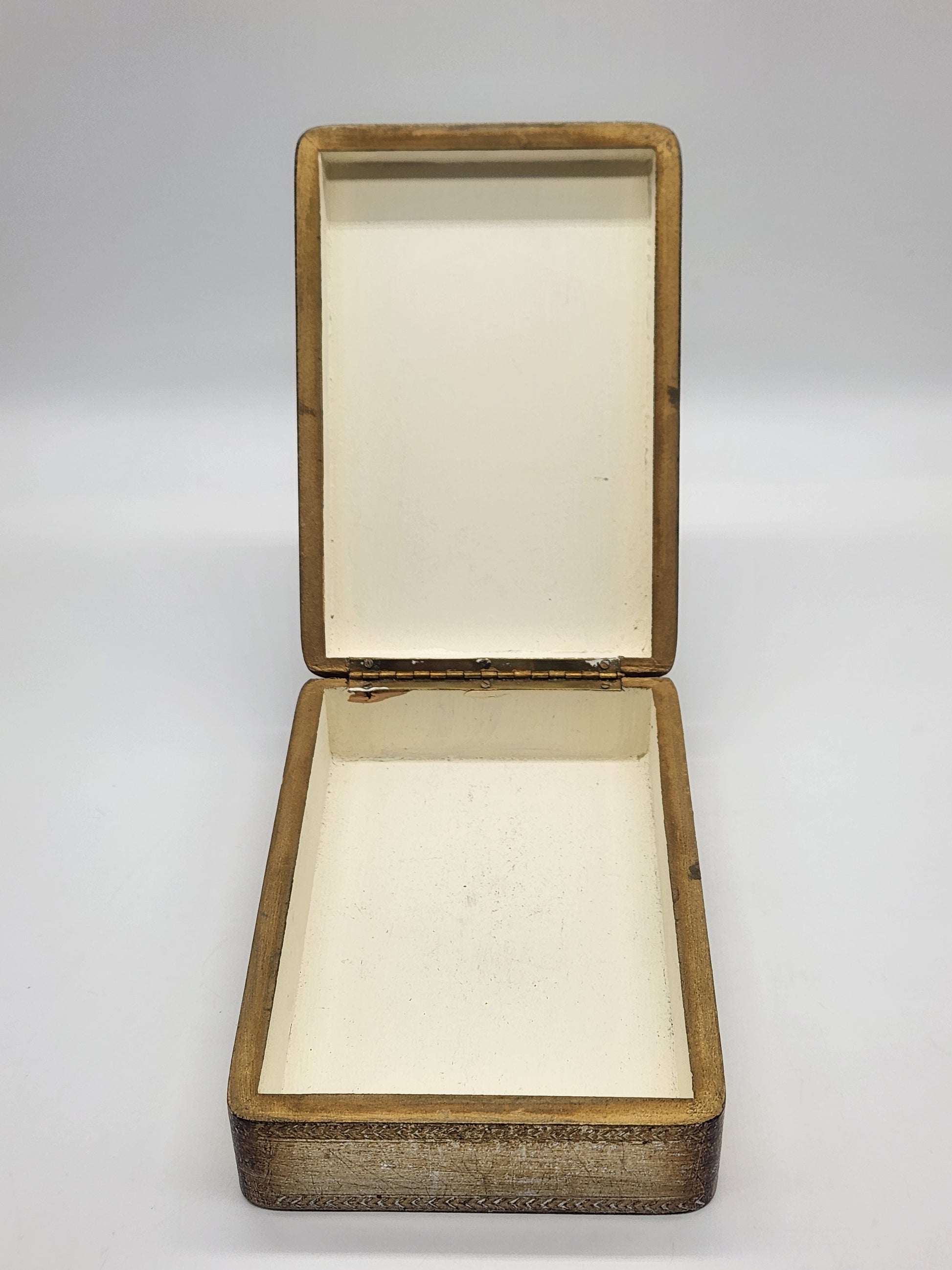 Caspar from Benozzo Gozzoli’s Journey of the Magi in the Cappella Medici Florentine box.  Wood is cracked on inside nail hinge