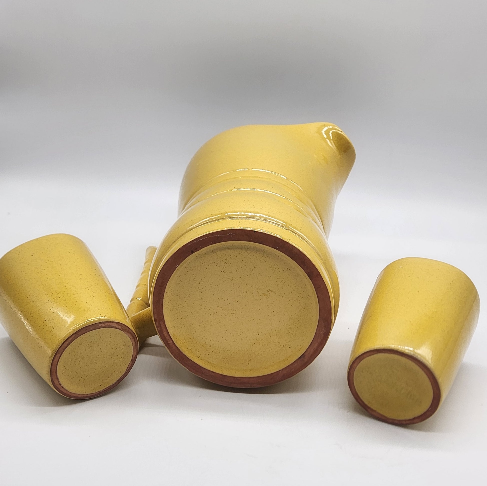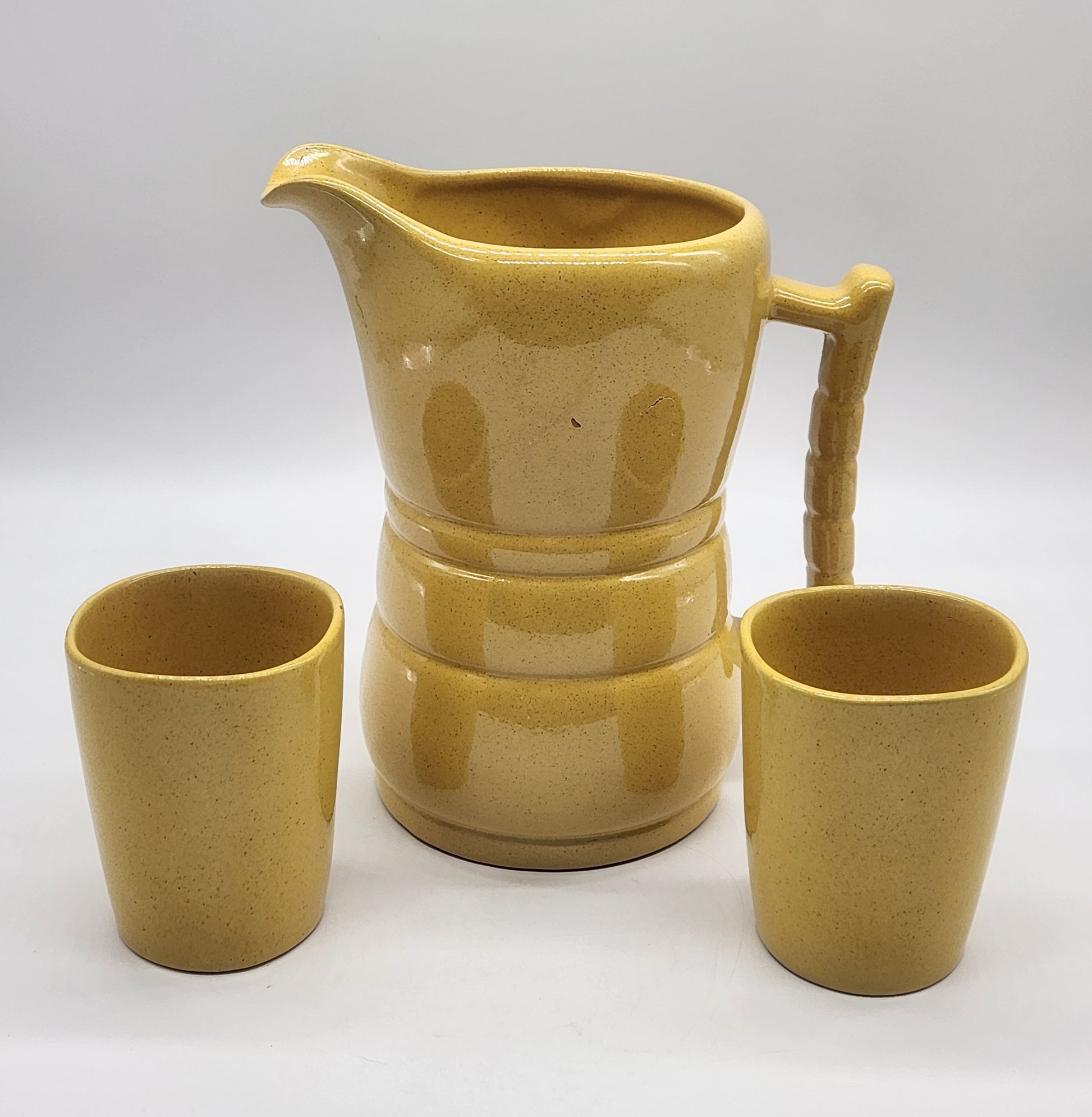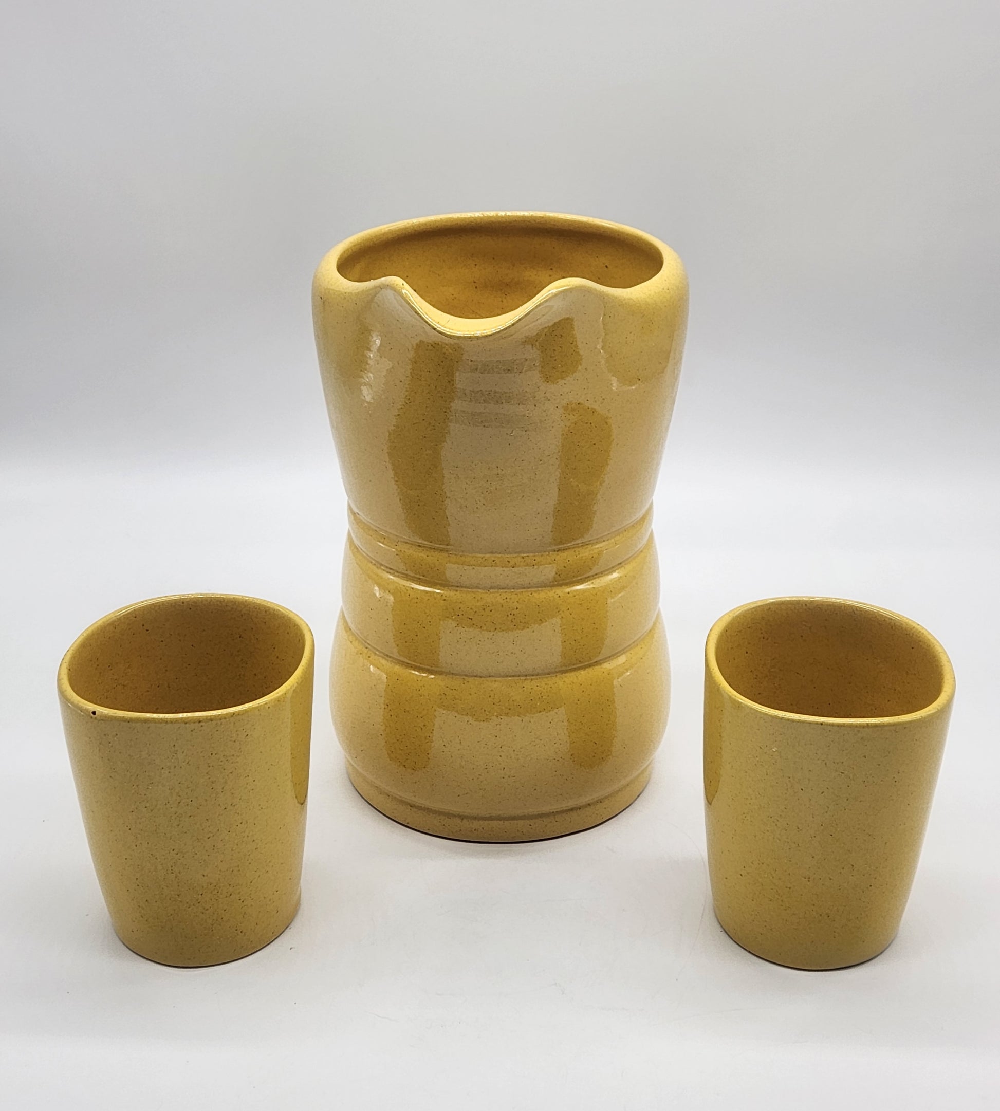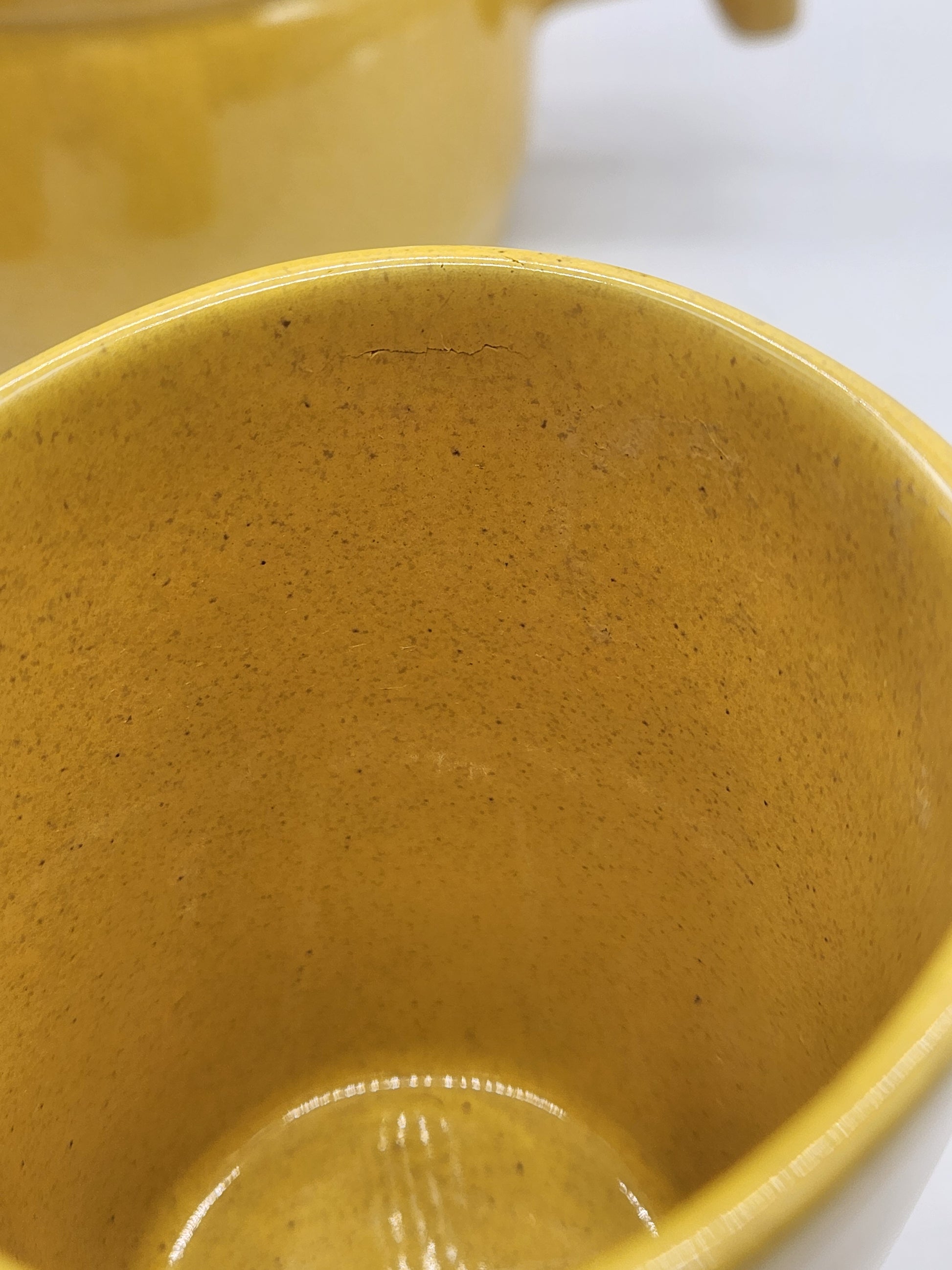 Frankoma Pottery 5LC Yellow Pair (2 in the set) of Tumblers / Beverage Glass. All 3 pieces have condition issues that would not effect display purposes.