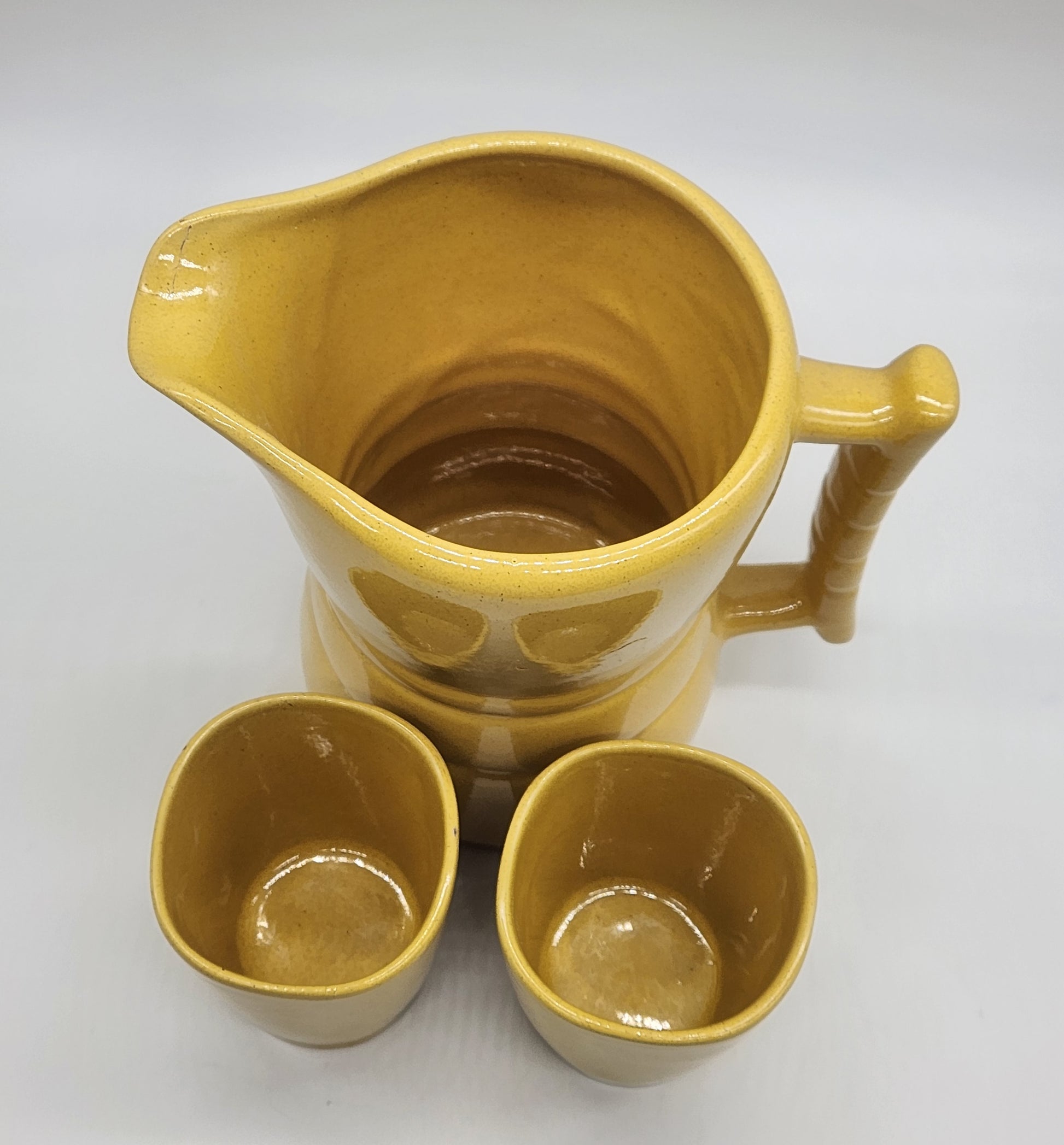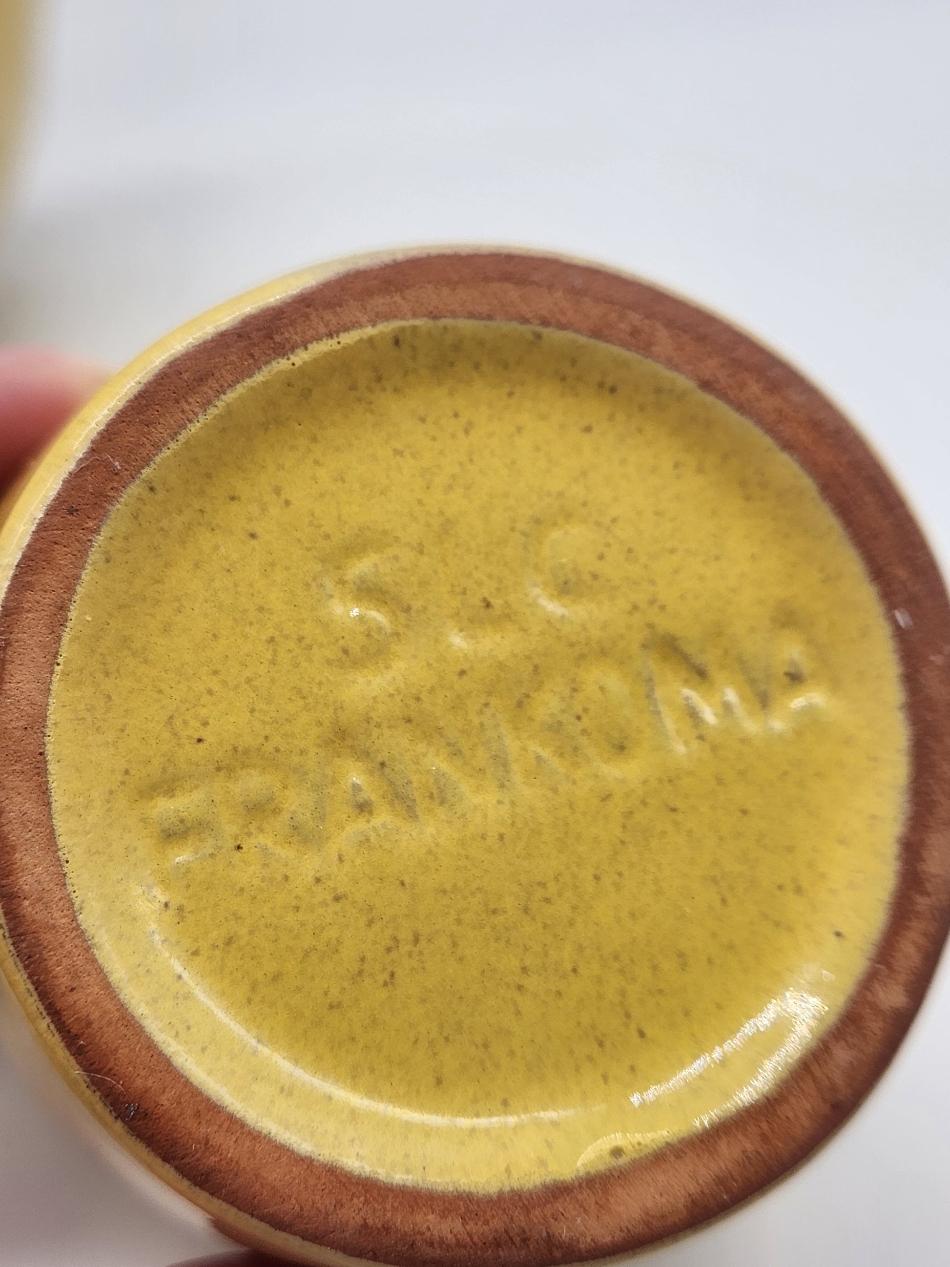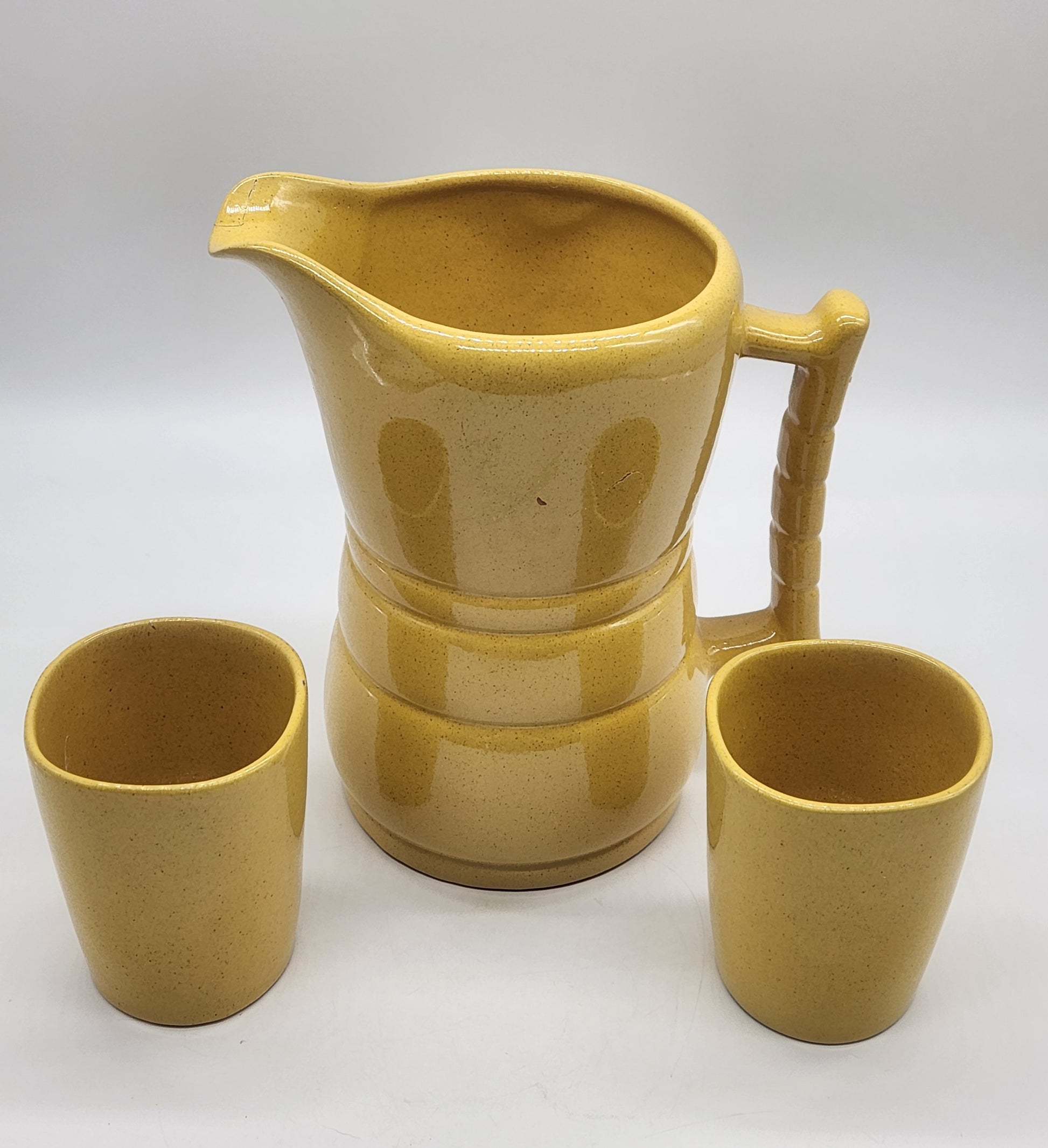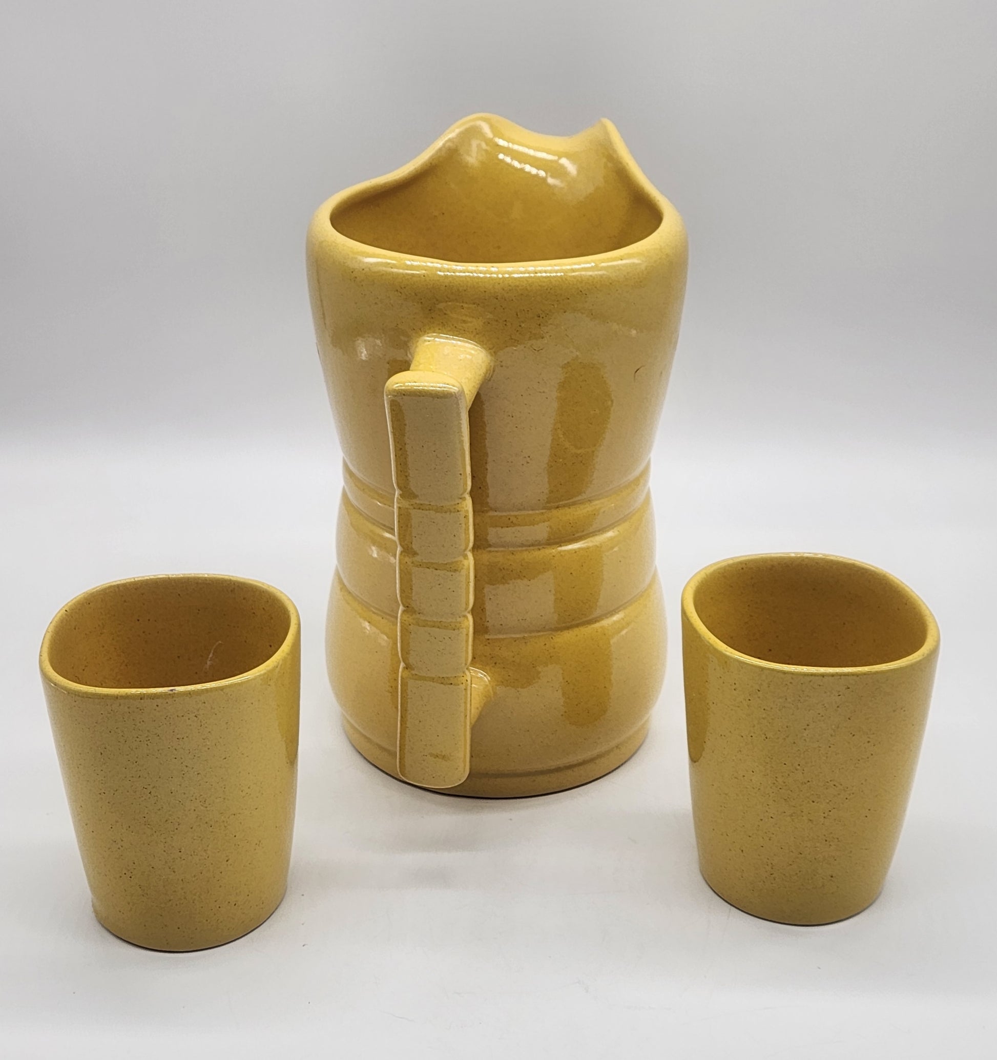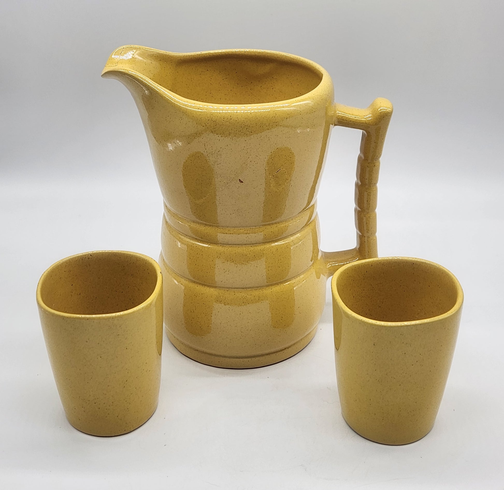 Frankoma Pottery 5LC Yellow Pair (2 in the set) of Tumblers / Beverage Glass. All 3 pieces have condition issues that would not effect display purposes.