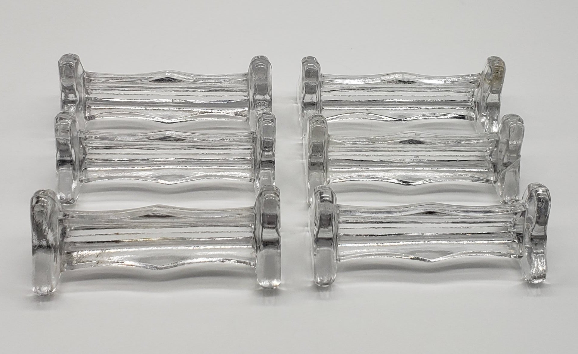 Vintage French Heavy Glass Knife Rests - Set of 6. One has been repaired