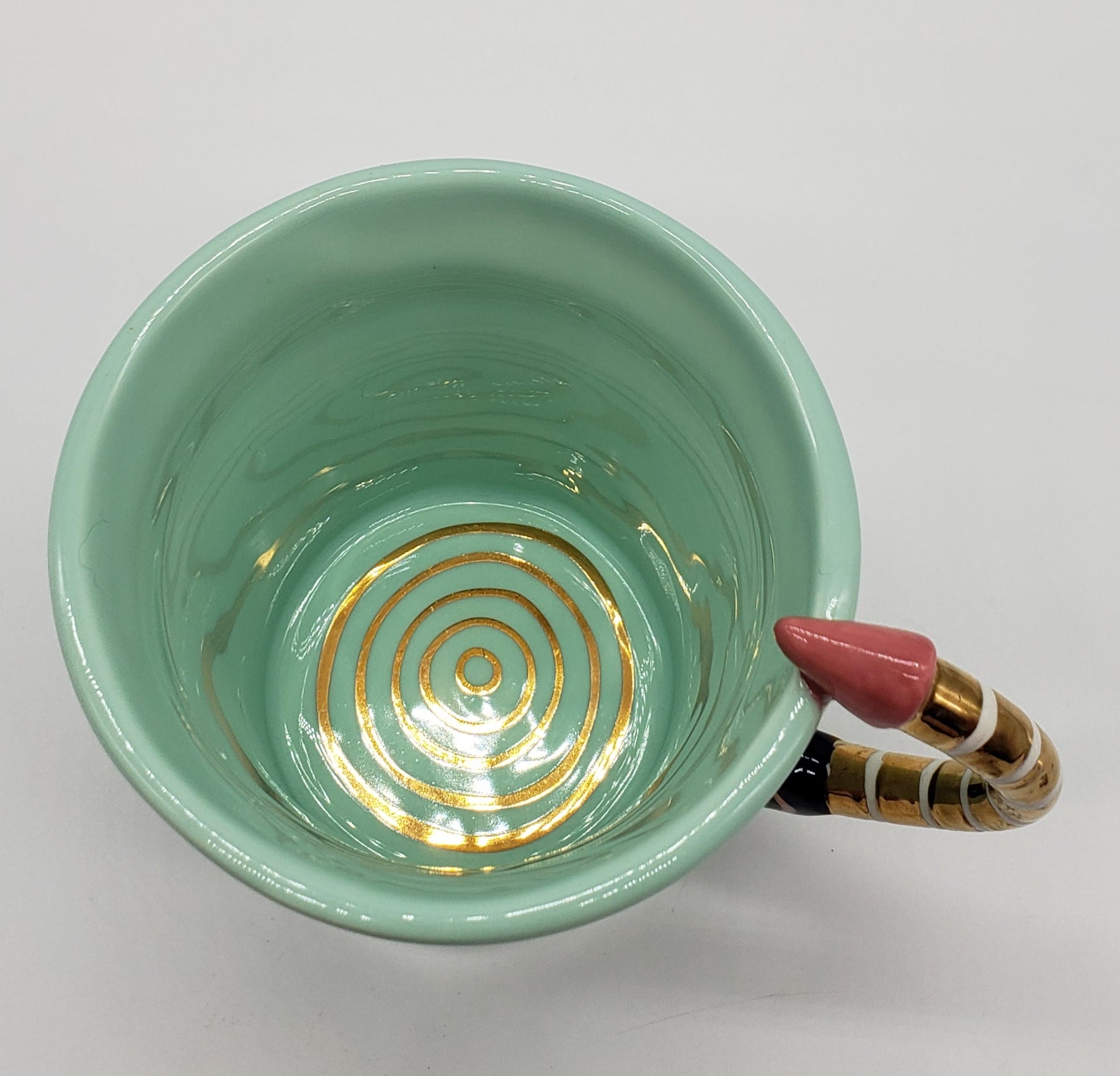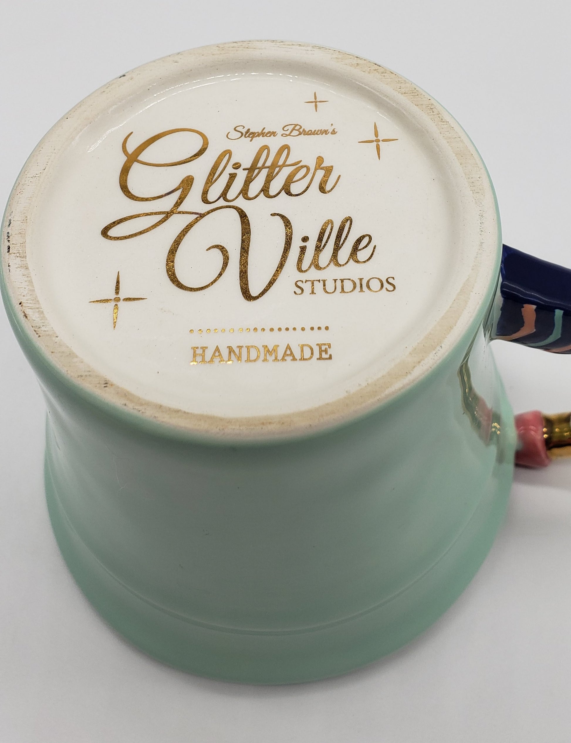 Glitter Ville Mug Studios Stephen Brown's Mug Cupid's Handle Mint Green Gold. This golden tipped bolt will arrow its way to your heart. Or to your hot chocolate, as the case may be! 3.25" *Please review all pictures and if you have any additional questions or concerns please message for the details*
