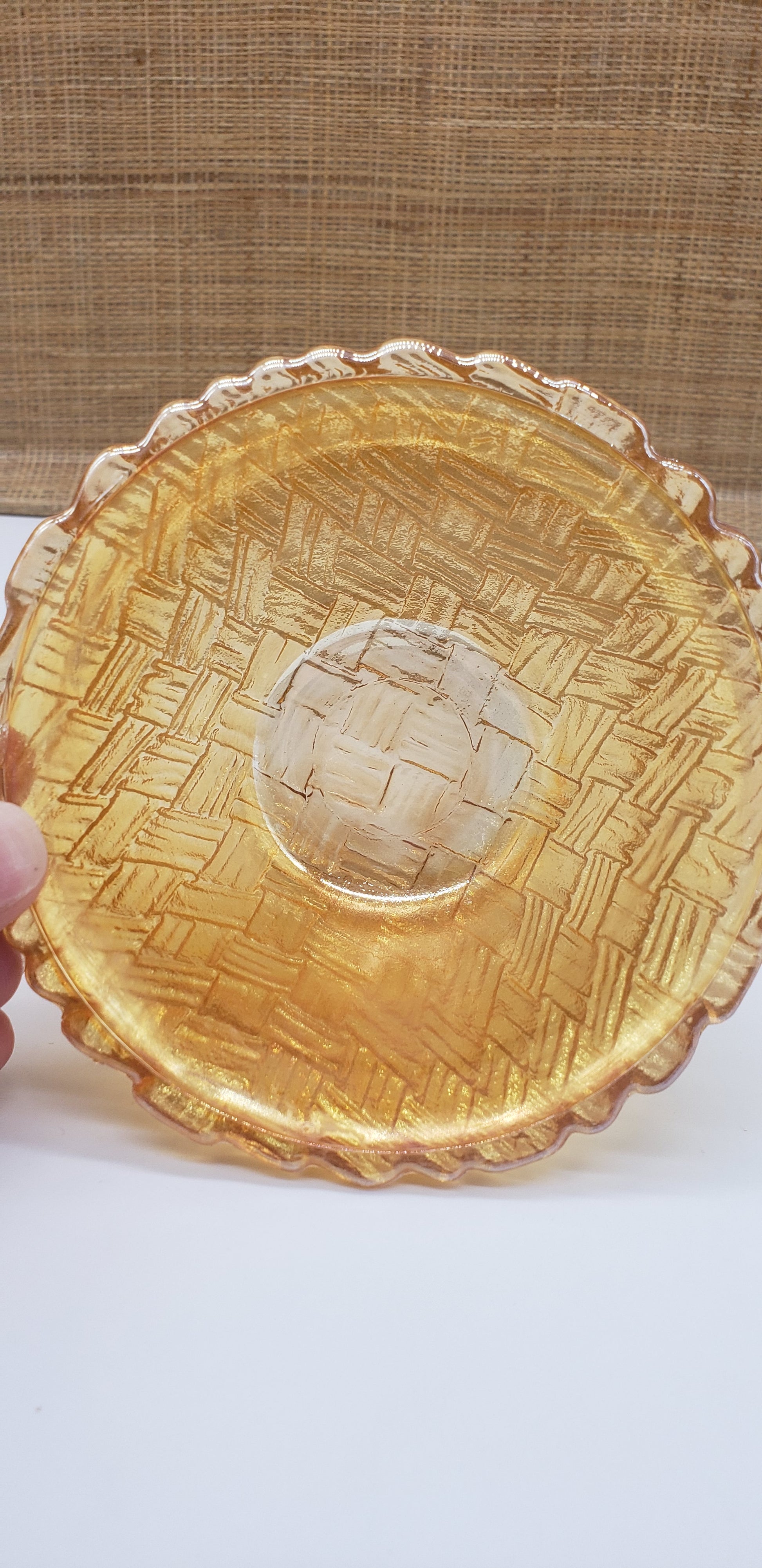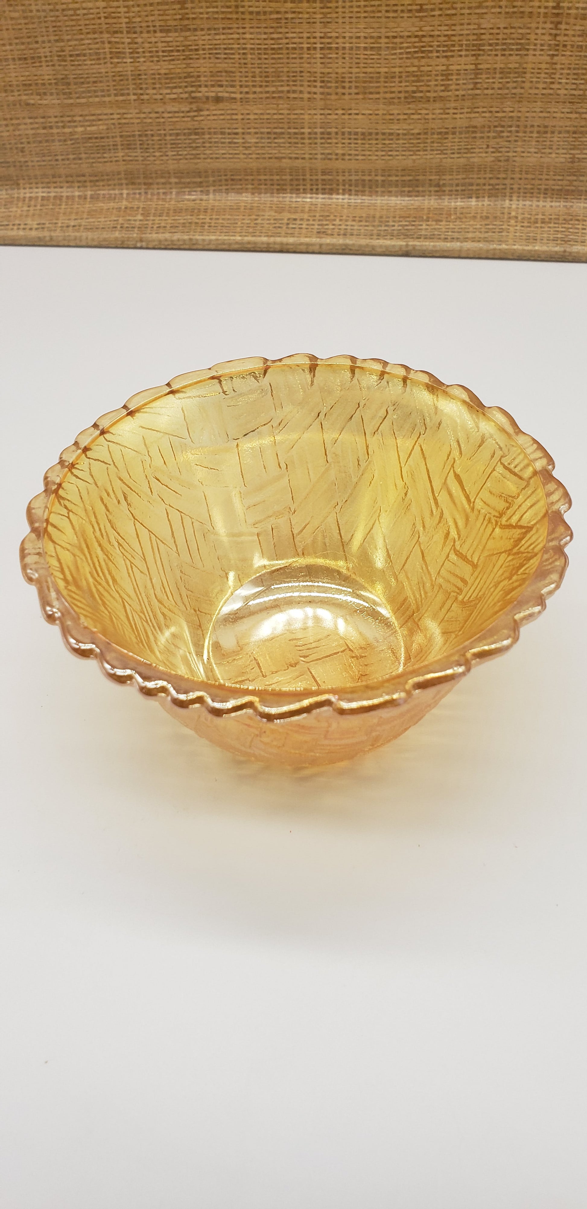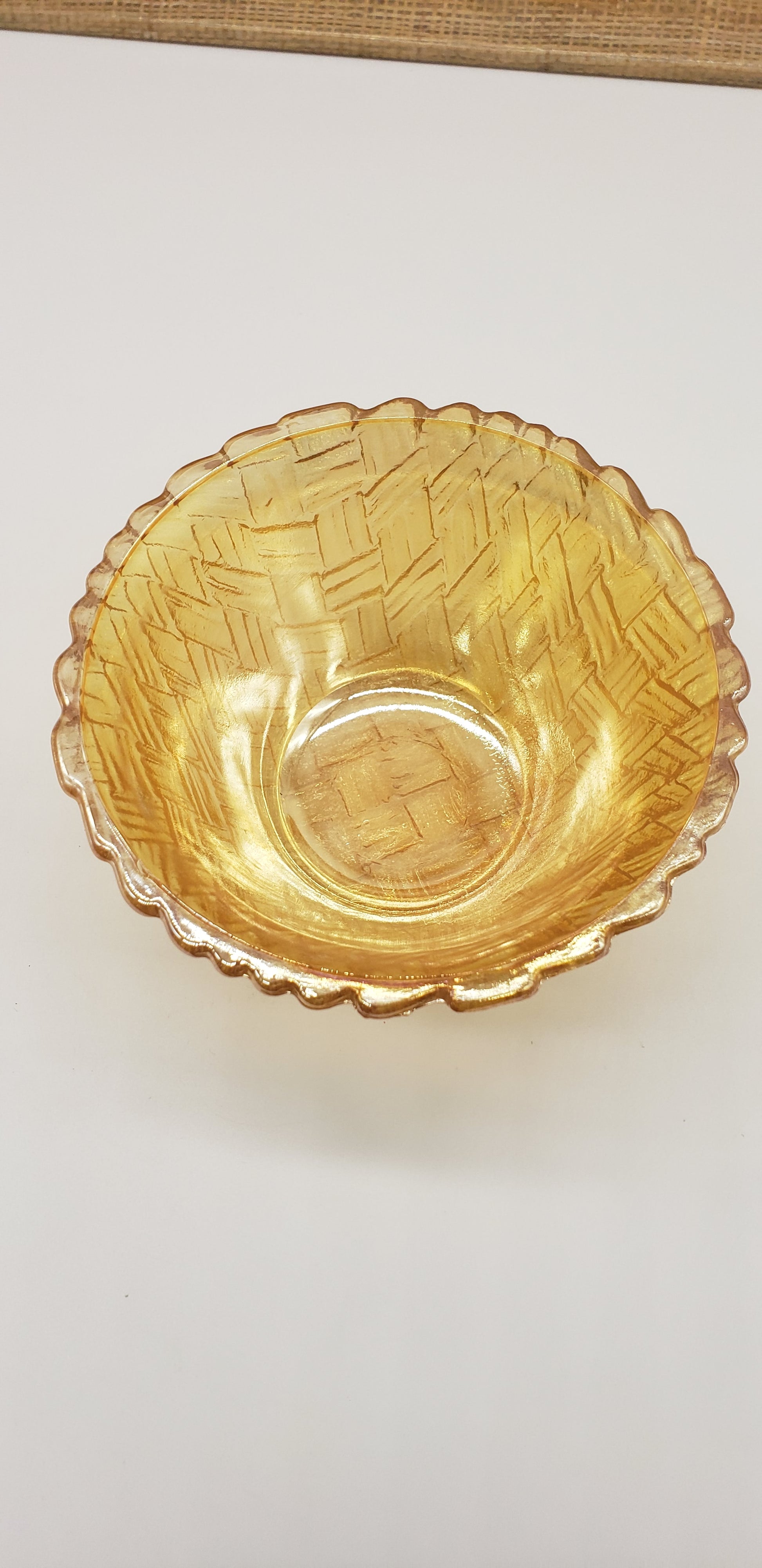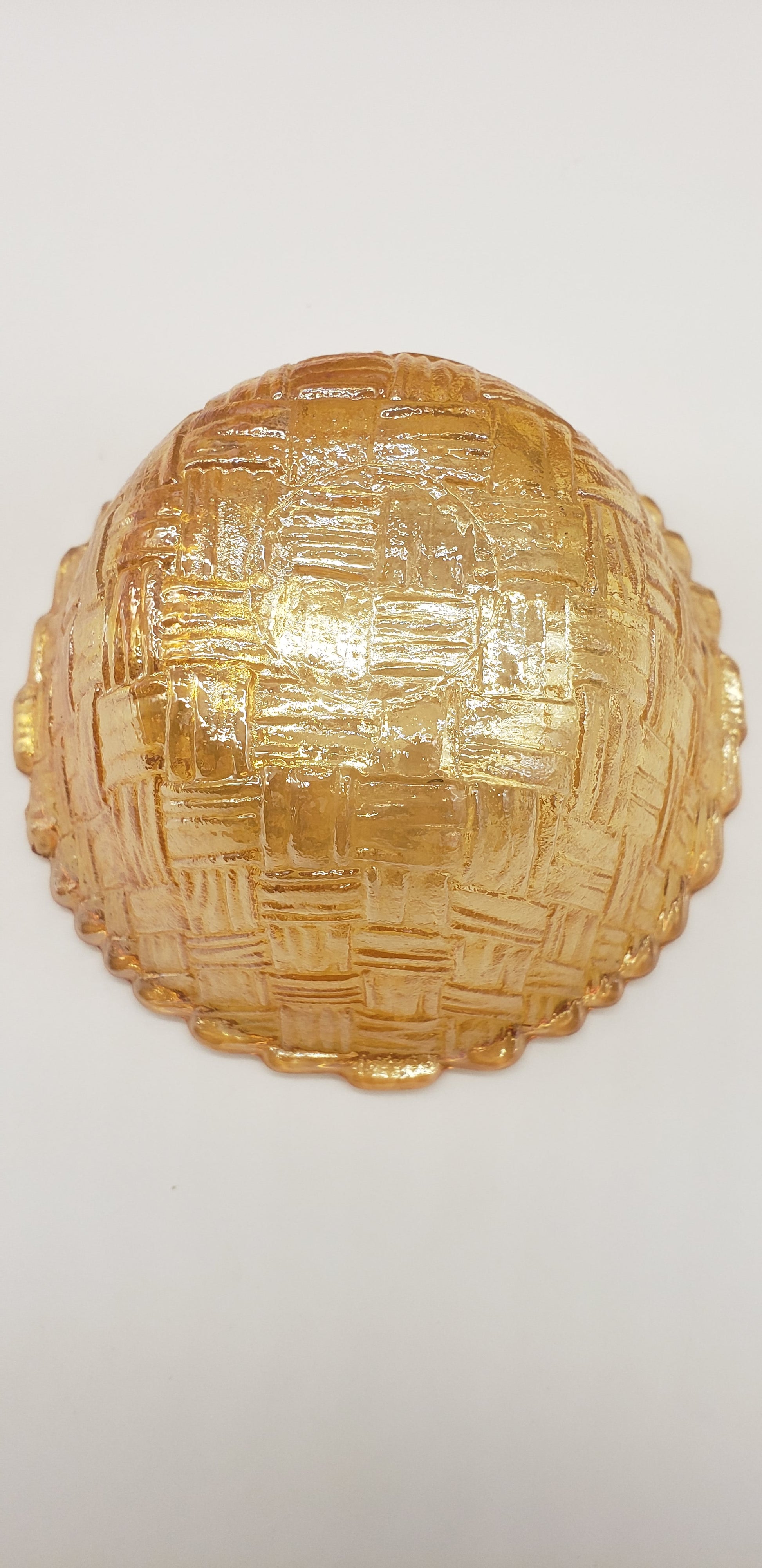 Indiana Carnival Glass, Marigold Basket Weave, Dessert Small Bowl Dish.