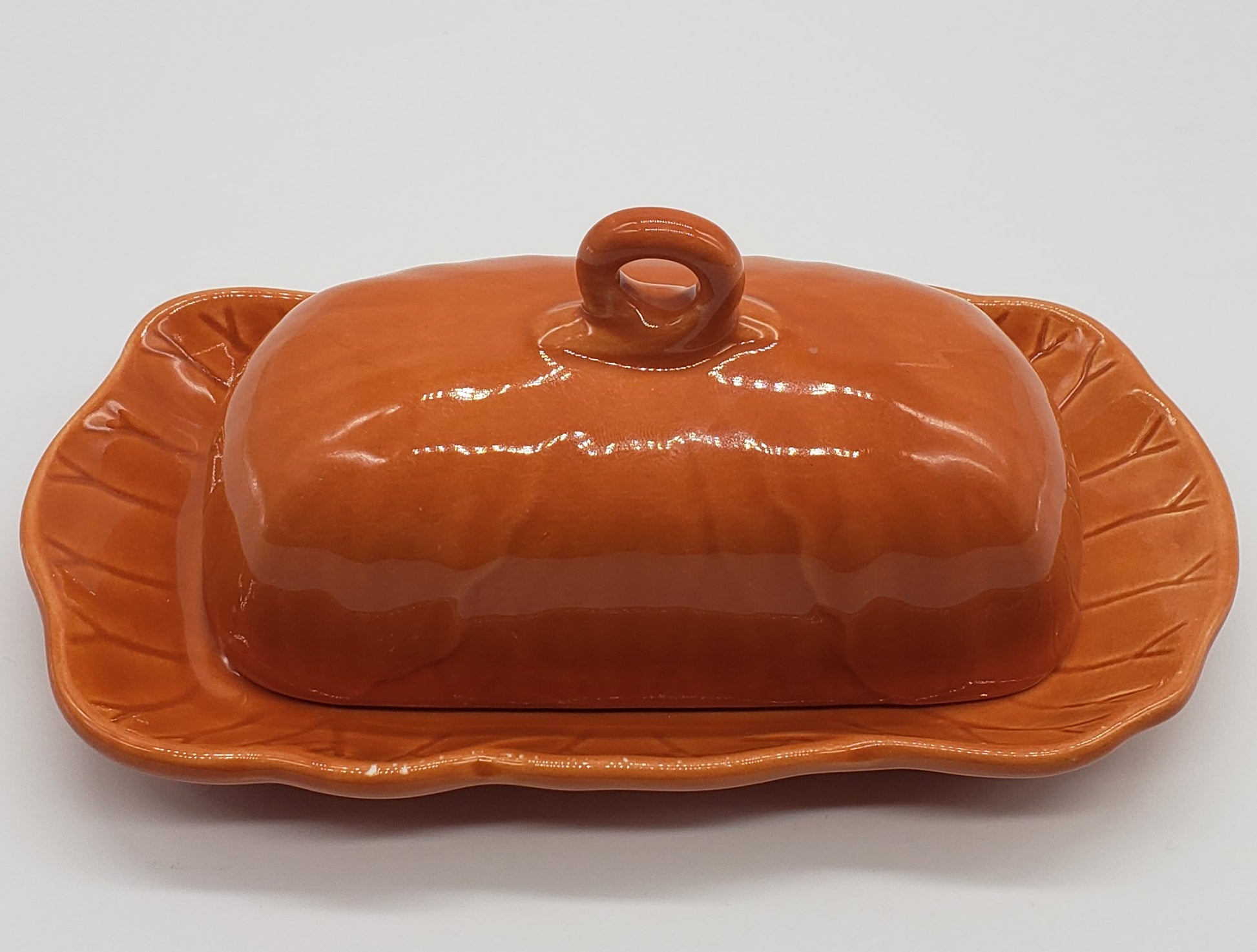 Laurie Gates Orange Ceramic Covered Butter Dish
