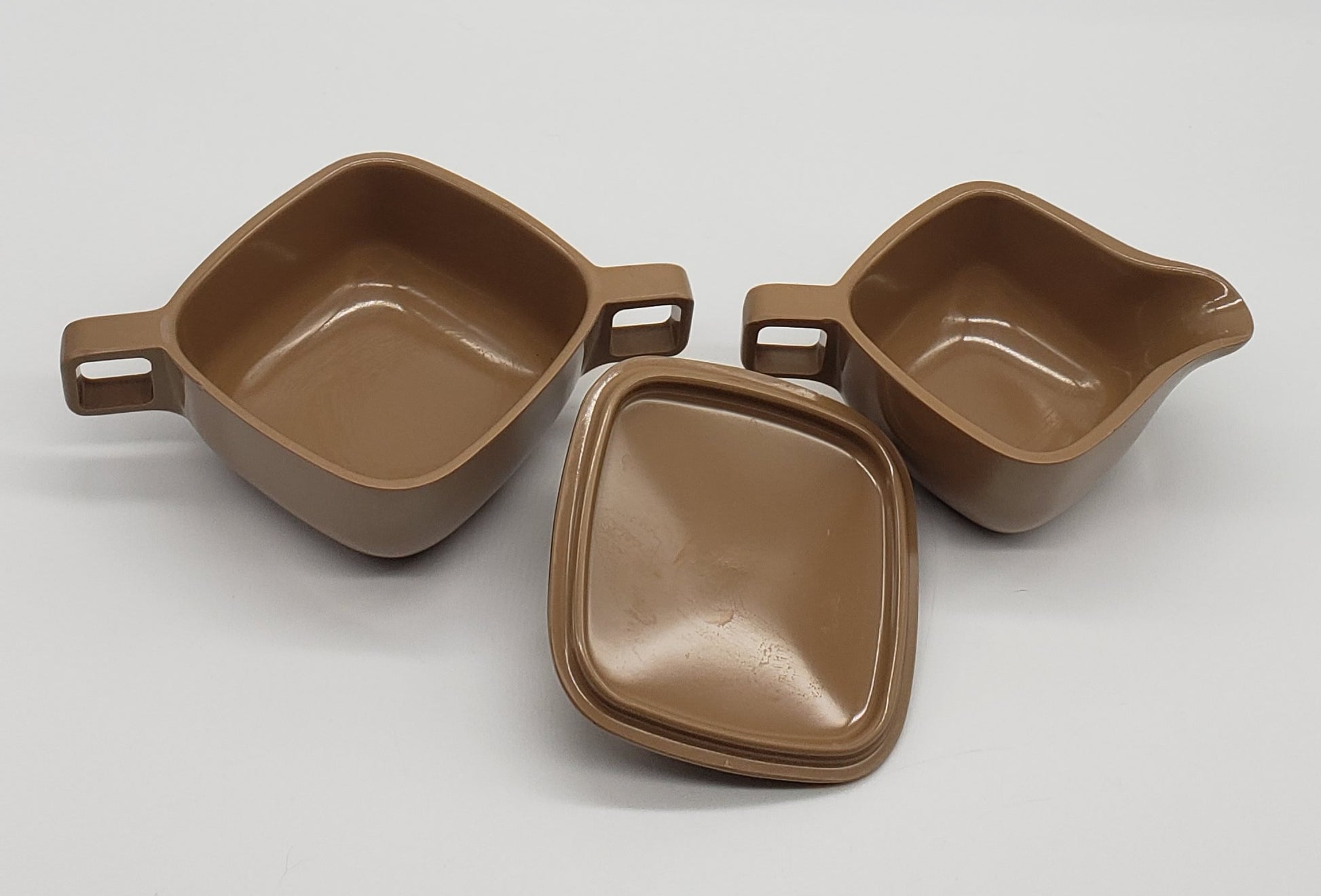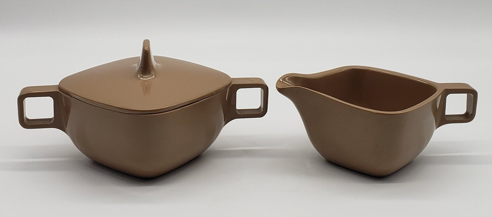 Melmac Brookpark Square Sugar Bowl & Creamer Brown
