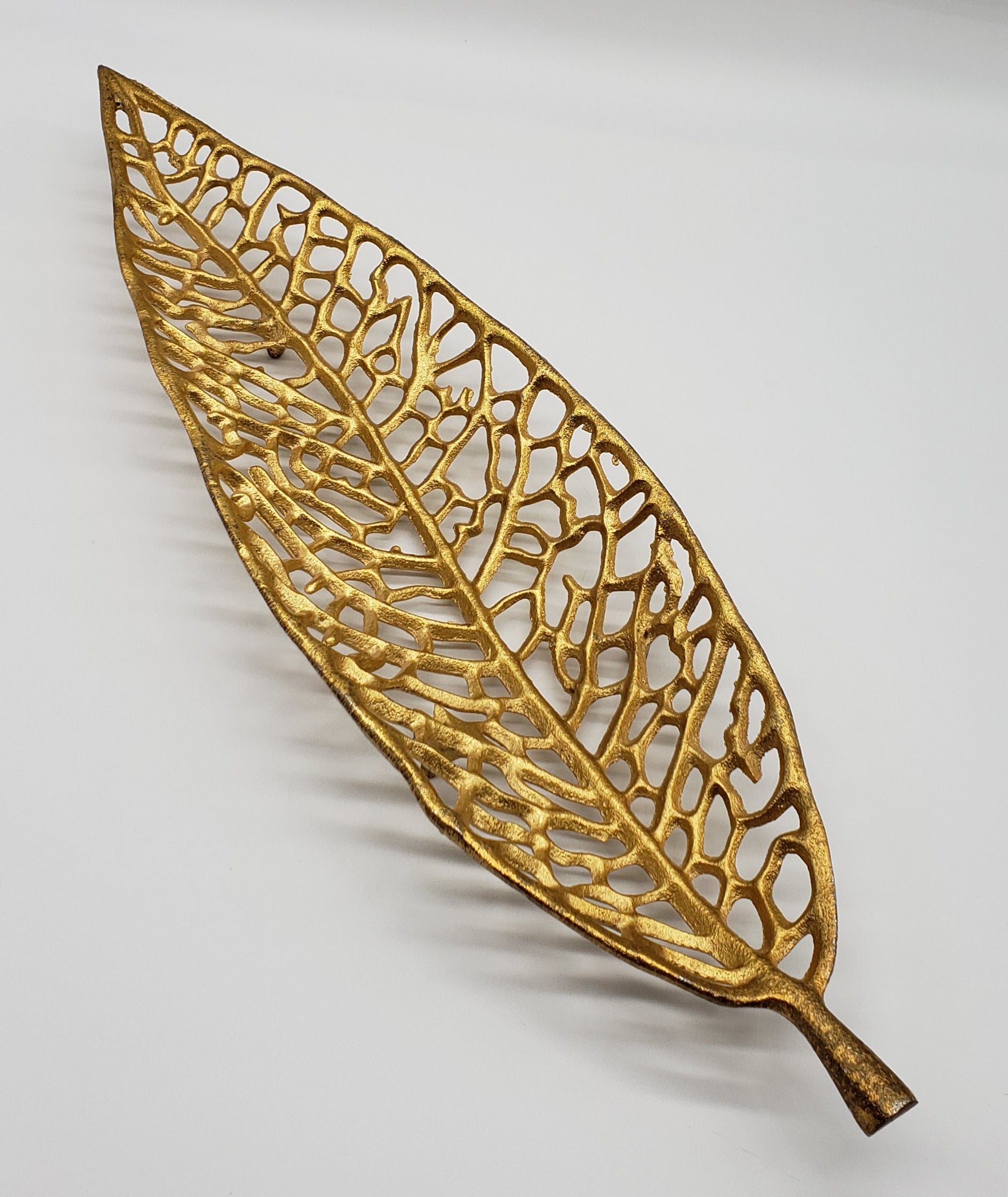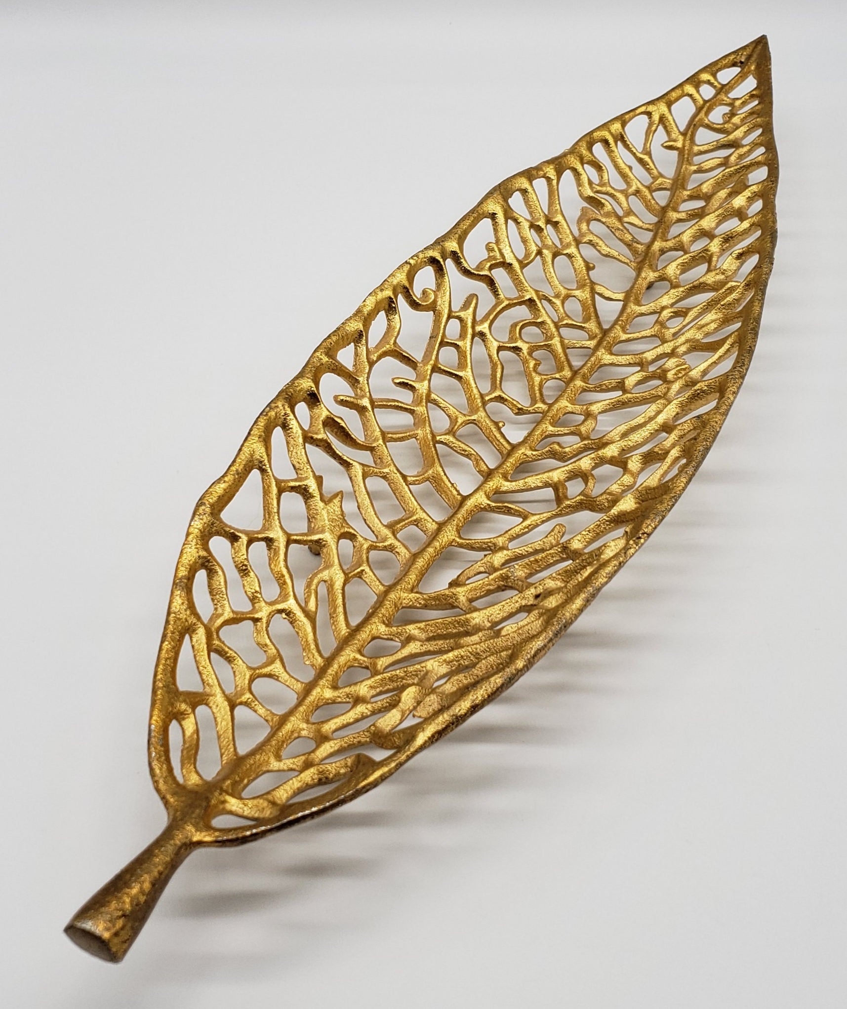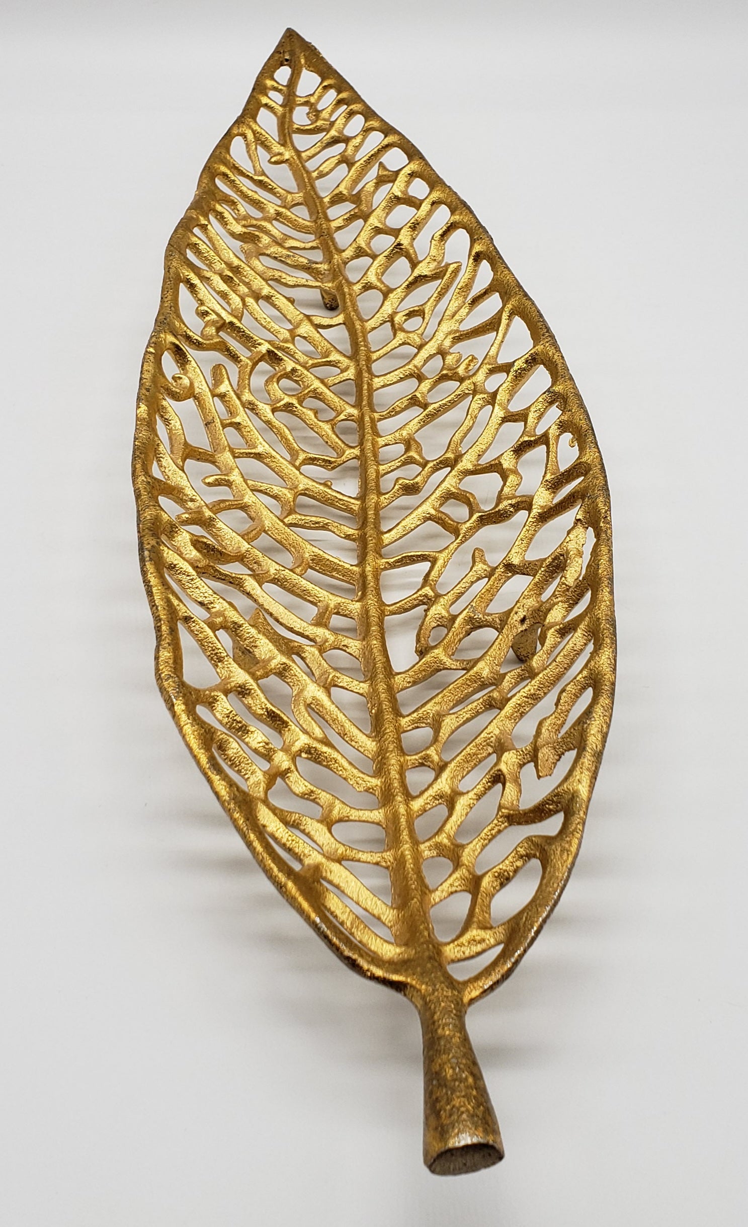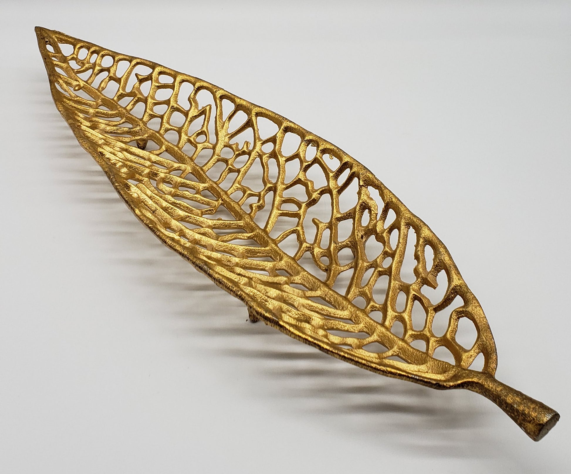 Metal Decorative Leaf Tray Cut Out Vein Design Gold Modern