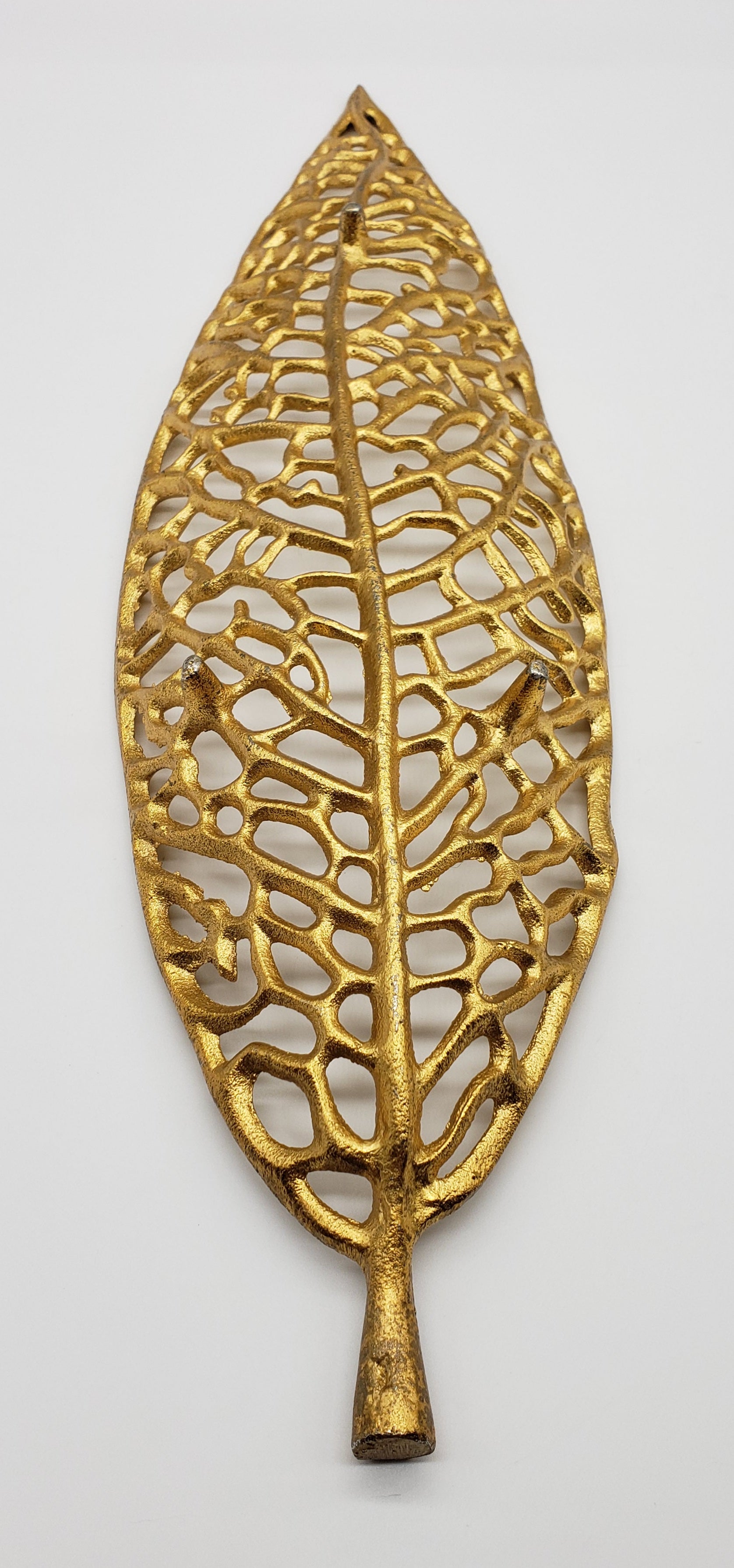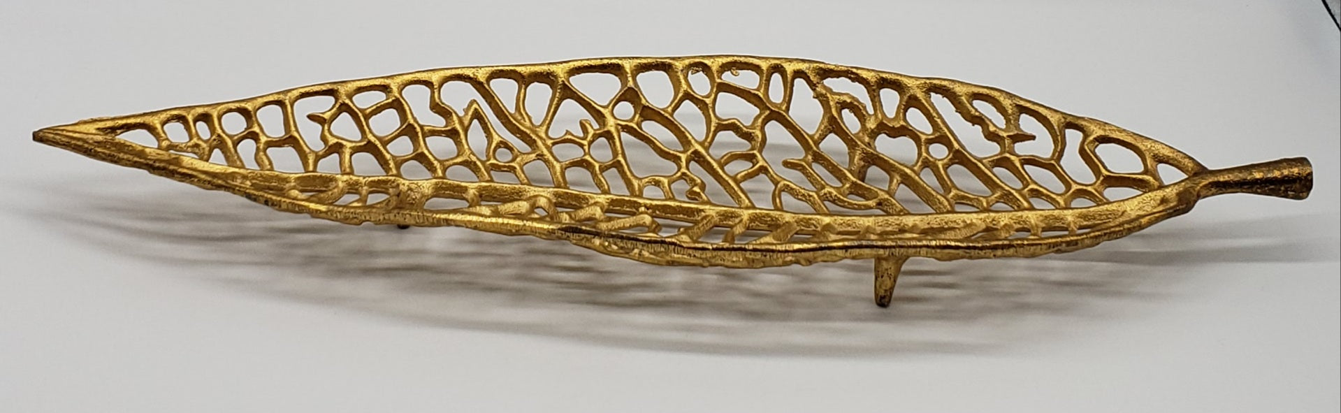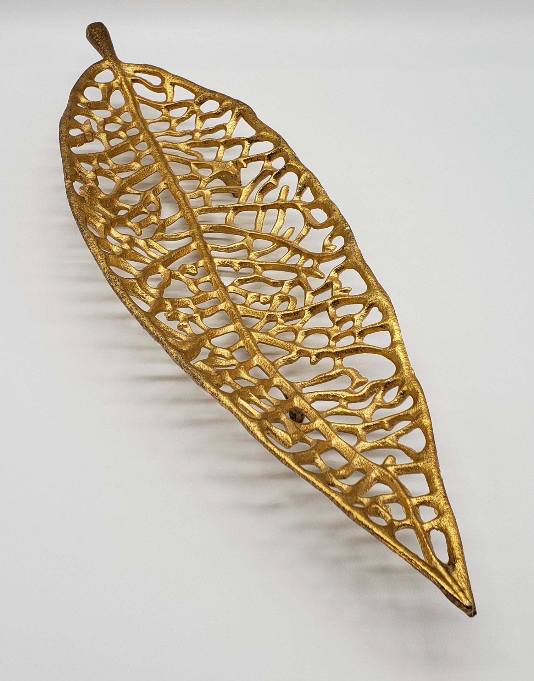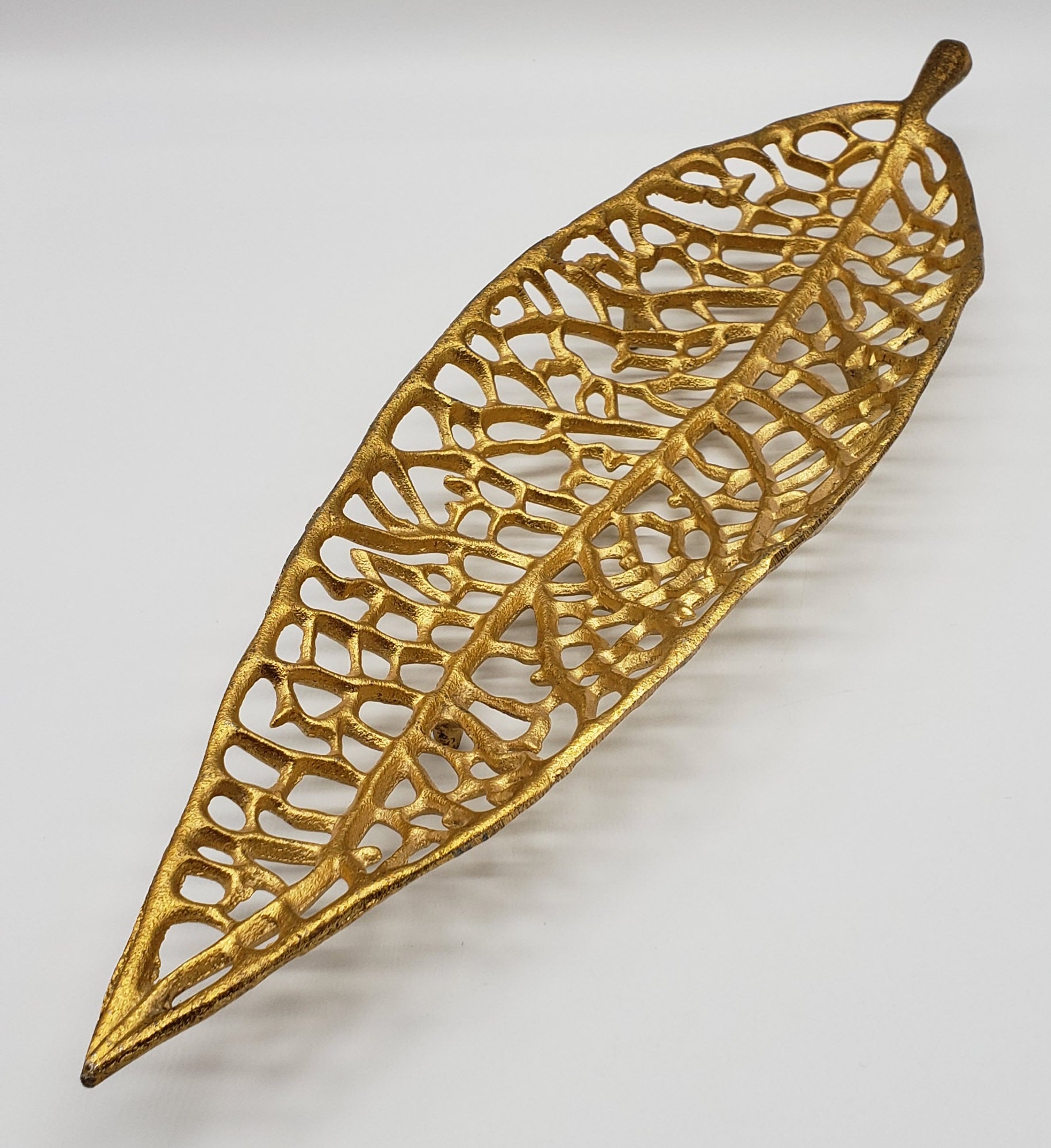 Metal Decorative Leaf Tray Cut Out Vein Design Gold Modern