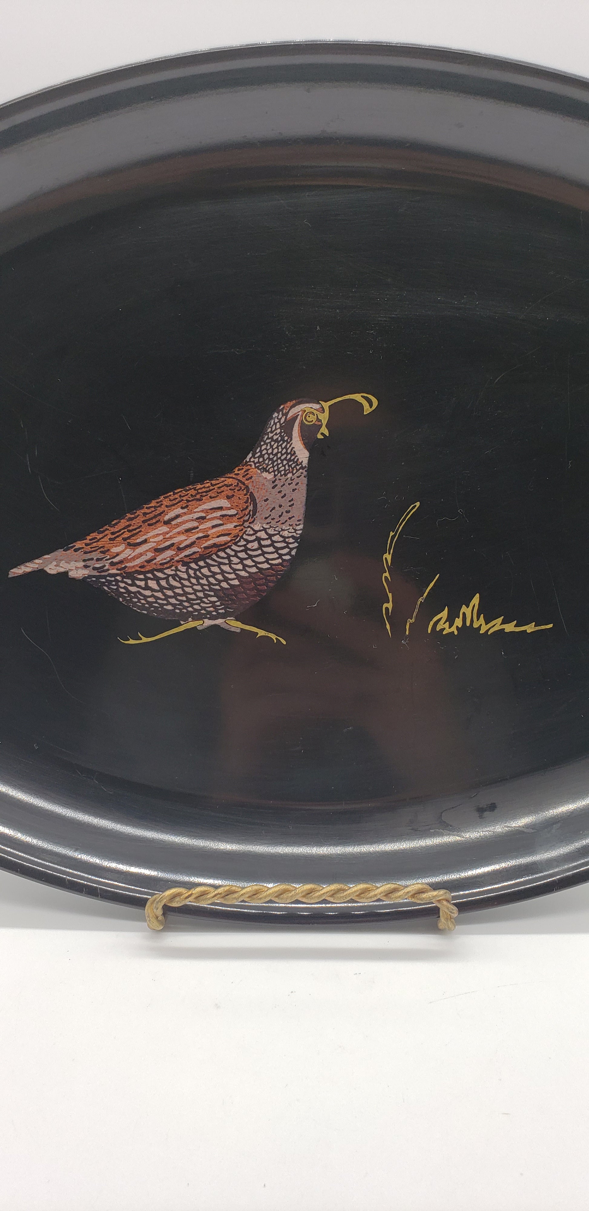 Couroc Black Lacquer Quail Tray