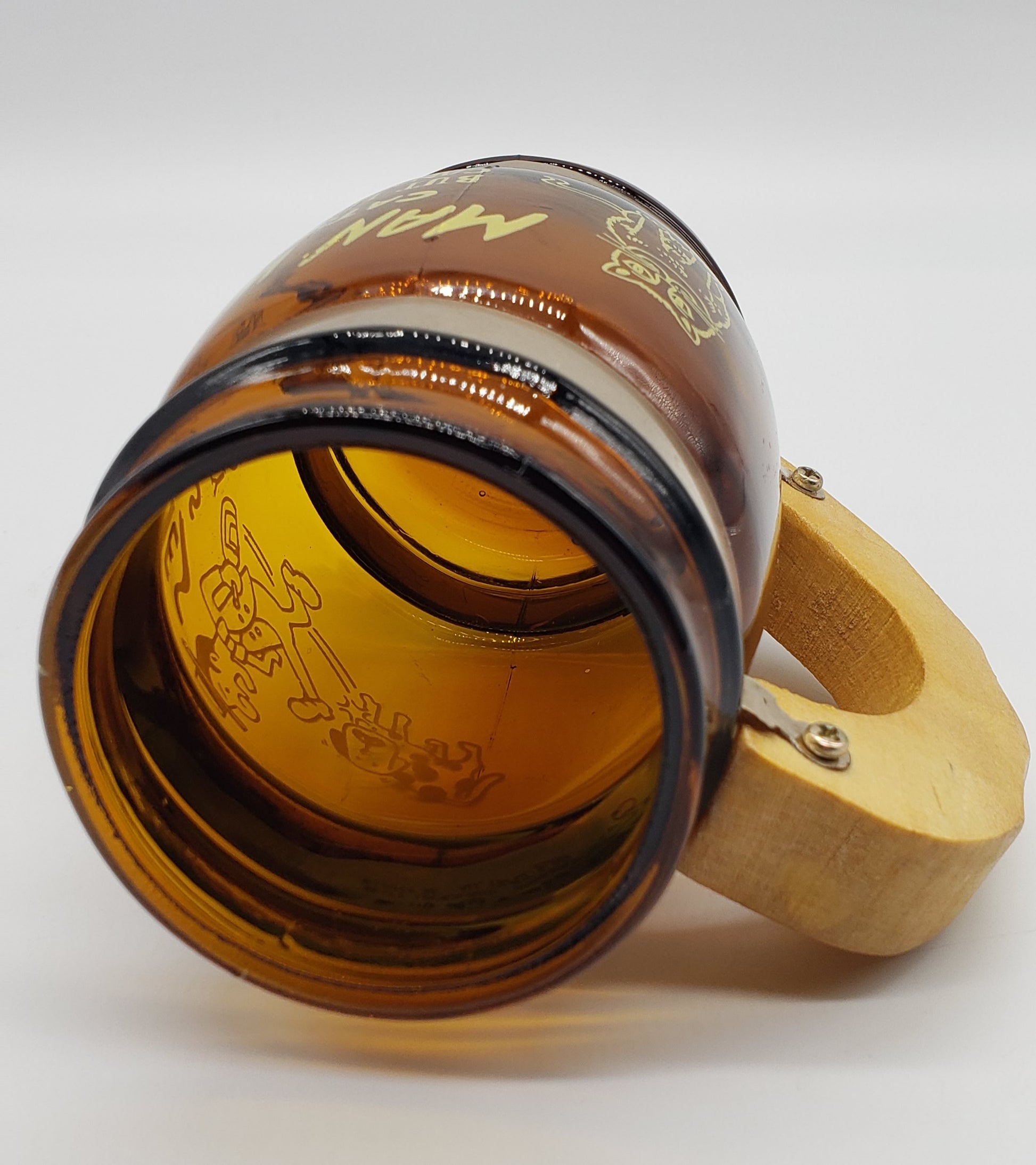 Siesta Ware Amber Glass Barware Barrel Mugs w/ Wooden Handle