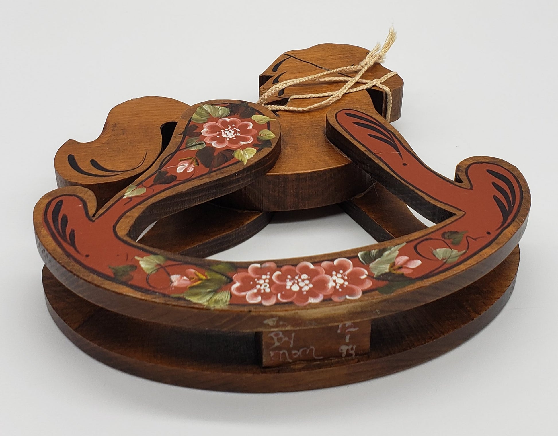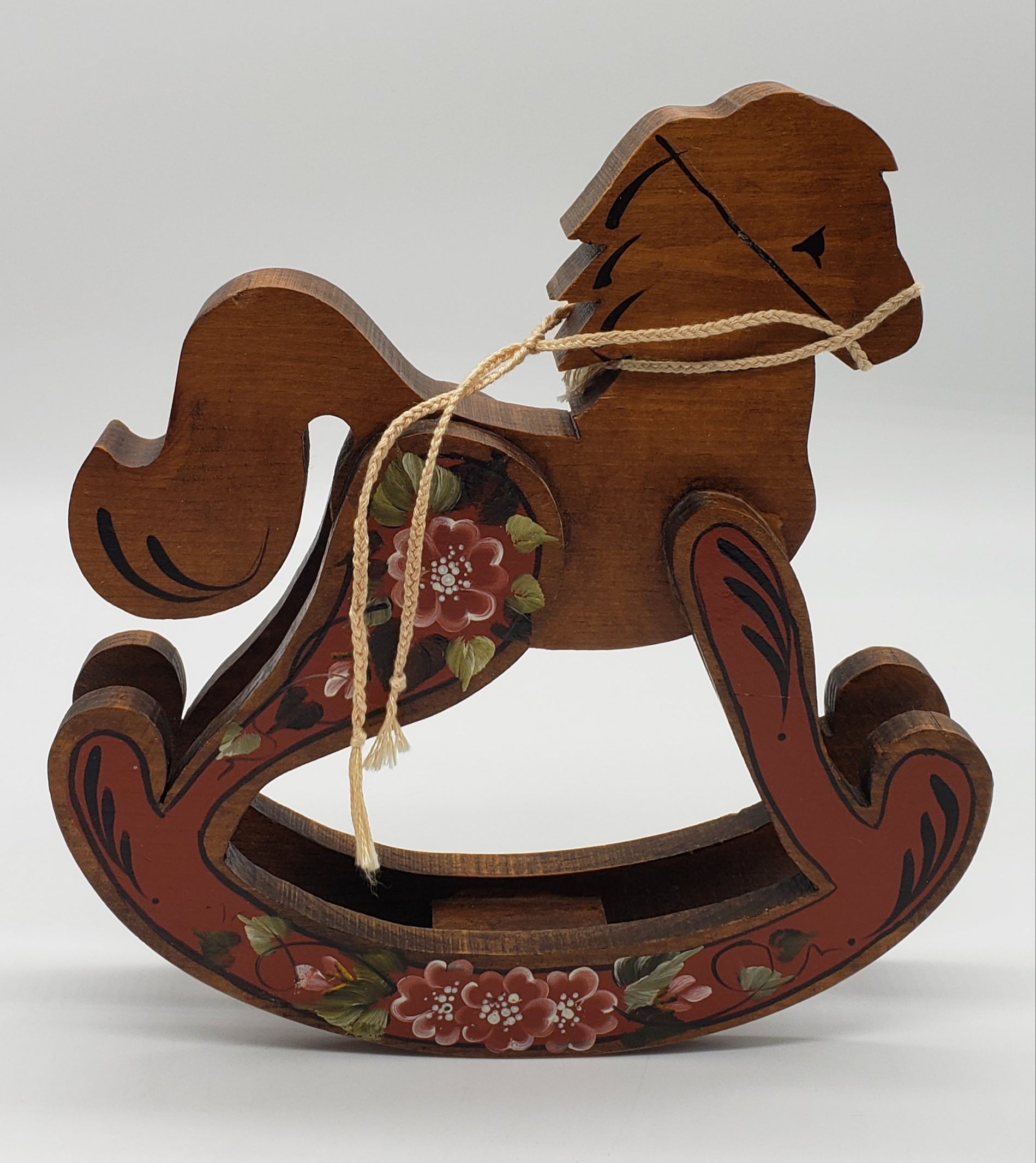 Folk Art Hand Carved Small Wooden Rocking Horse