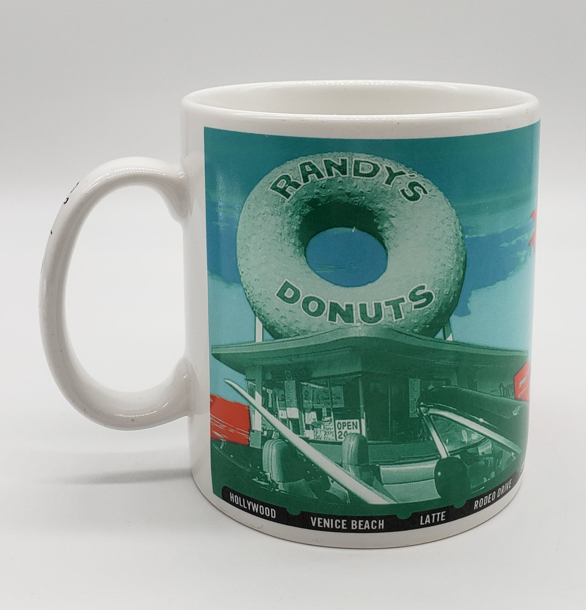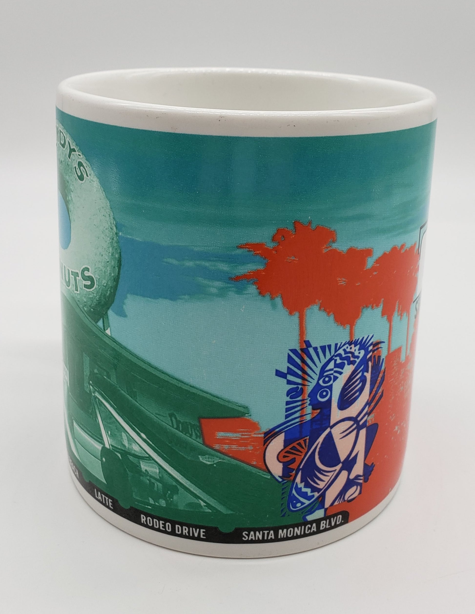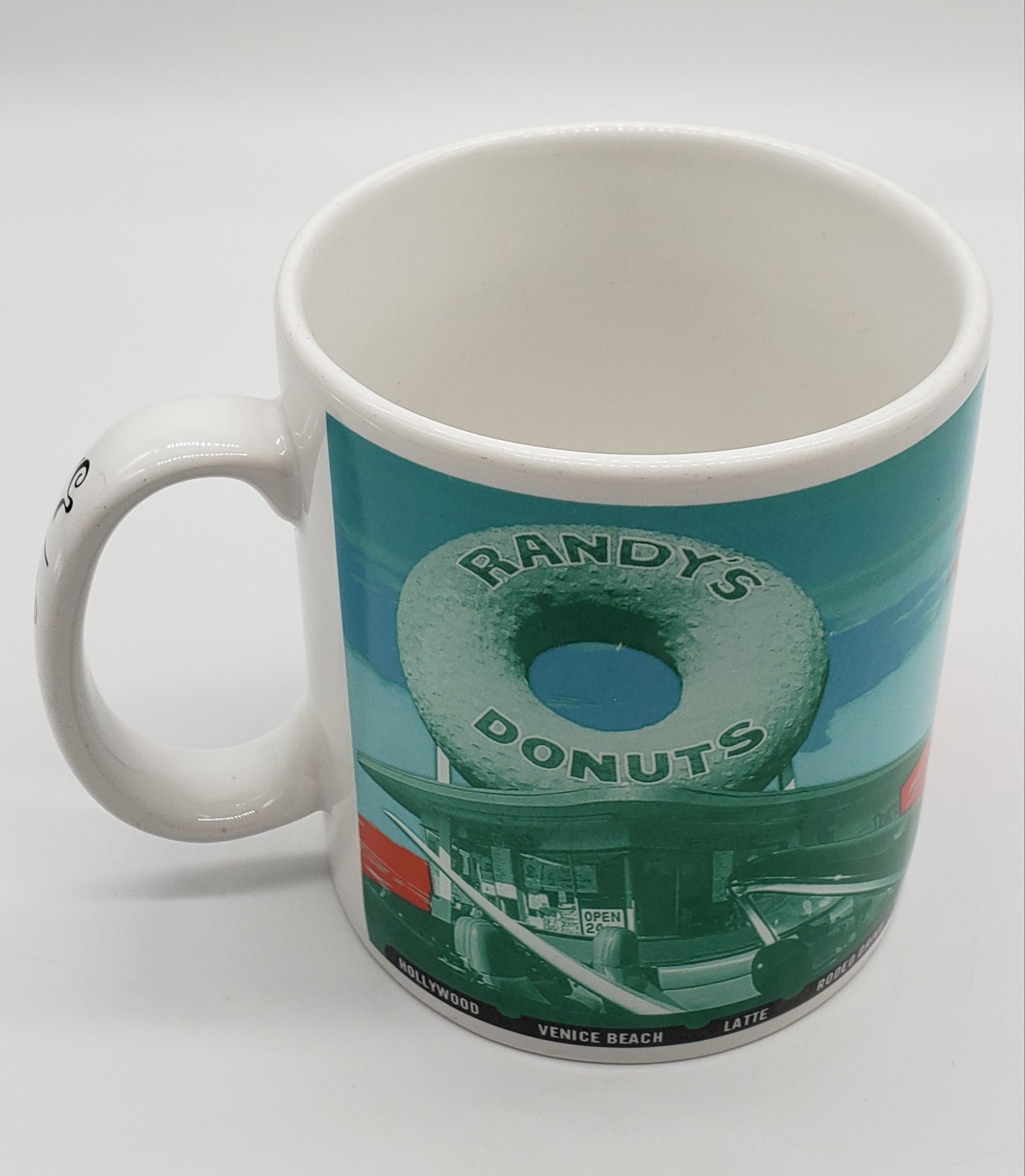 Los Angeles Starbucks Mug / 1999 / Randy's Donuts / Coffee Tea Home Office Decor. Some utensil marks and scratching present.