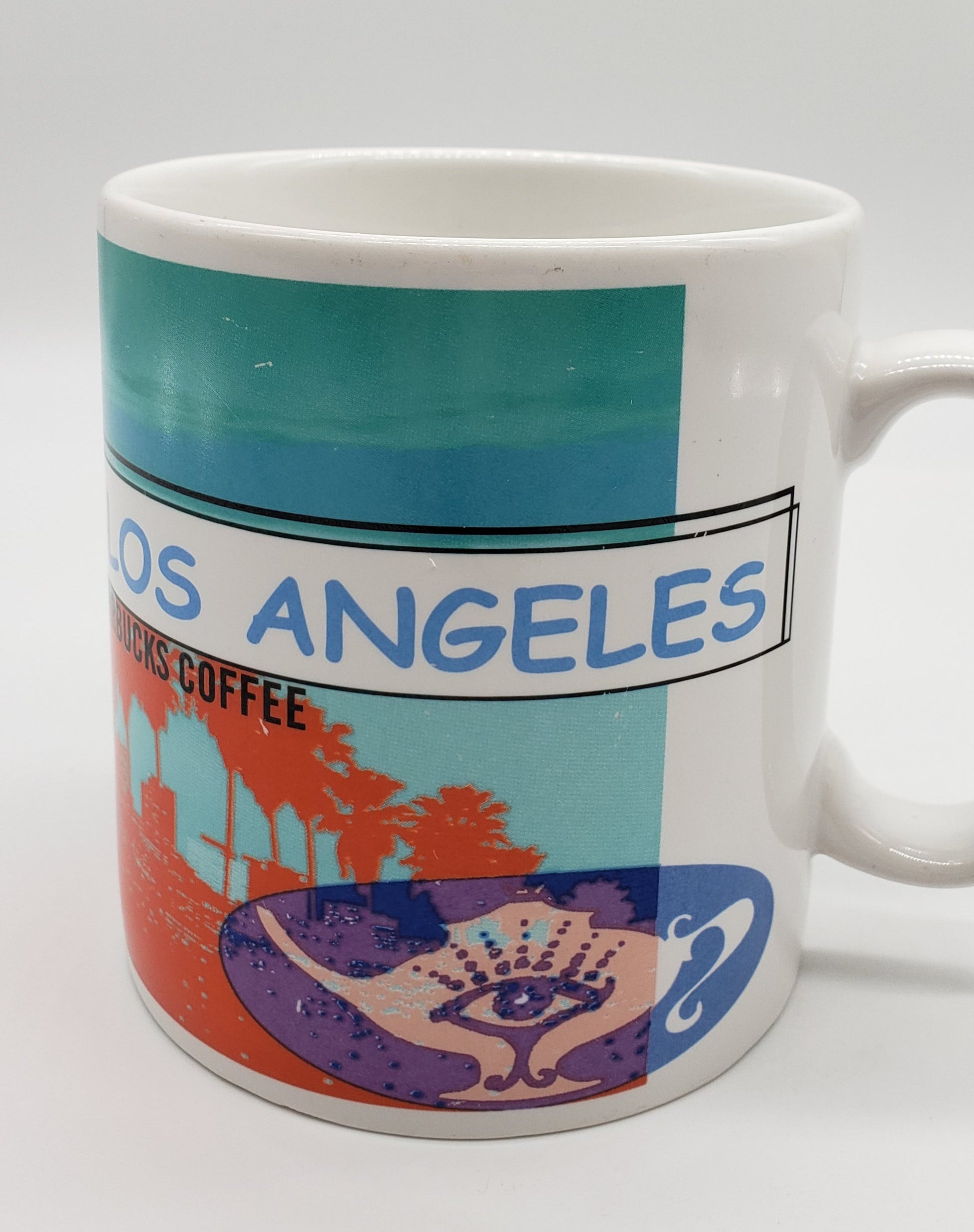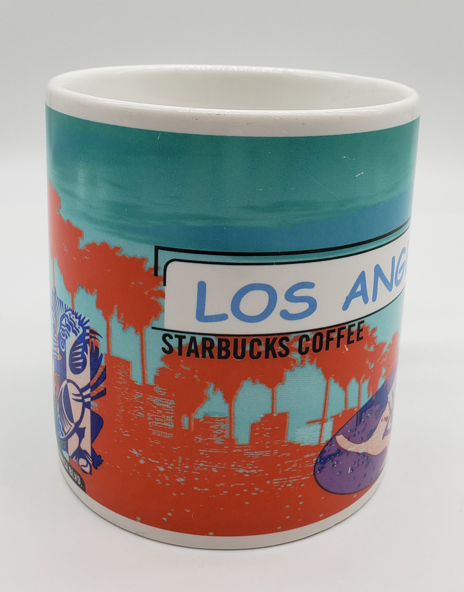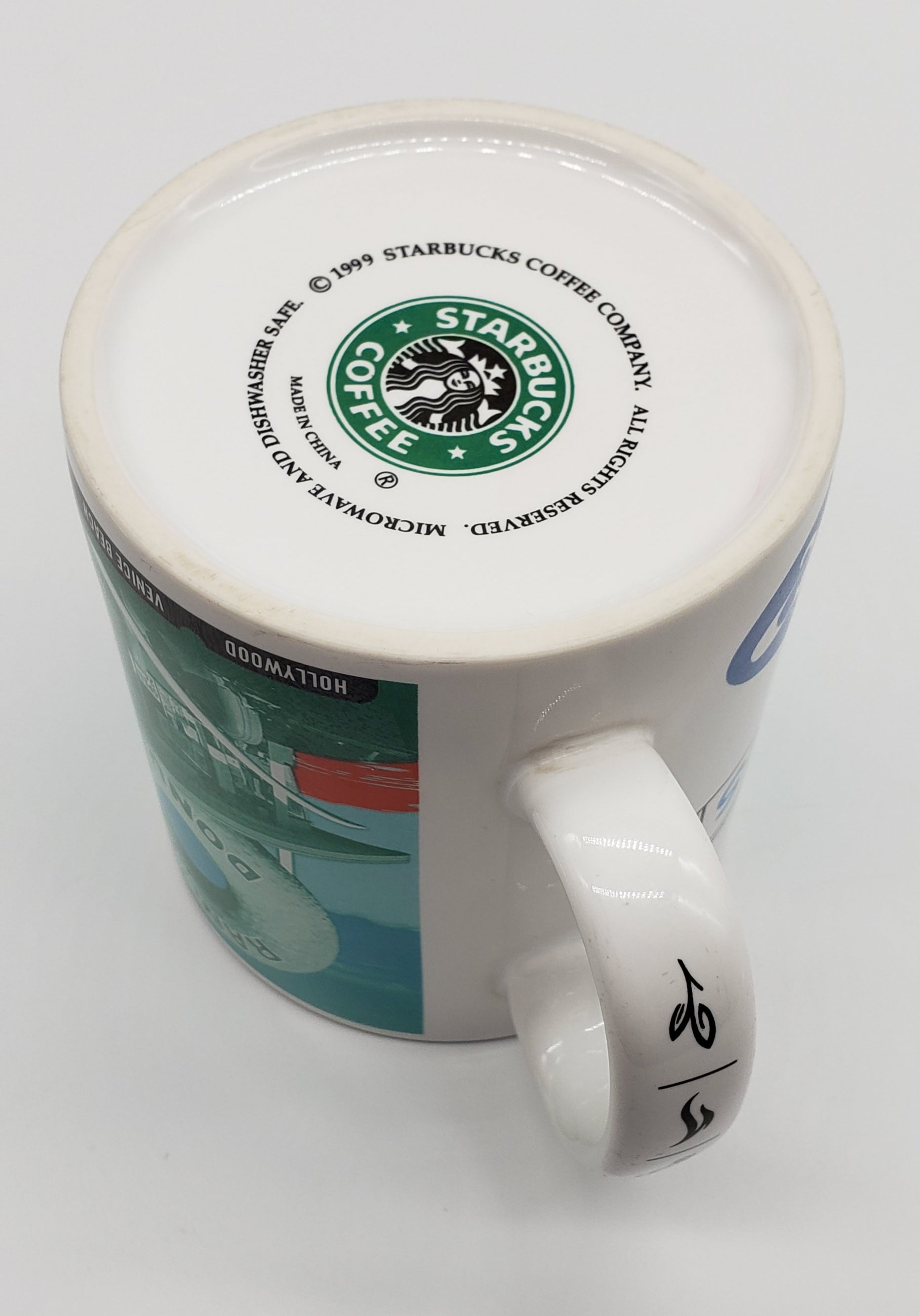 Los Angeles Starbucks Mug / 1999 / Randy's Donuts / Coffee Tea Home Office Decor. Some utensil marks and scratching present.