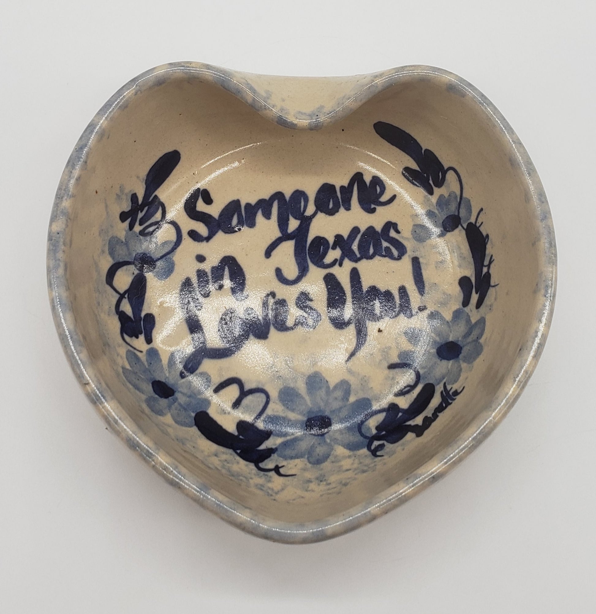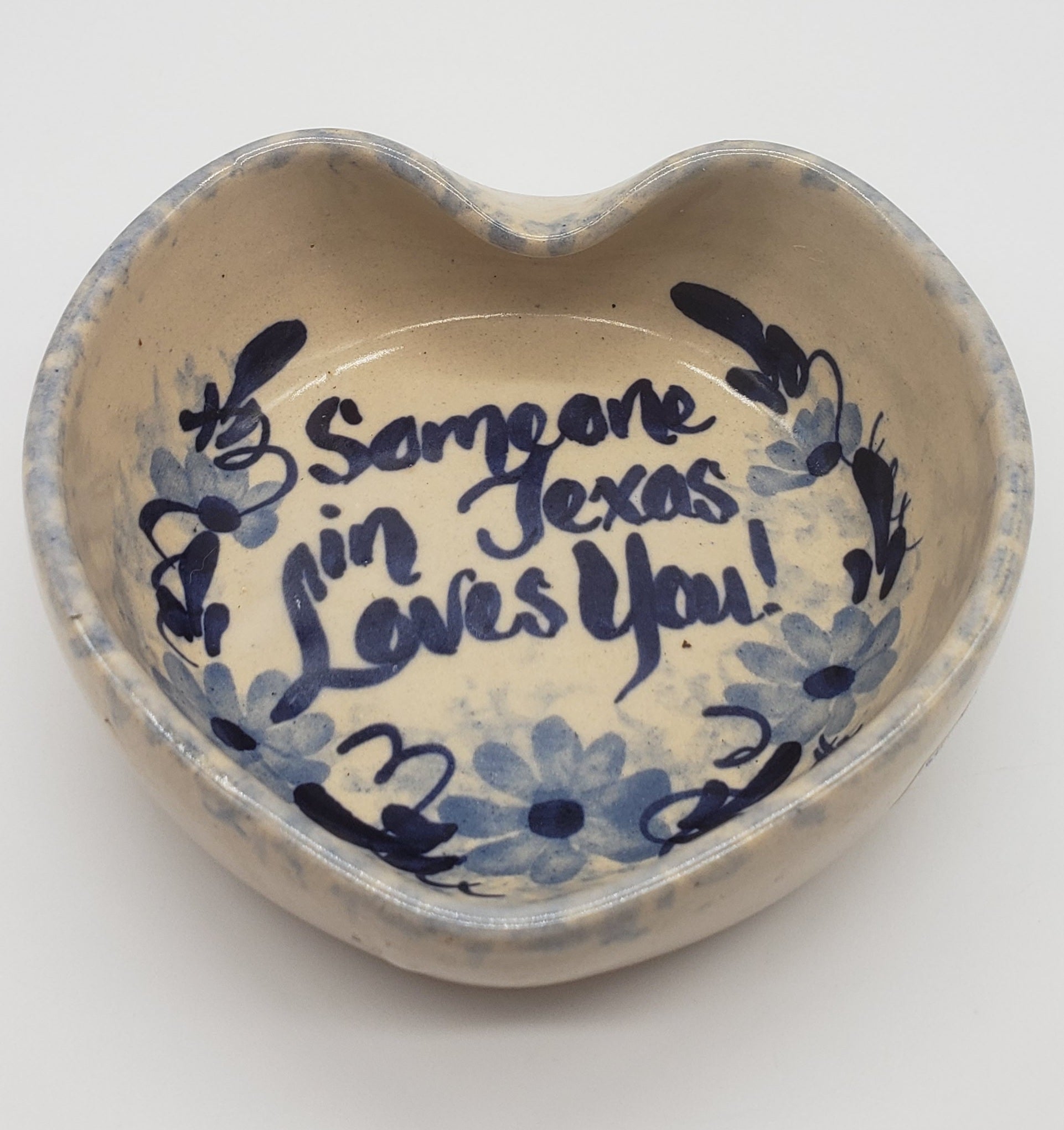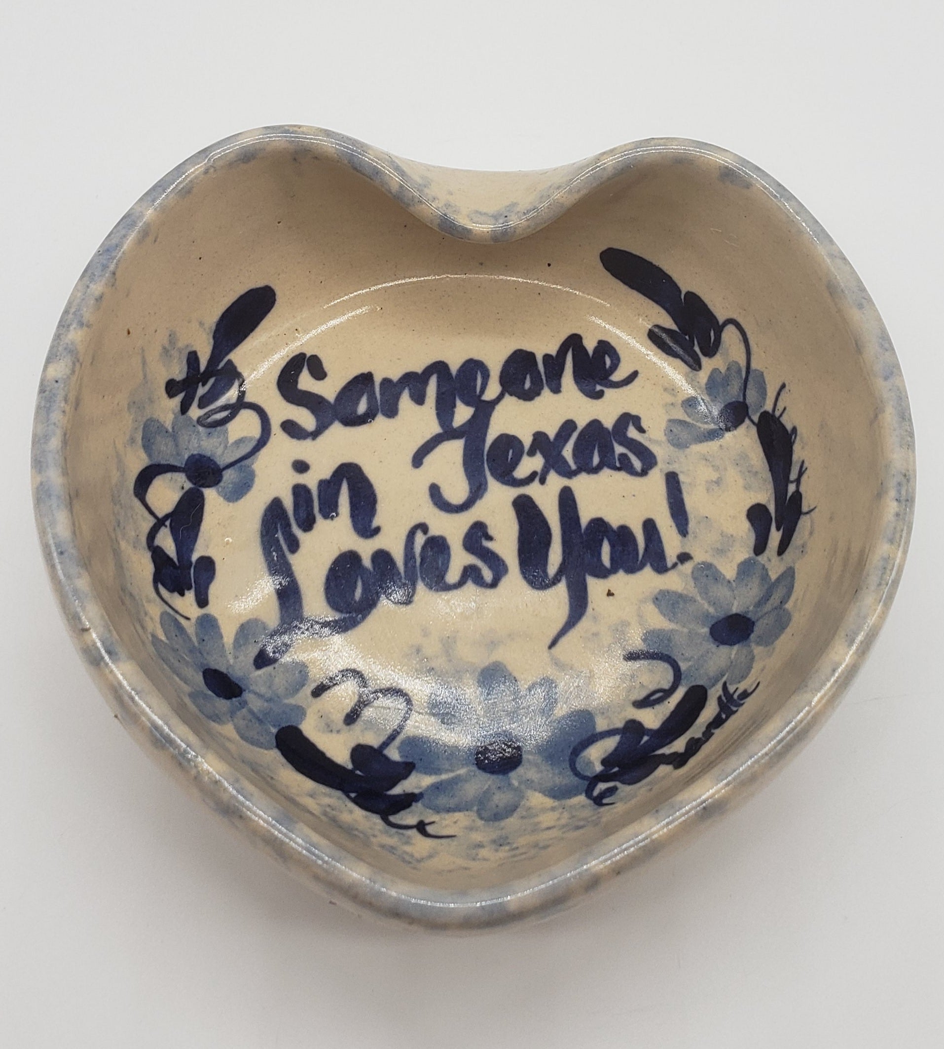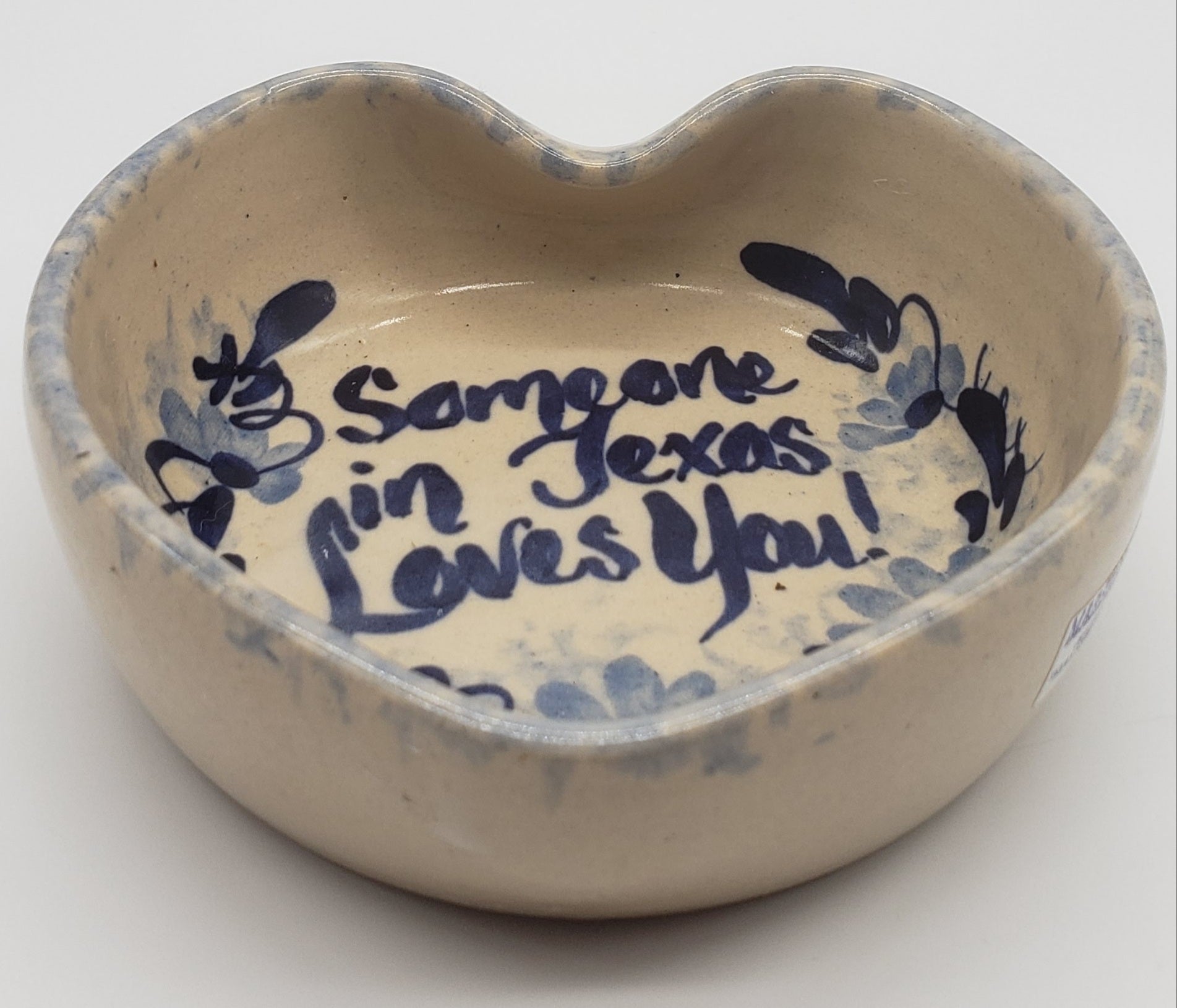 Marshall Pottery Heart Shaped Bowl Bluebonnets Candy Dish Trinkets Keys