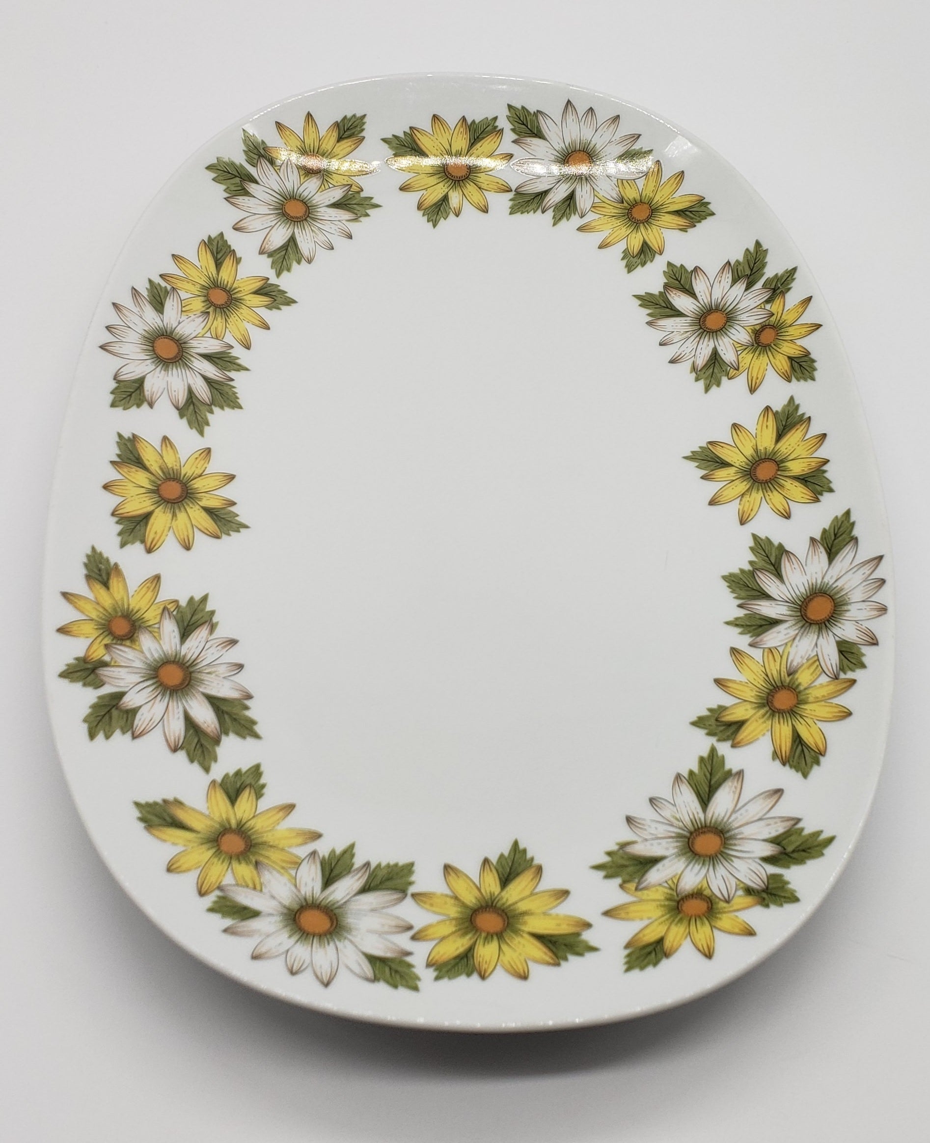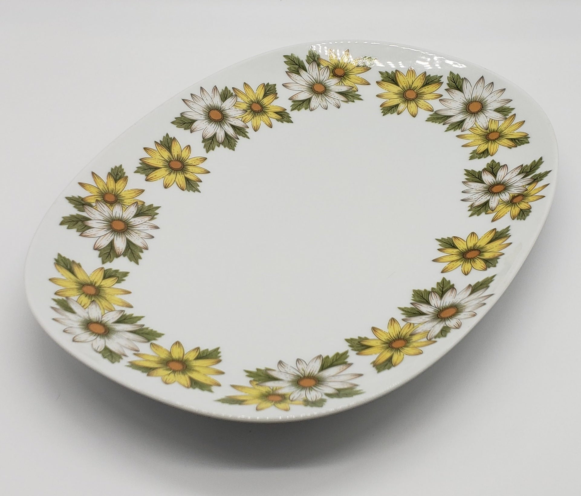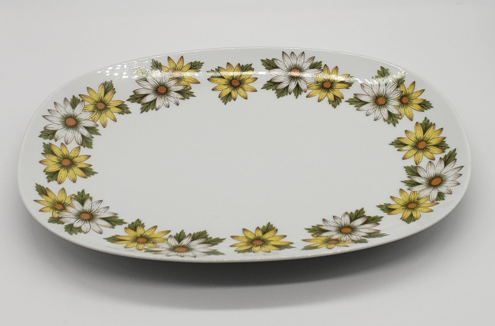 Noritake "Marguerite" Serving Platter, Cook'n Serve. Retro Dinnerware, Daisy Dishes, 1970s china plates.