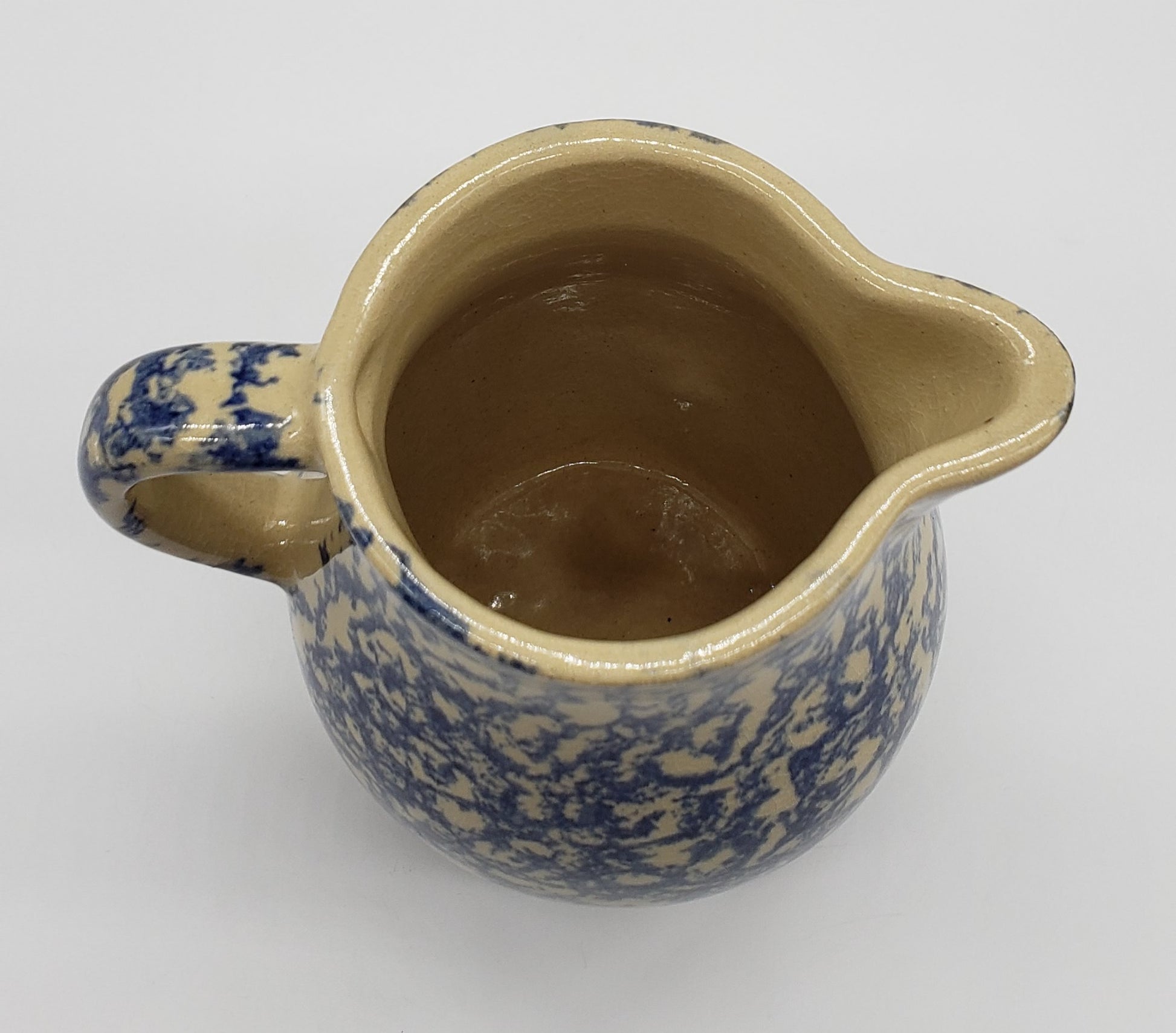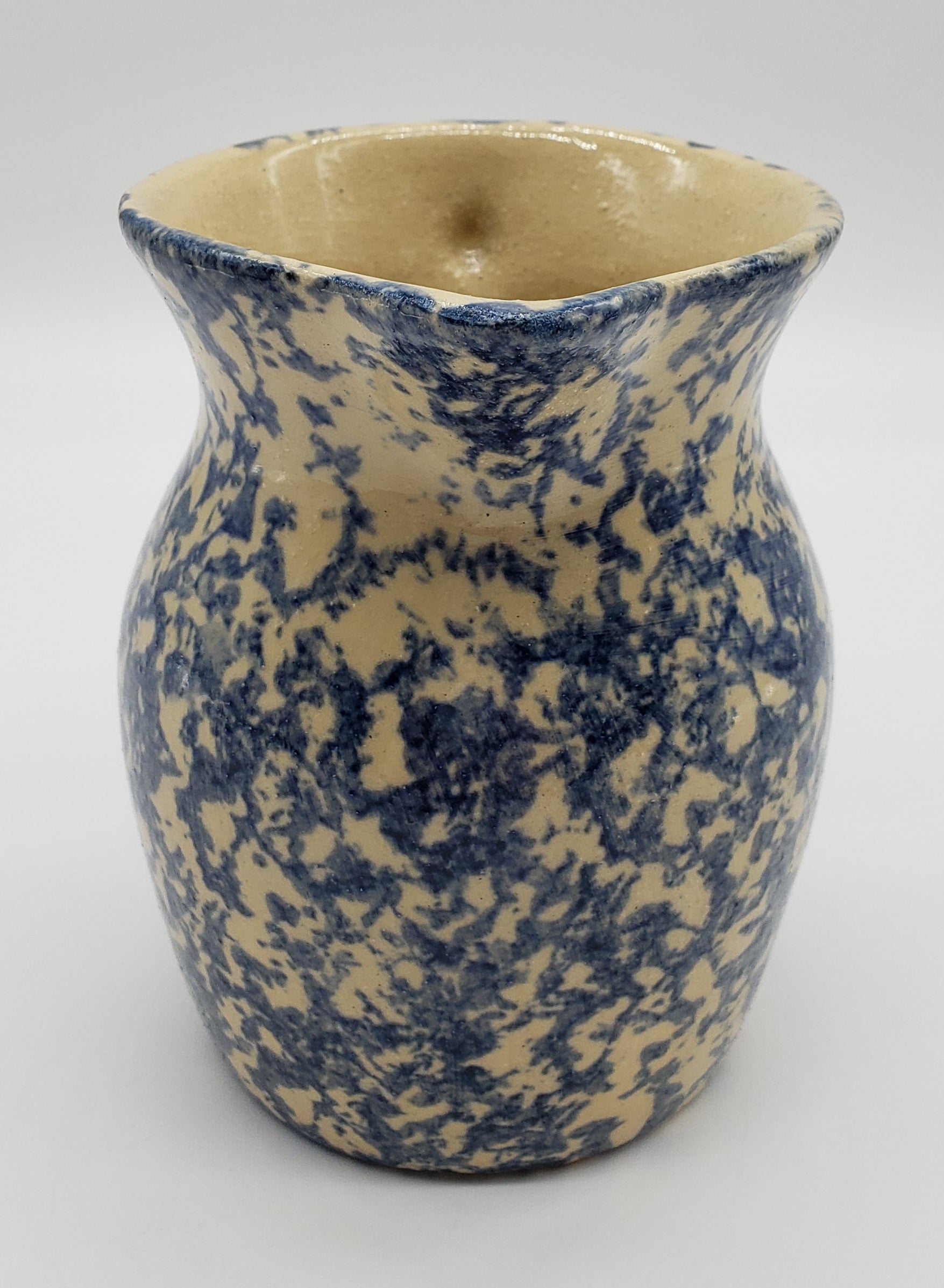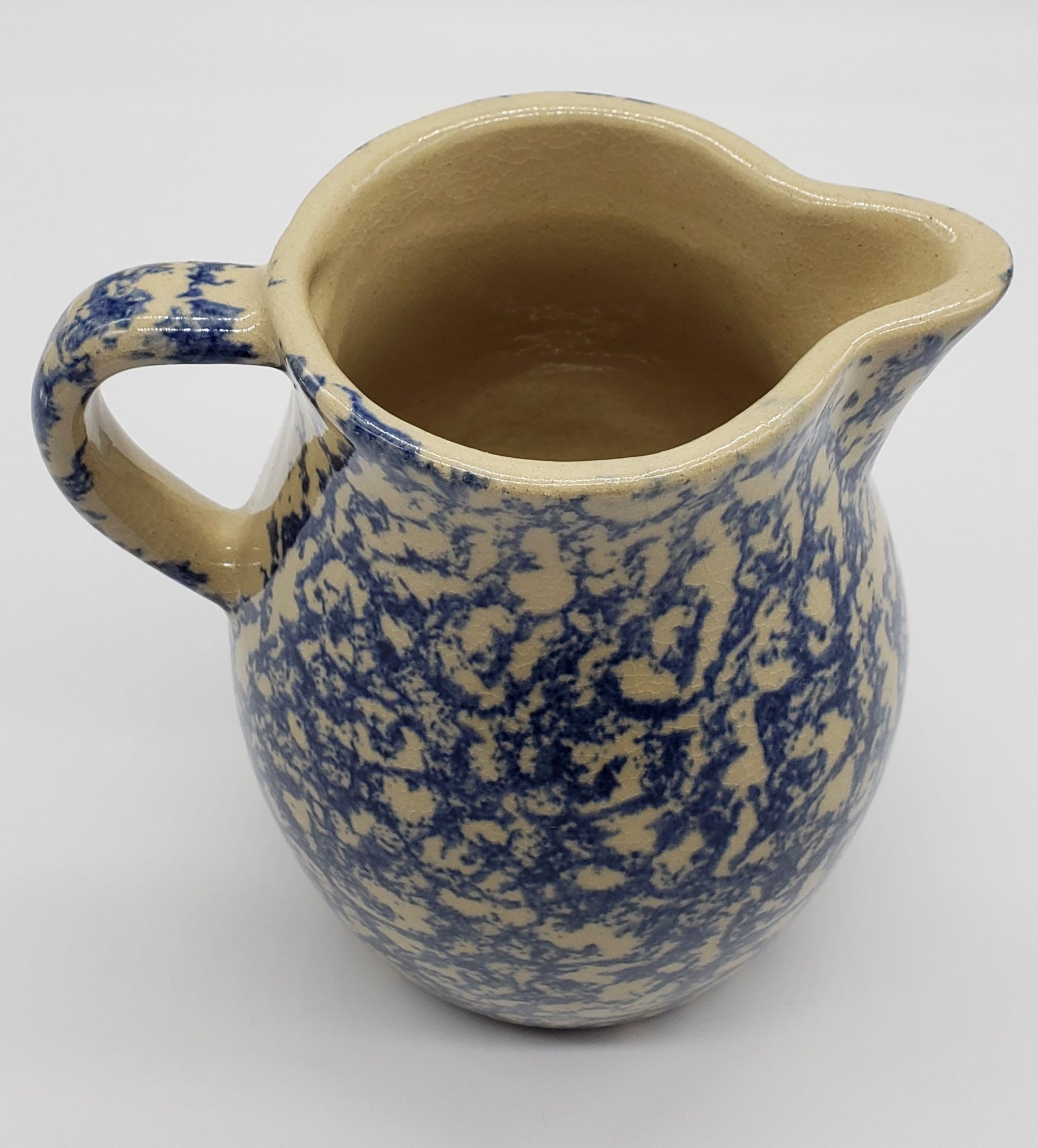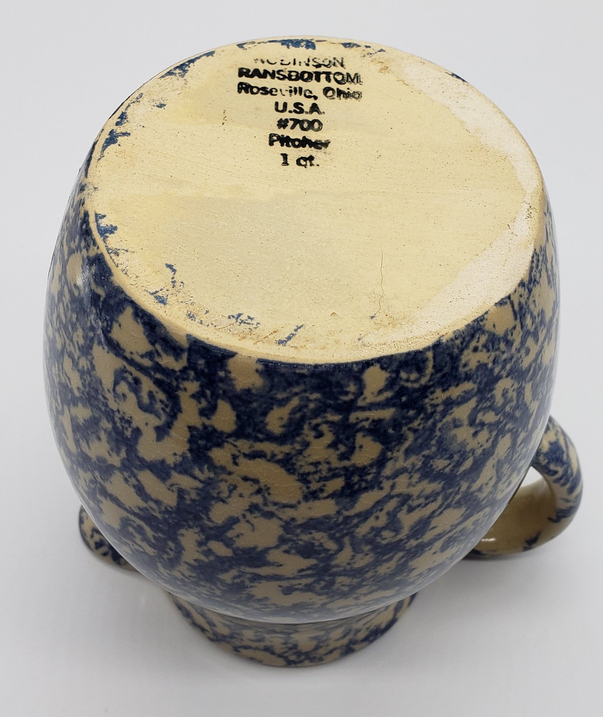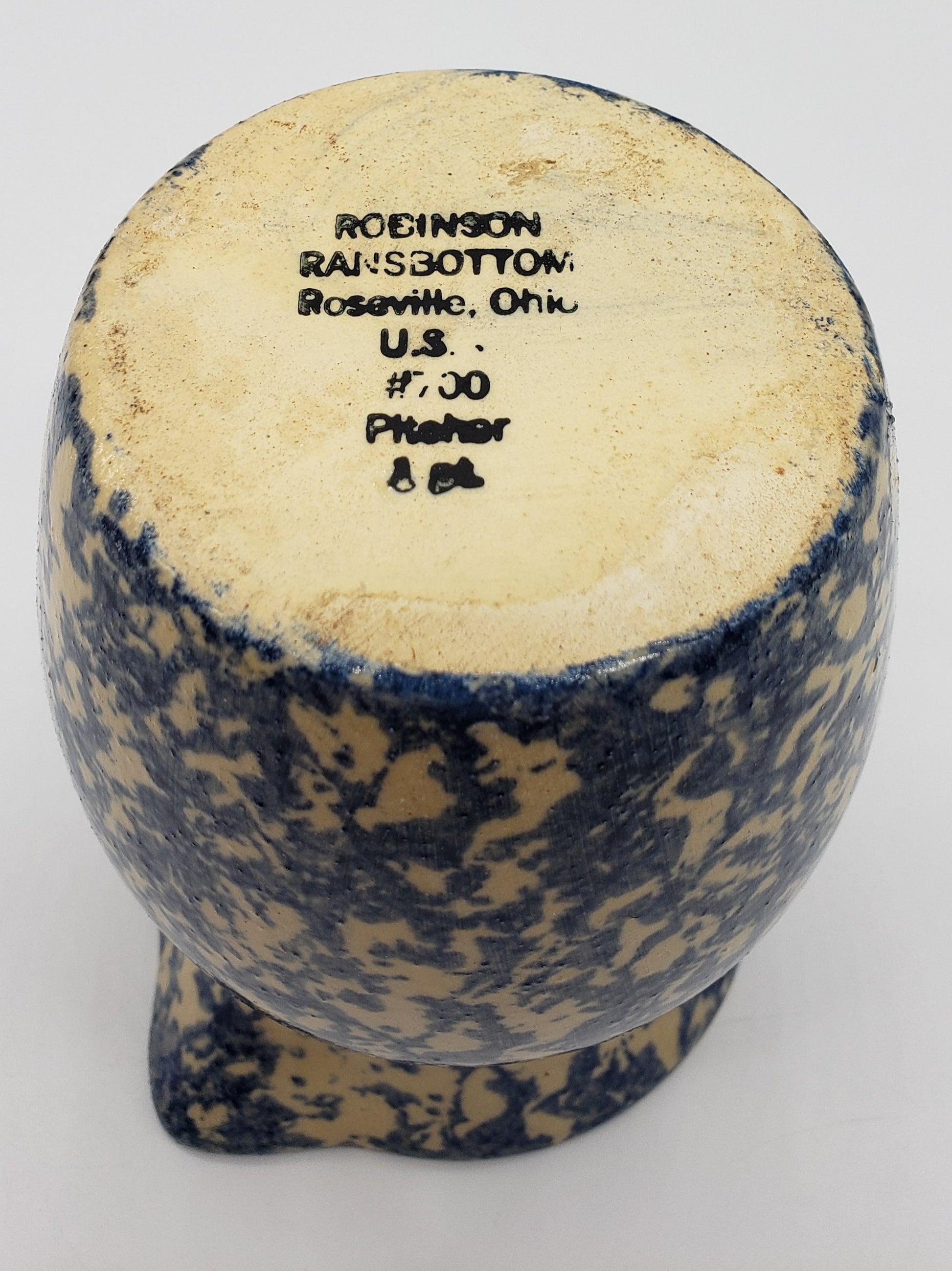 Robinson Ransbottom Spongeware Pitcher, Pint, Roseville Ohio .