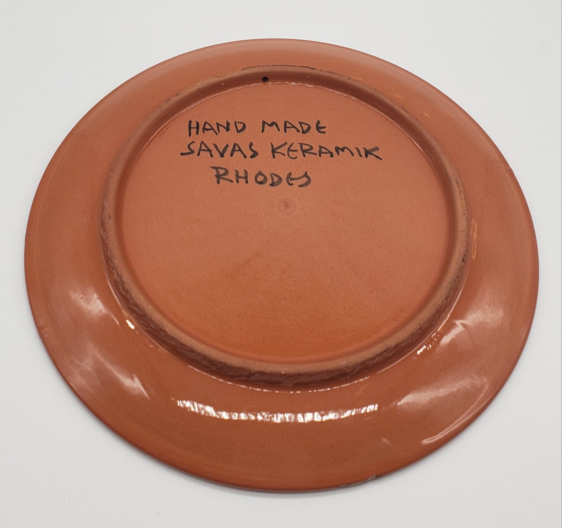 Savas Rhodes Greece Small Terracotta Decorative Plate Handcrafted Signed