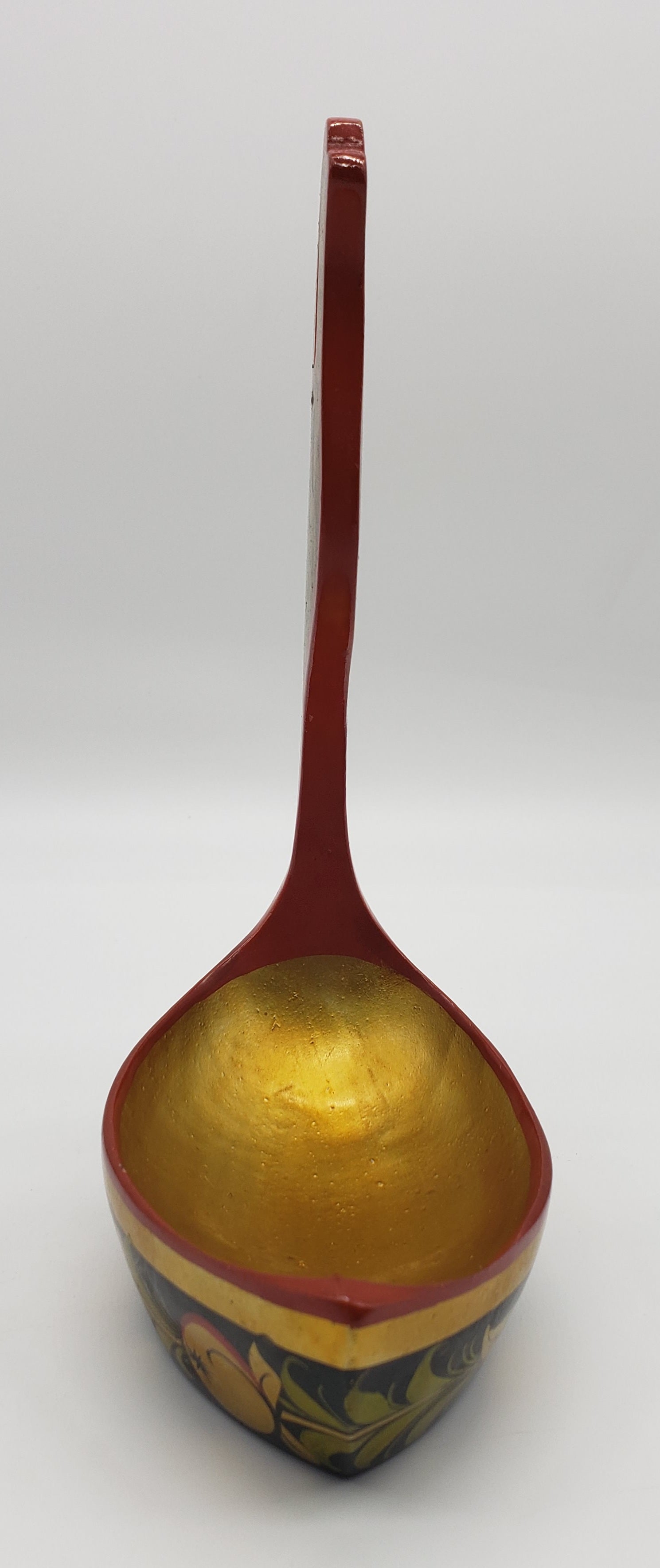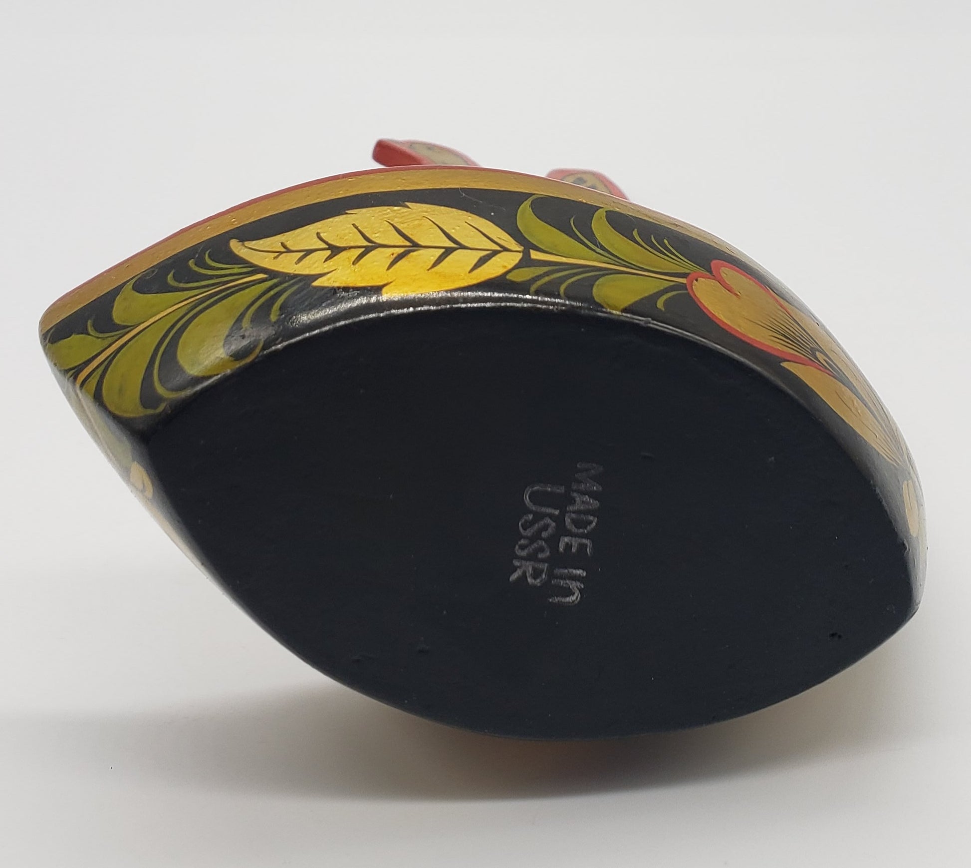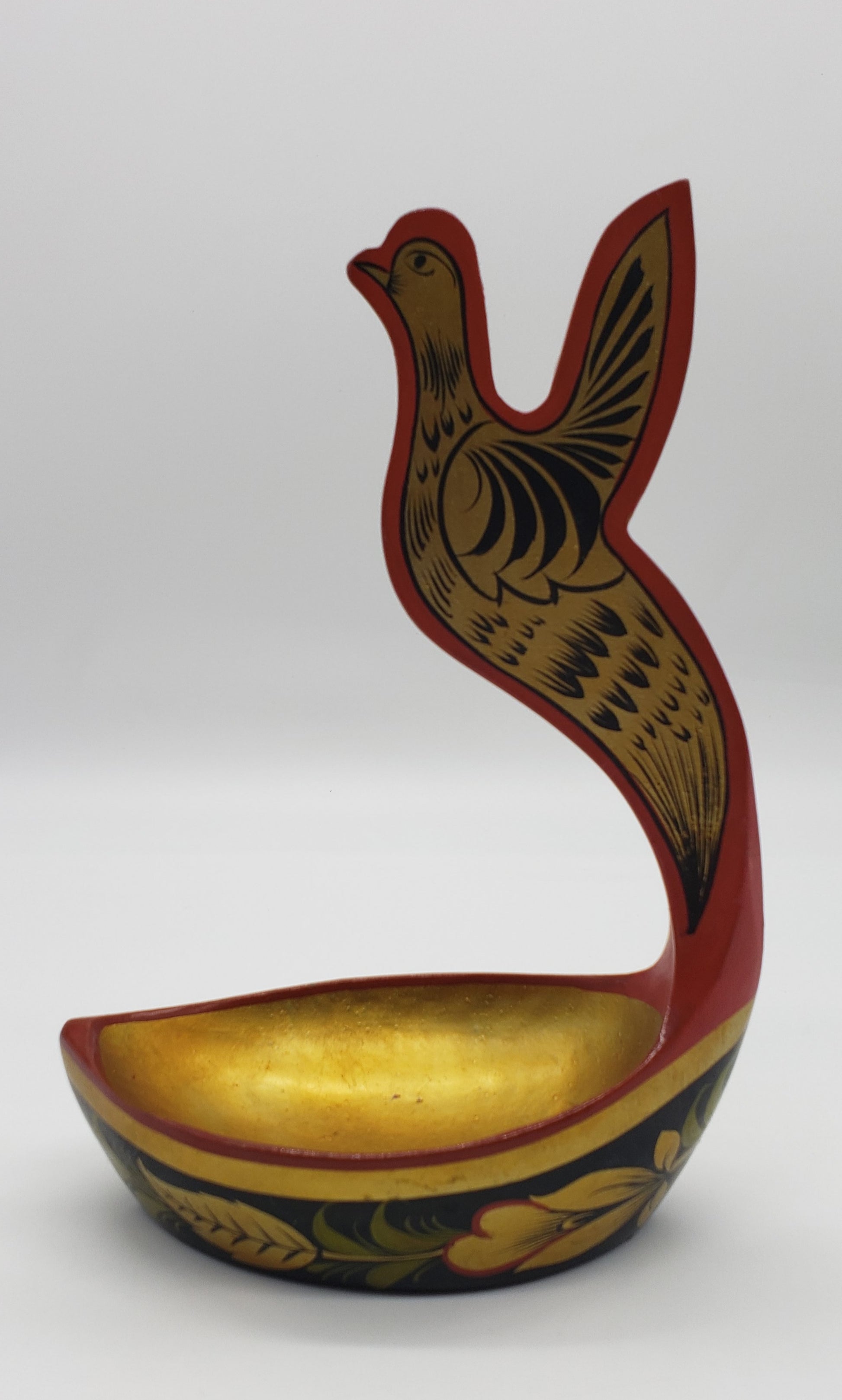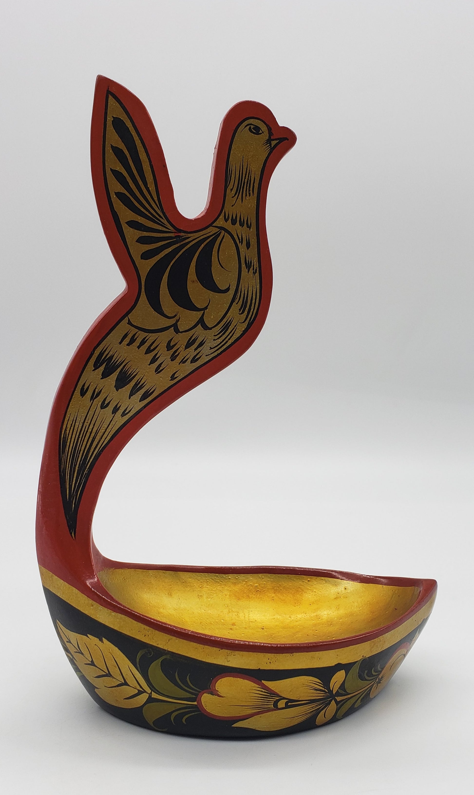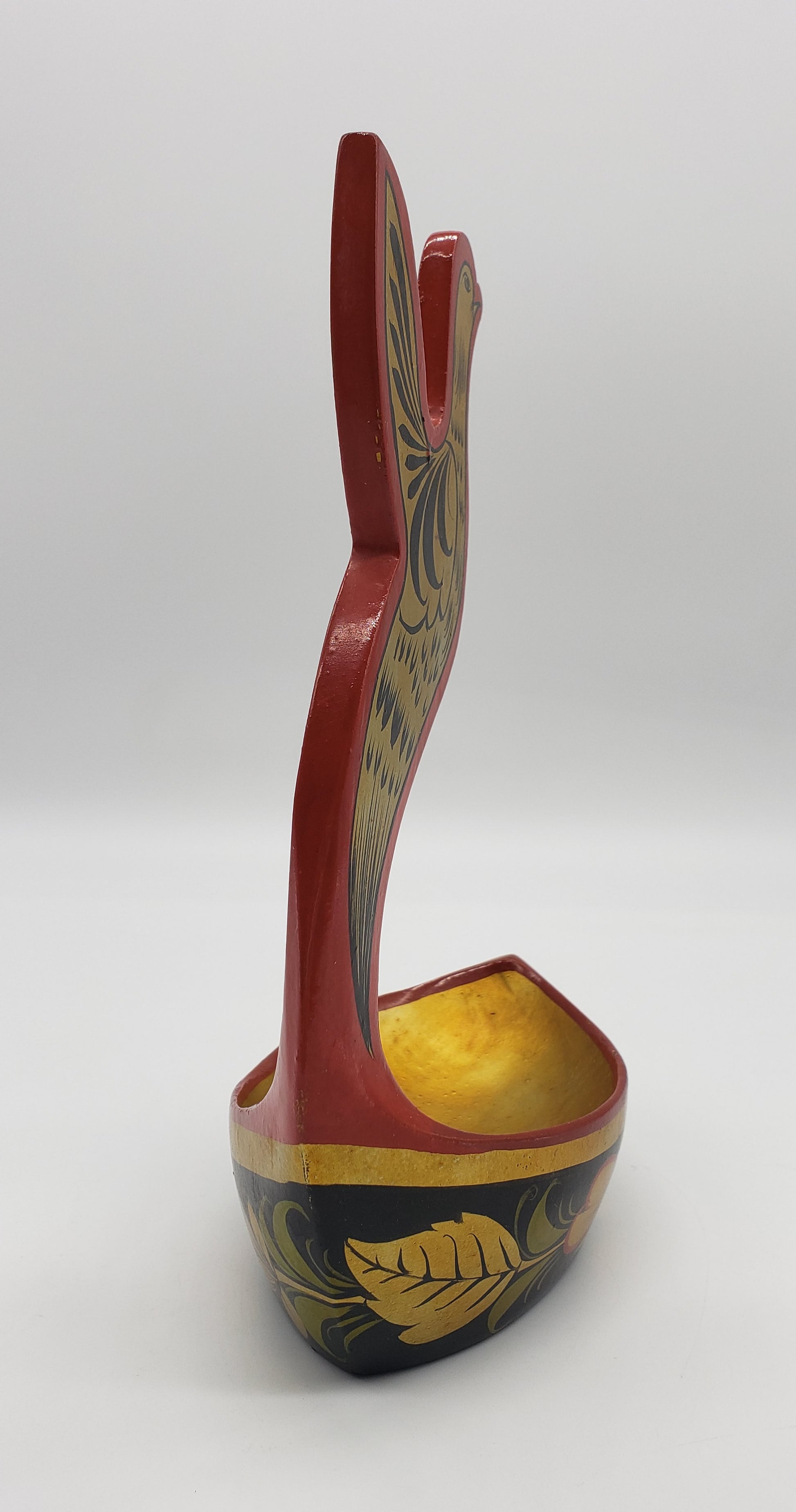Soviet/Russian Lacquered Kvosh in the Form of a Griffen Like Bird Gold on Red