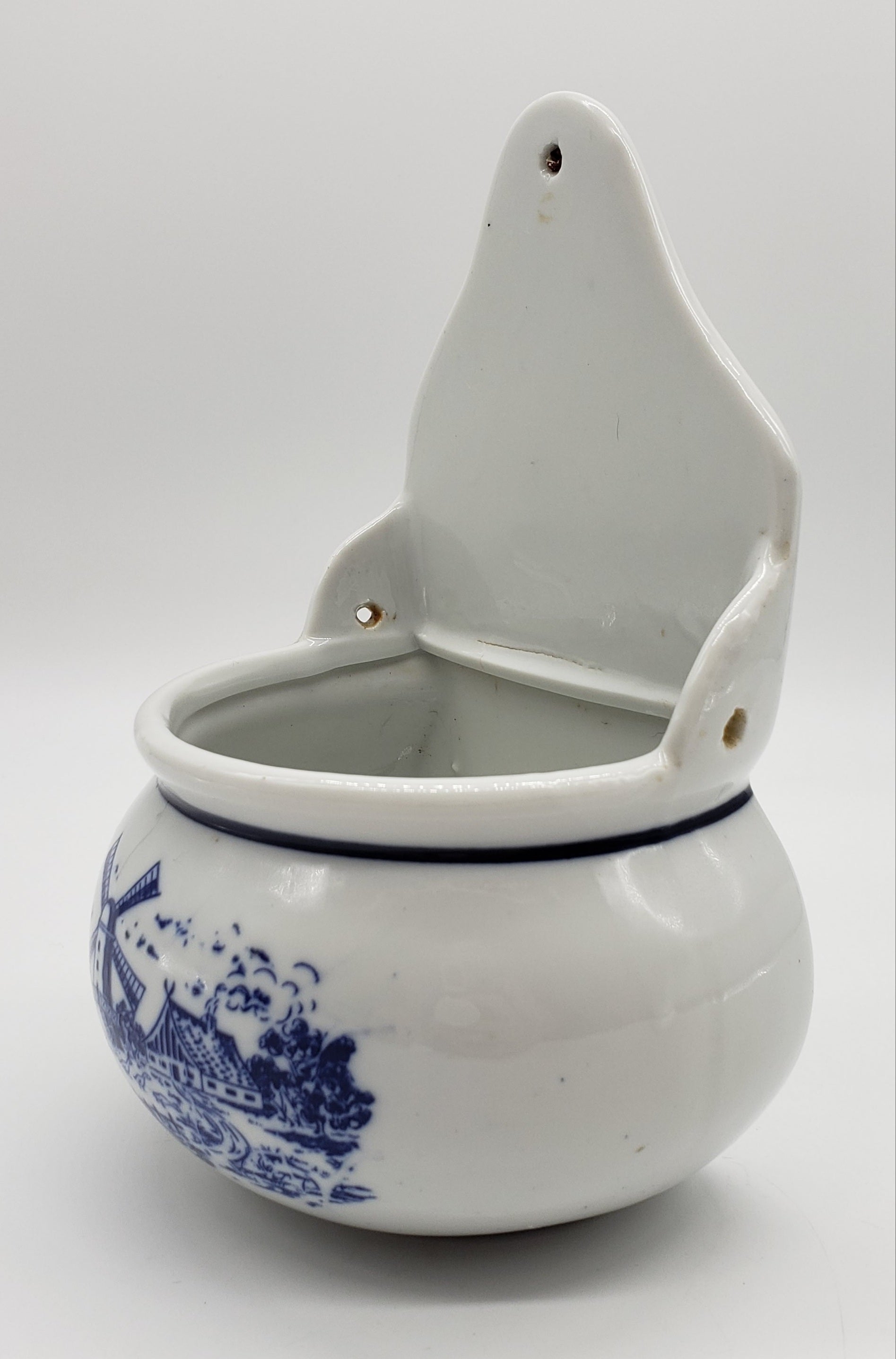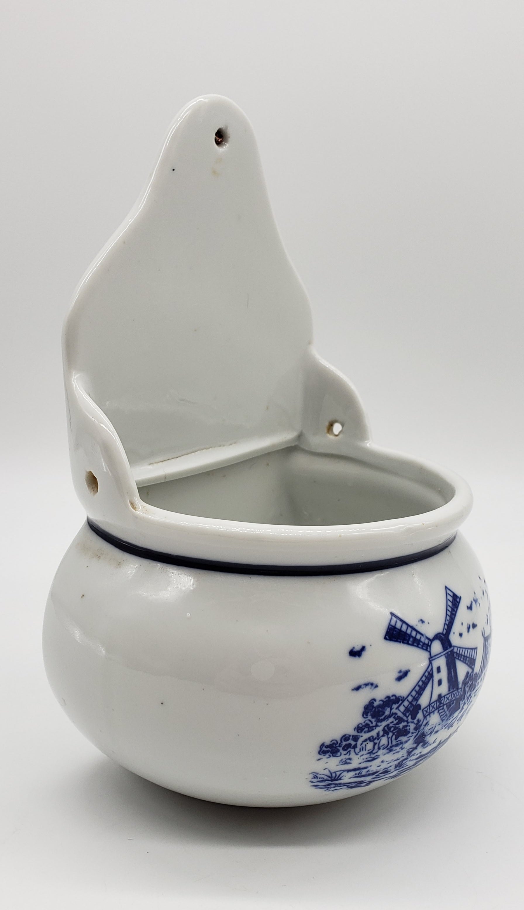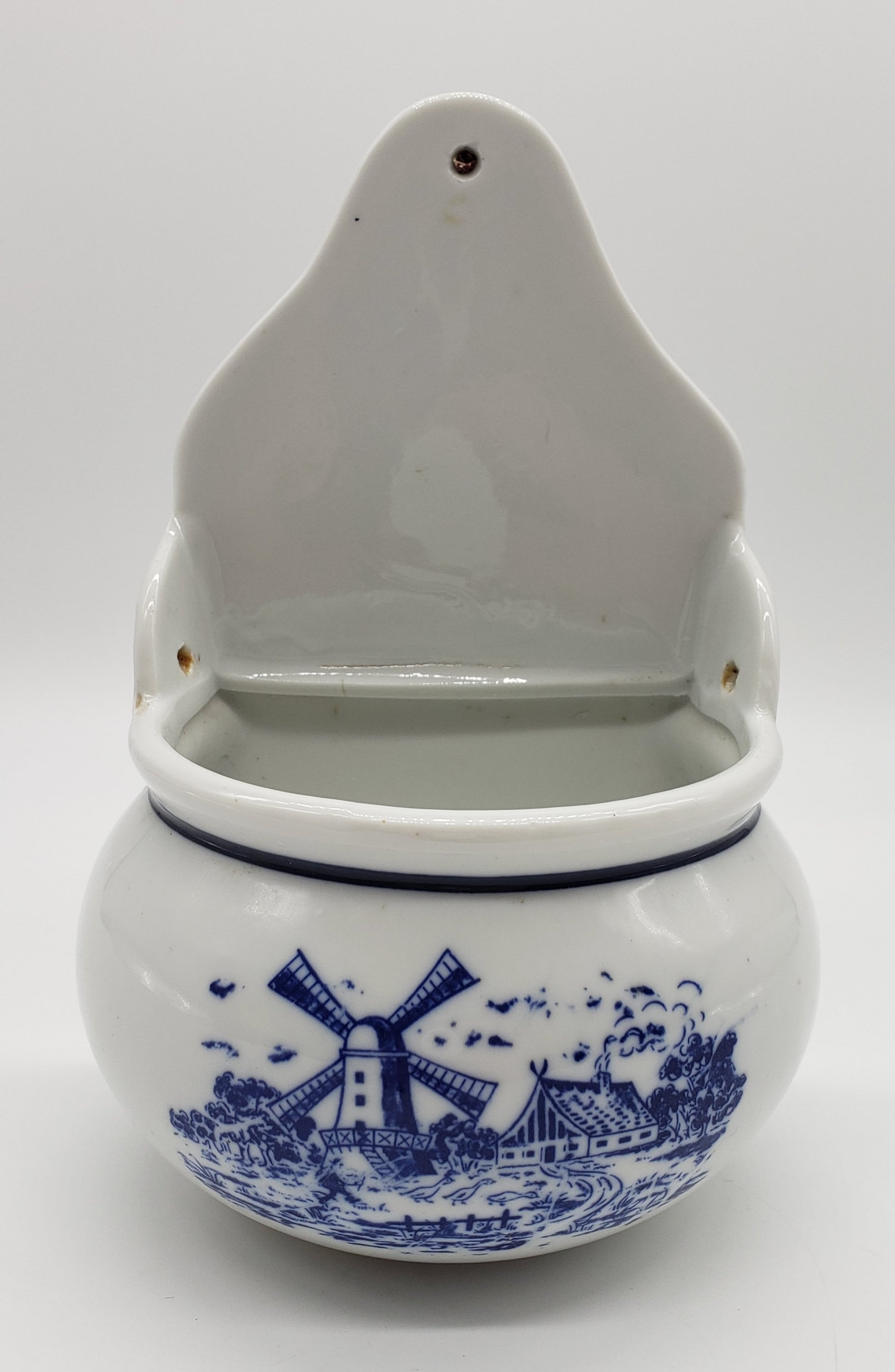 Vintage Teleflora salt cellar box without the lid. Has a beautiful blue Dutch Holland windmill design on the front.