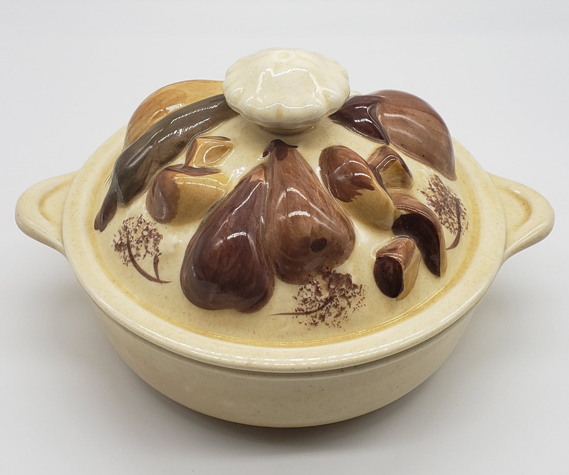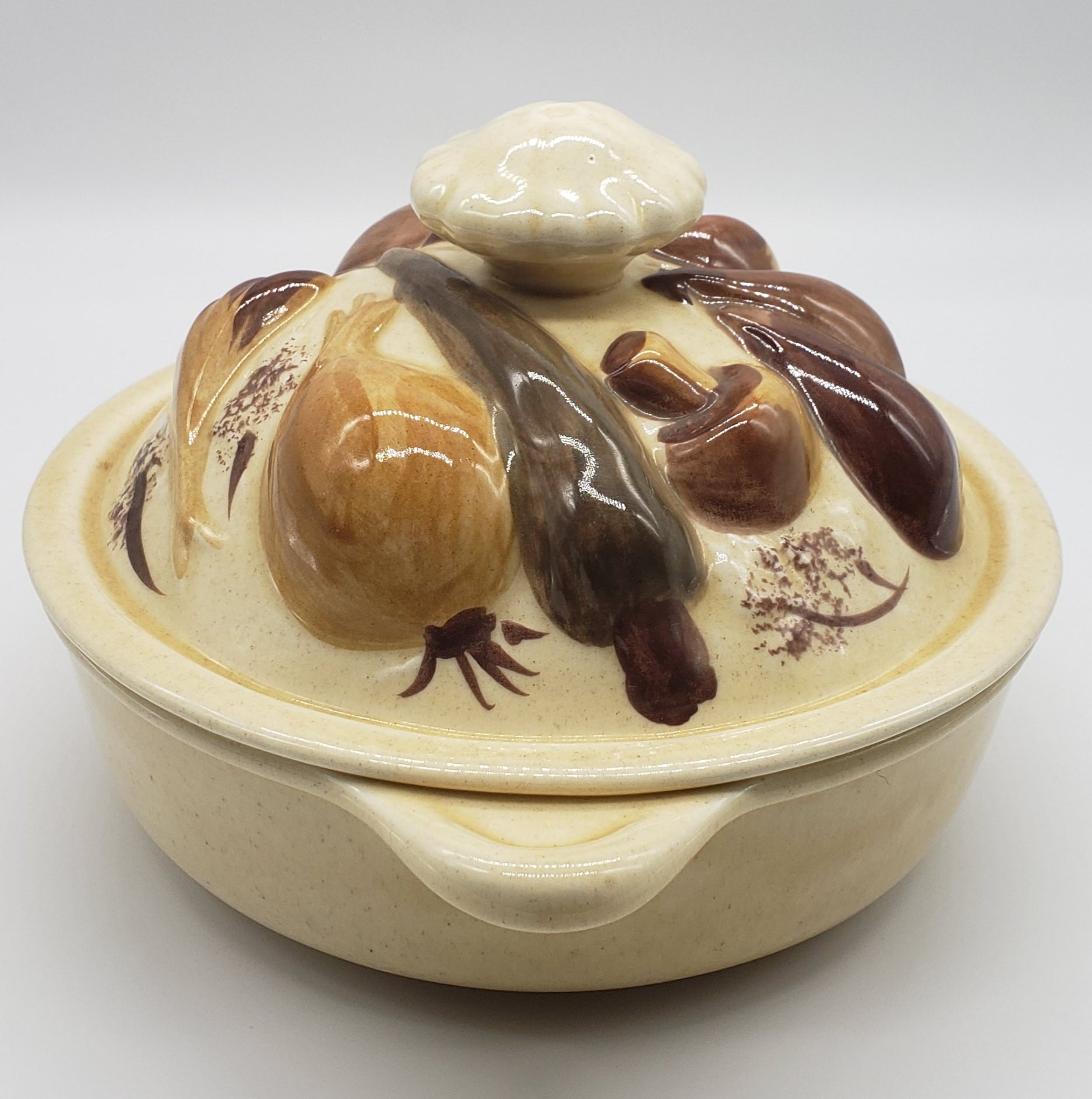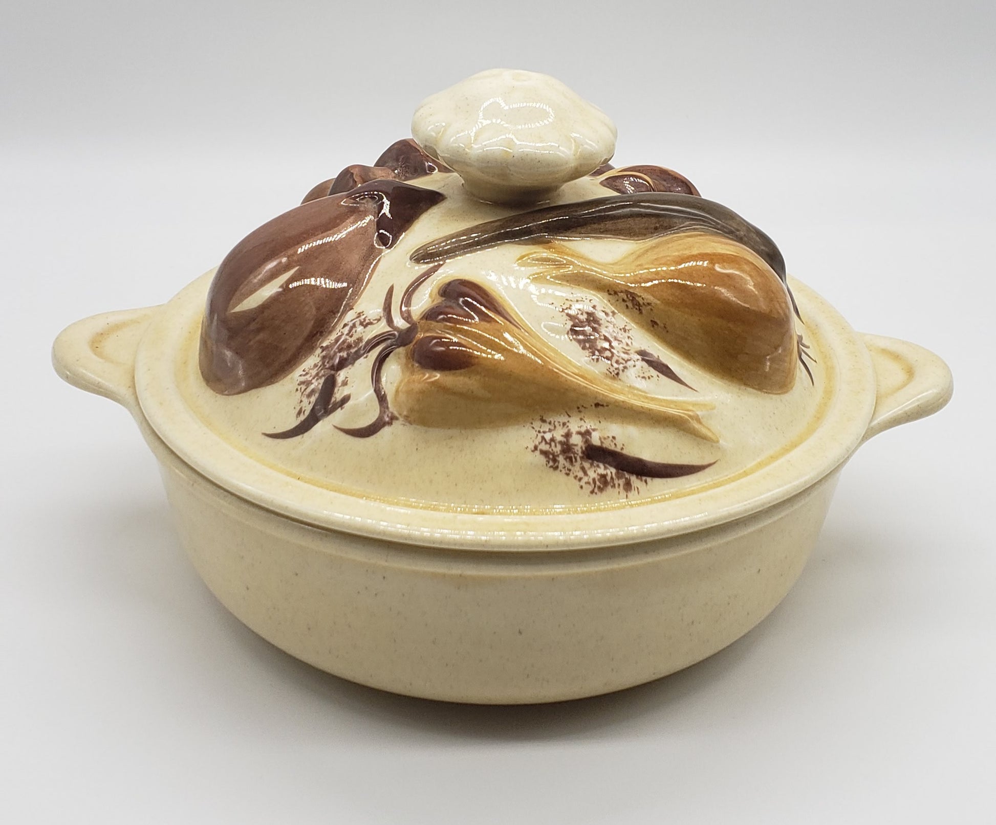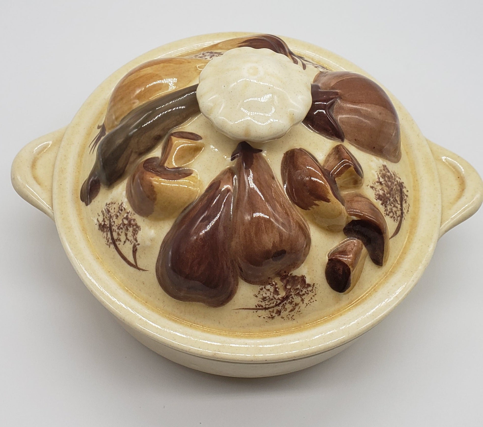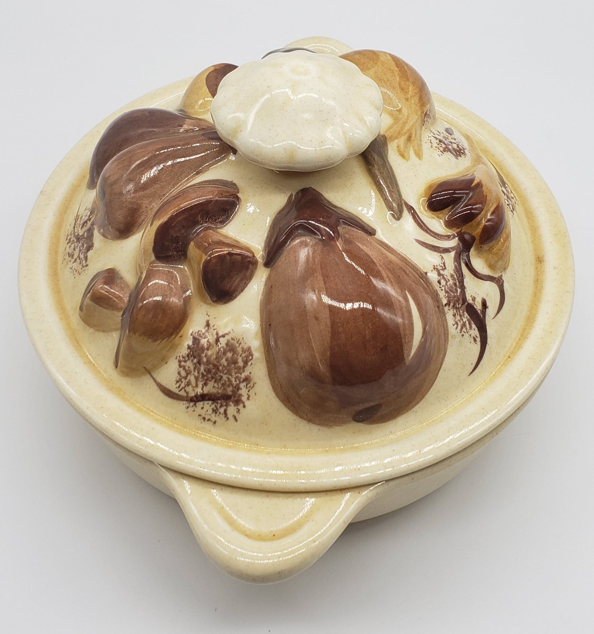 Vintage Ceramic Casserole Dish With 3-D Lid and Beautiful Glazed Finish.
