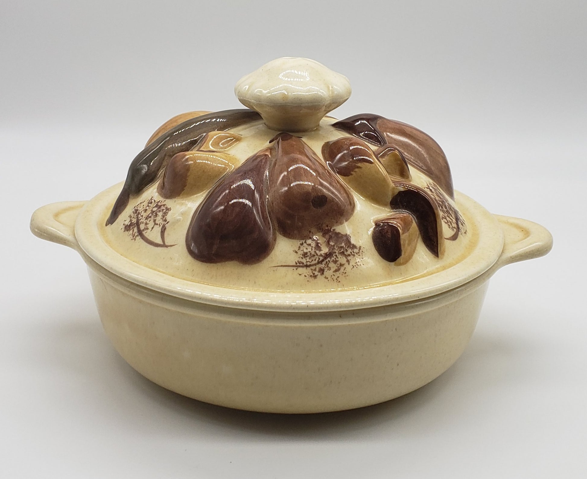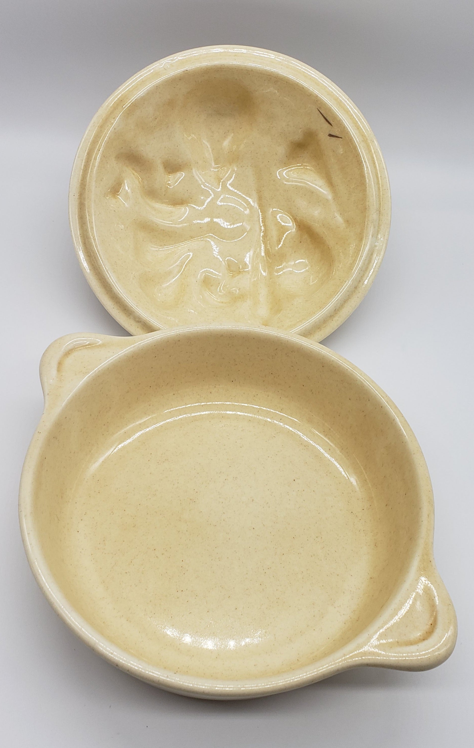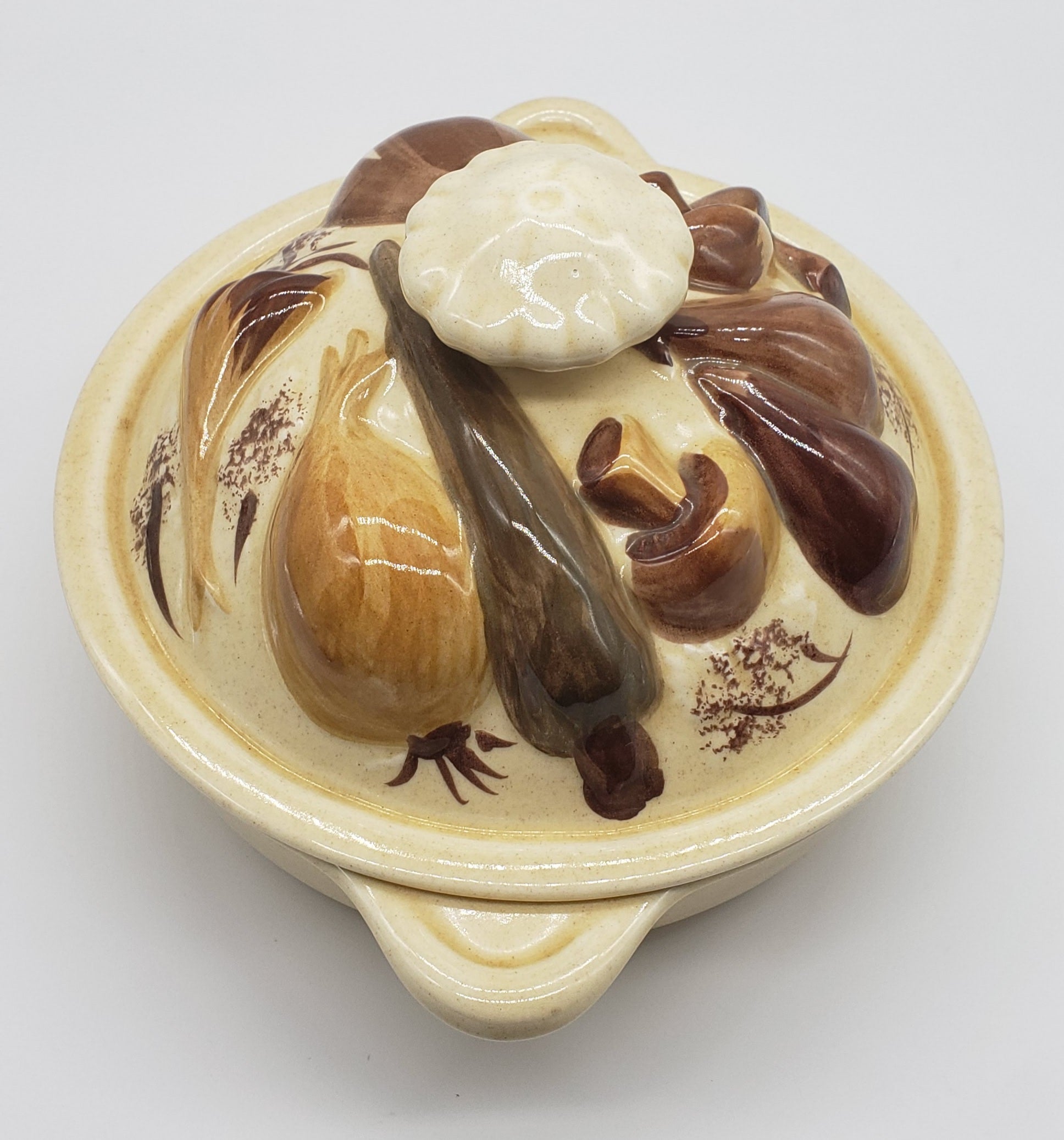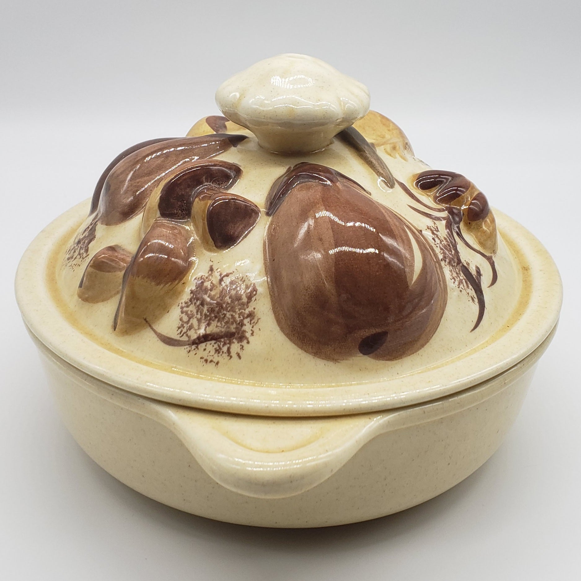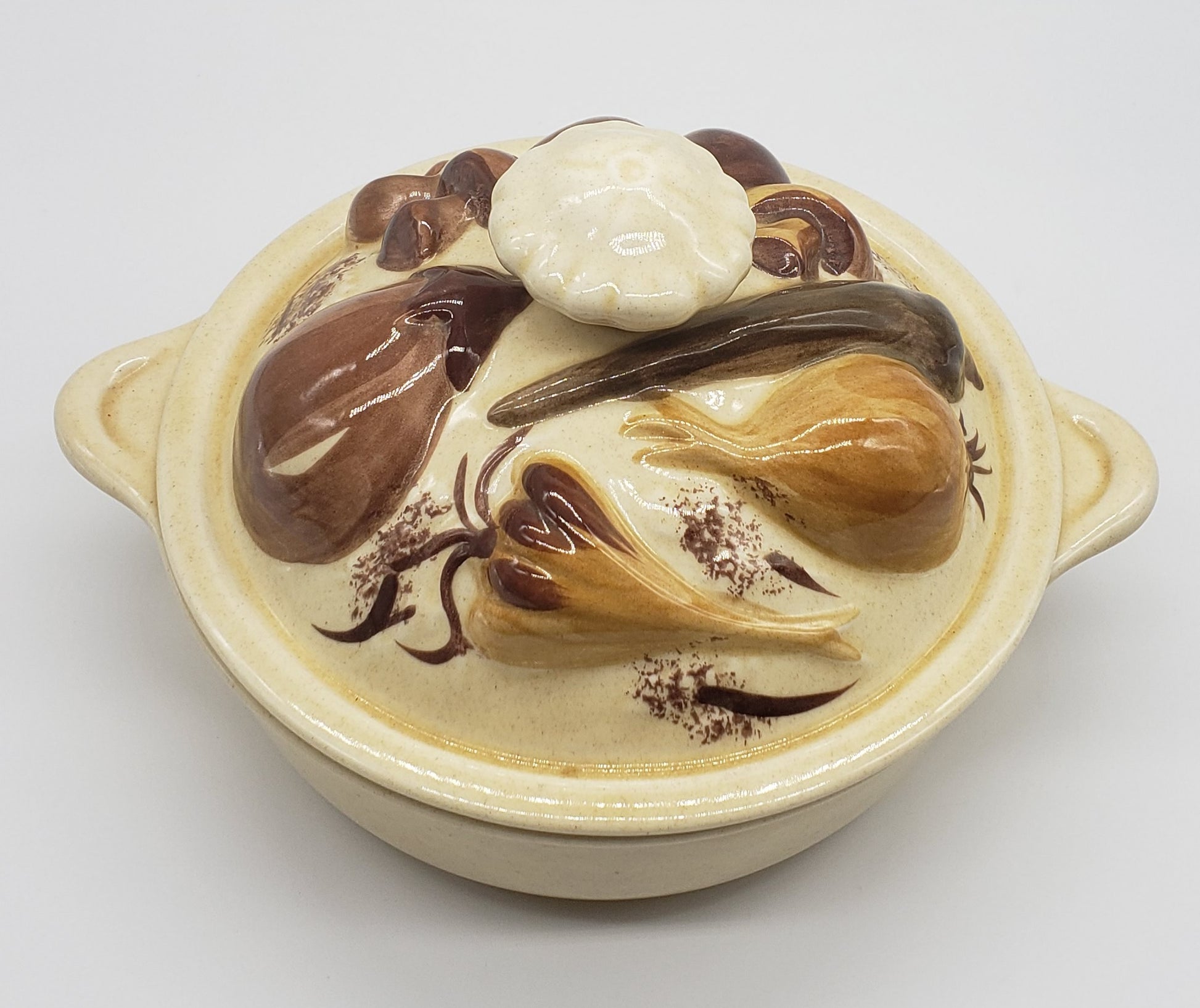Vintage Ceramic Casserole Dish With 3-D Lid and Beautiful Glazed Finish.