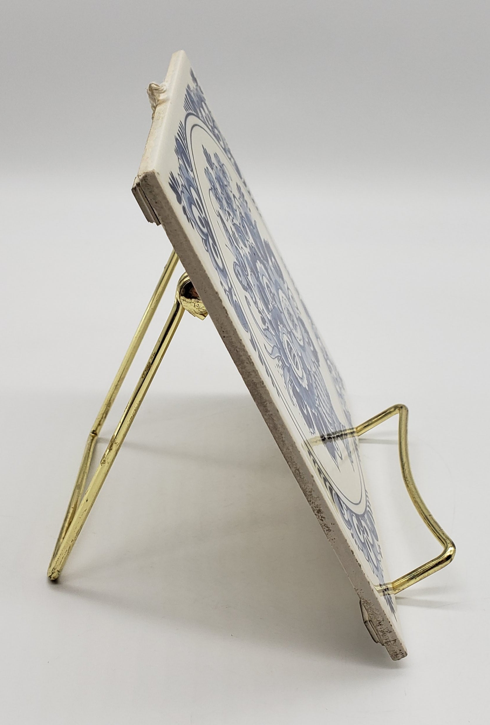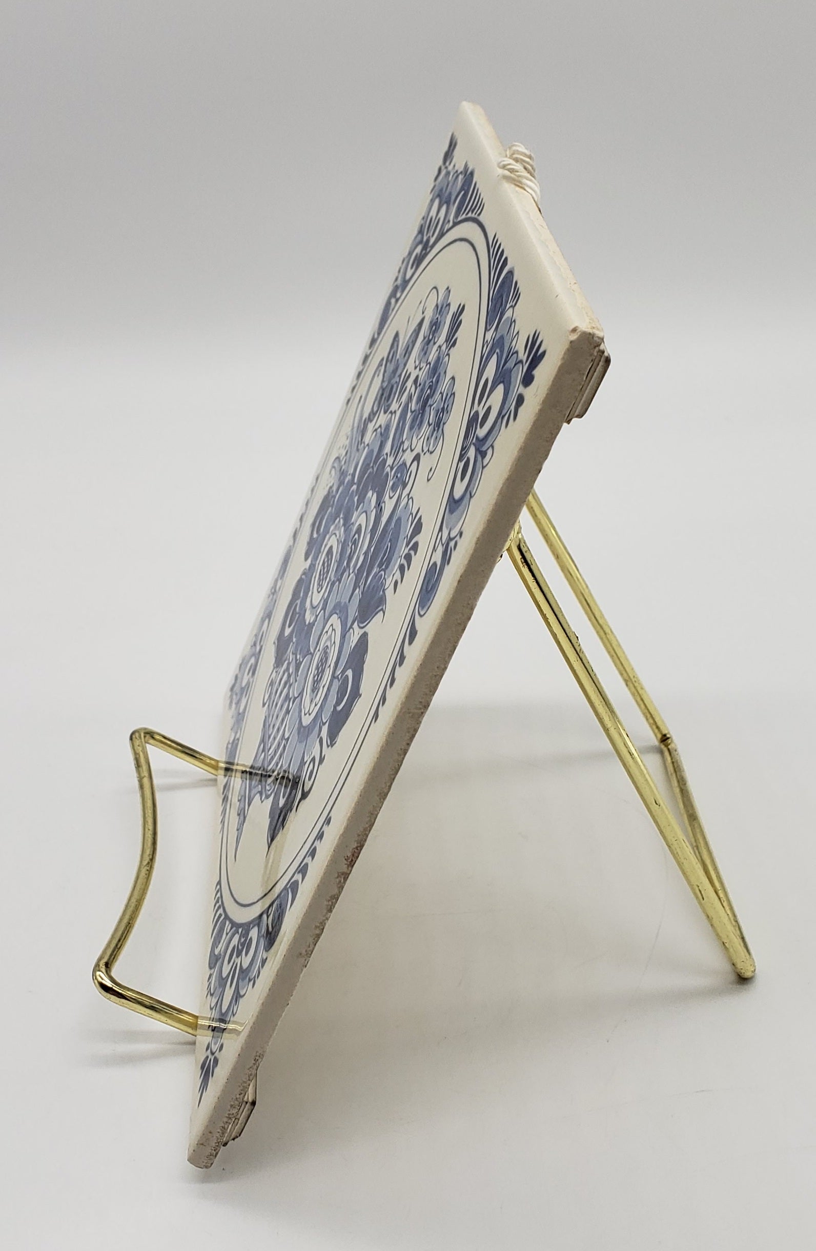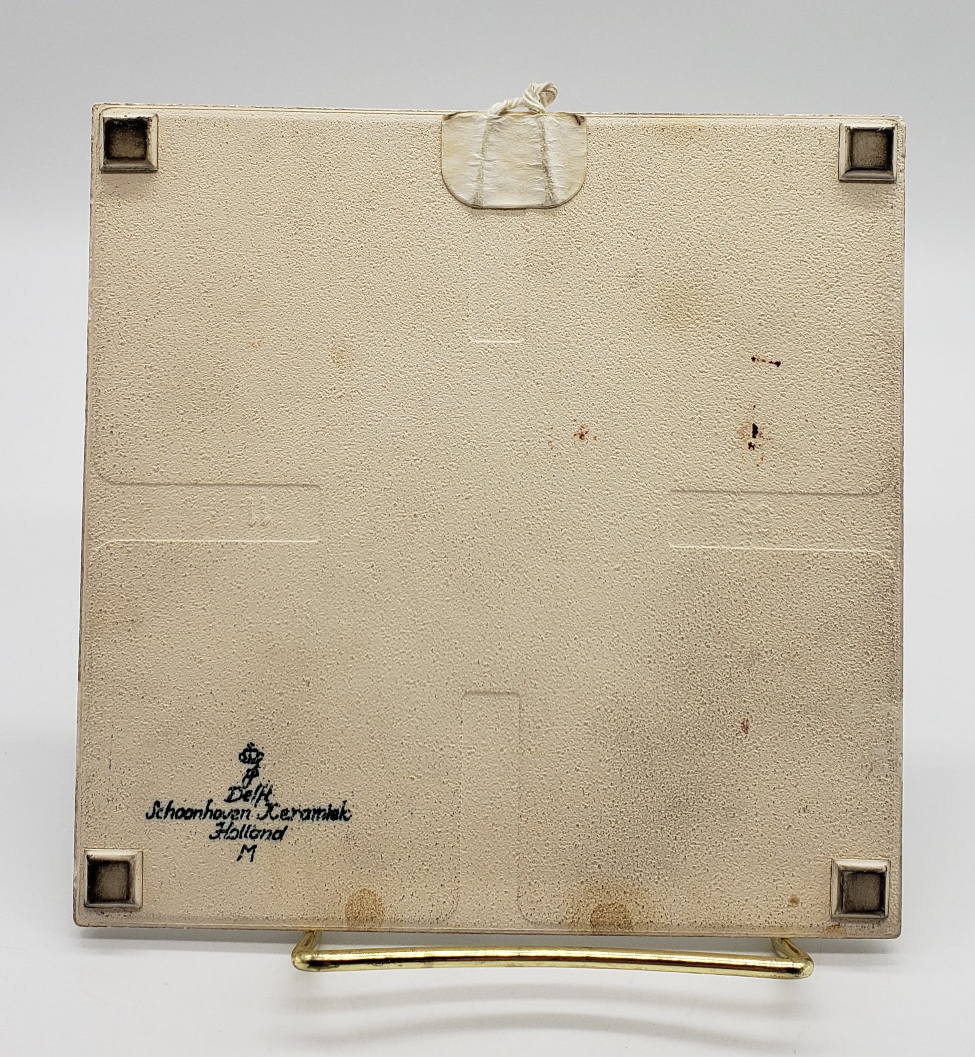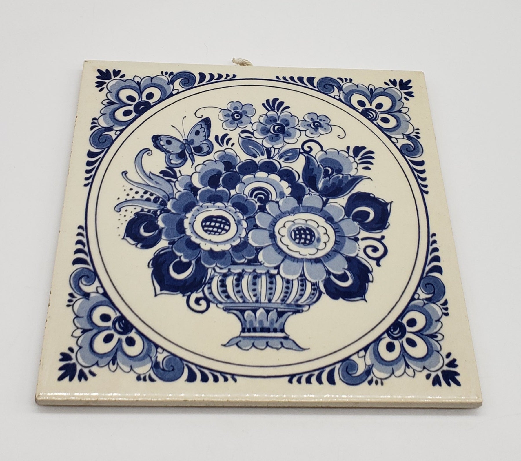 Vintage Delft Schoonhoven Keramiek Holland Blue and White Tile - Vase with Flowers