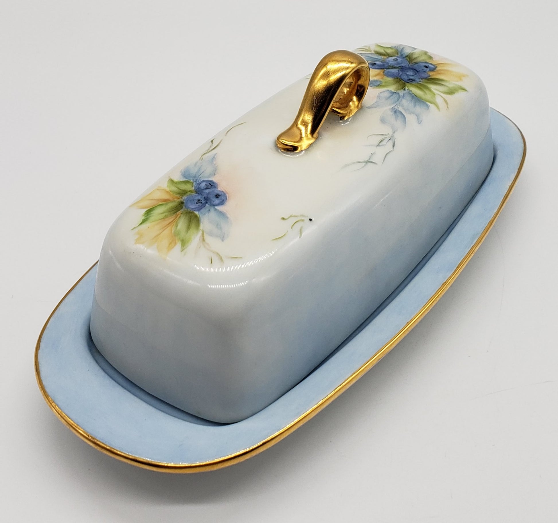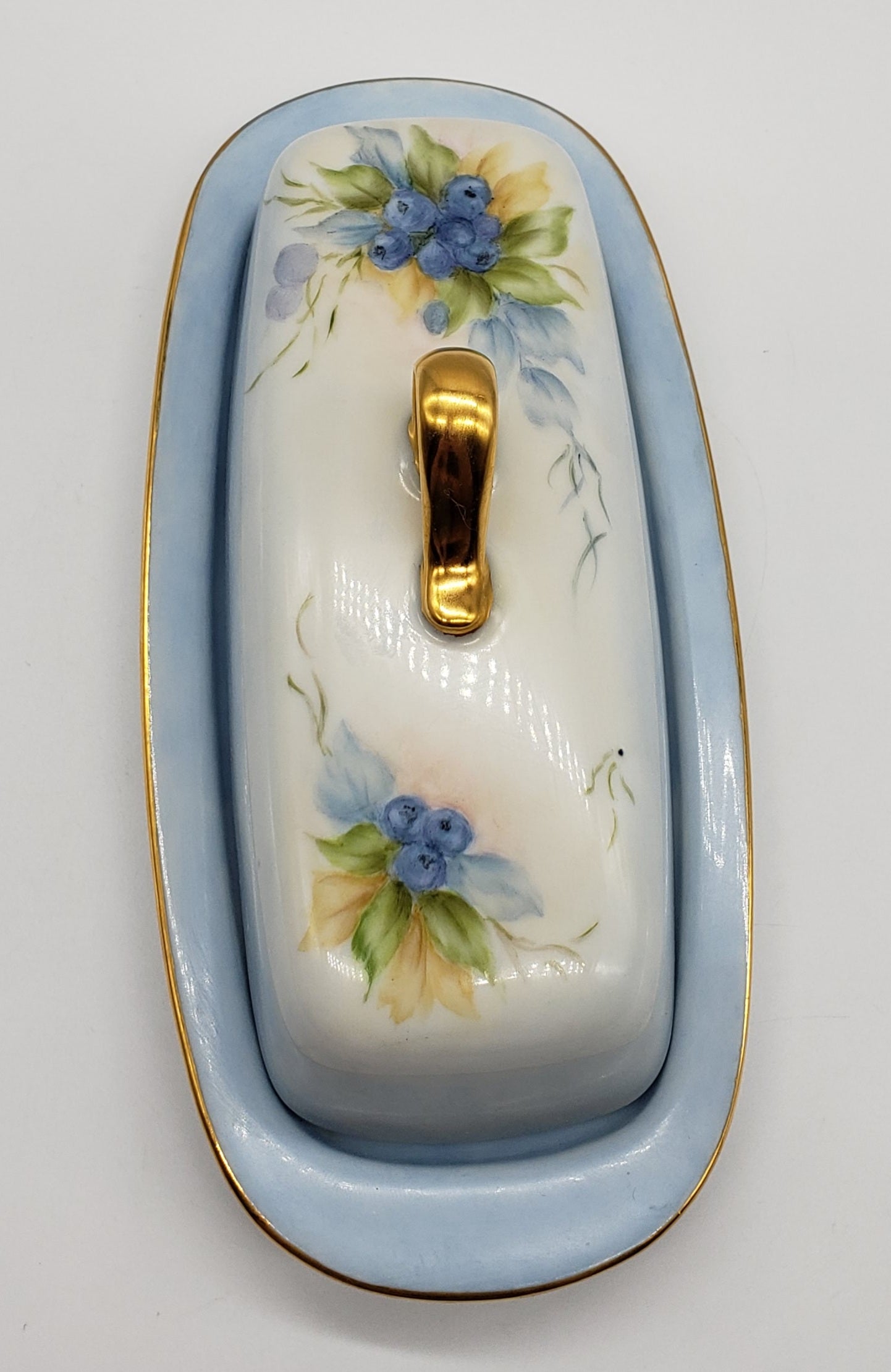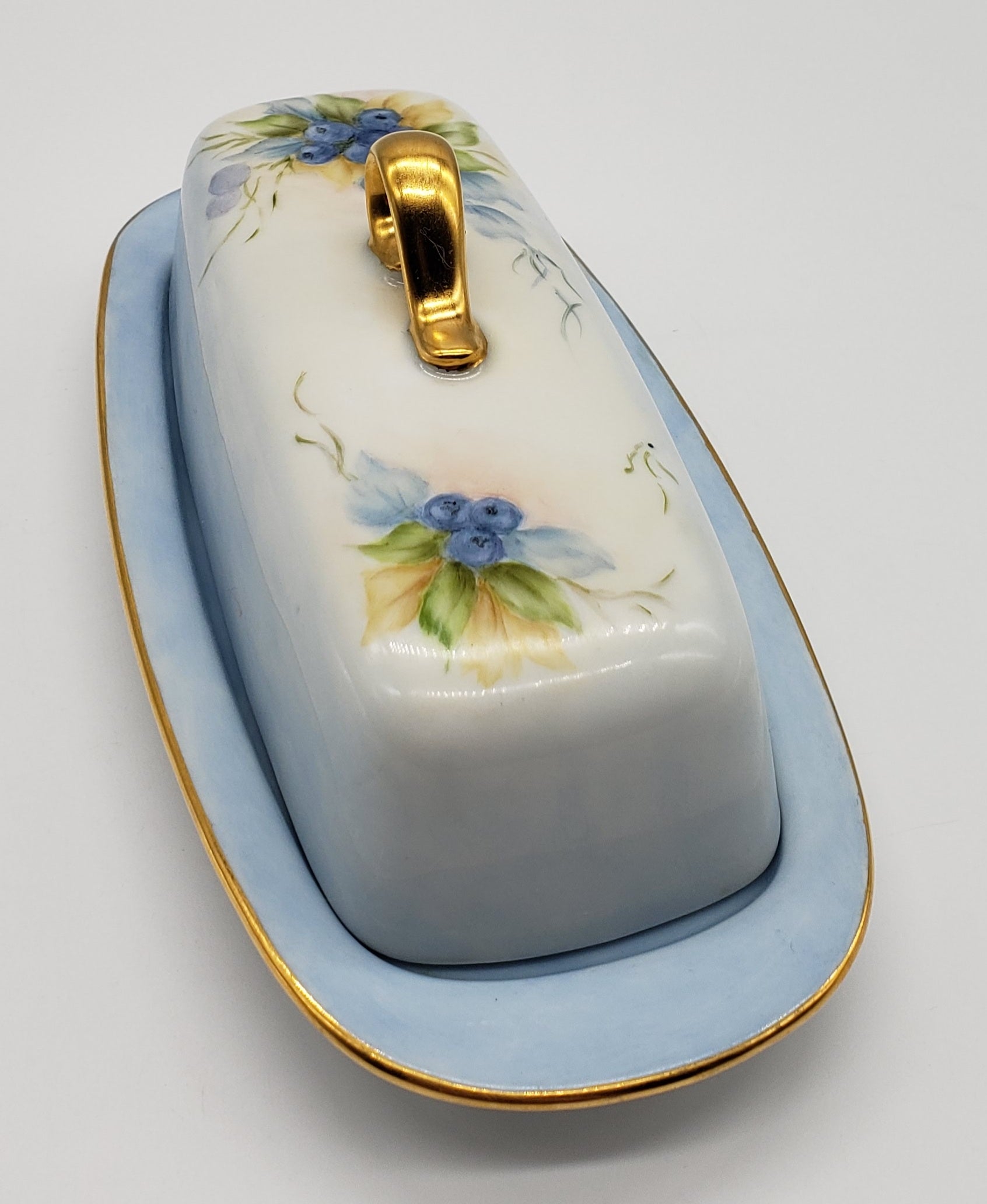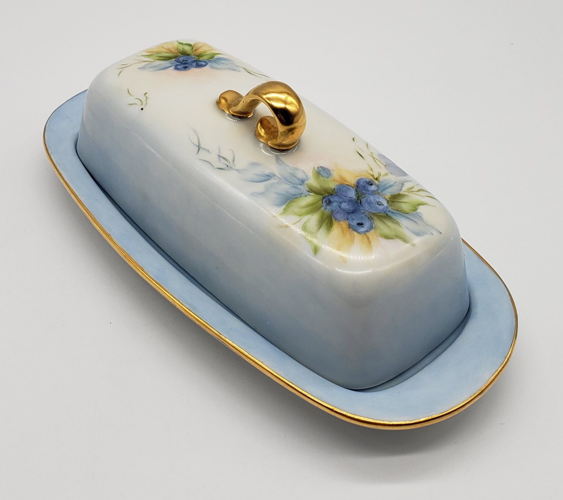 Vintage Hand Painted Blueberry Porcelain Butter Dish Artist Signed