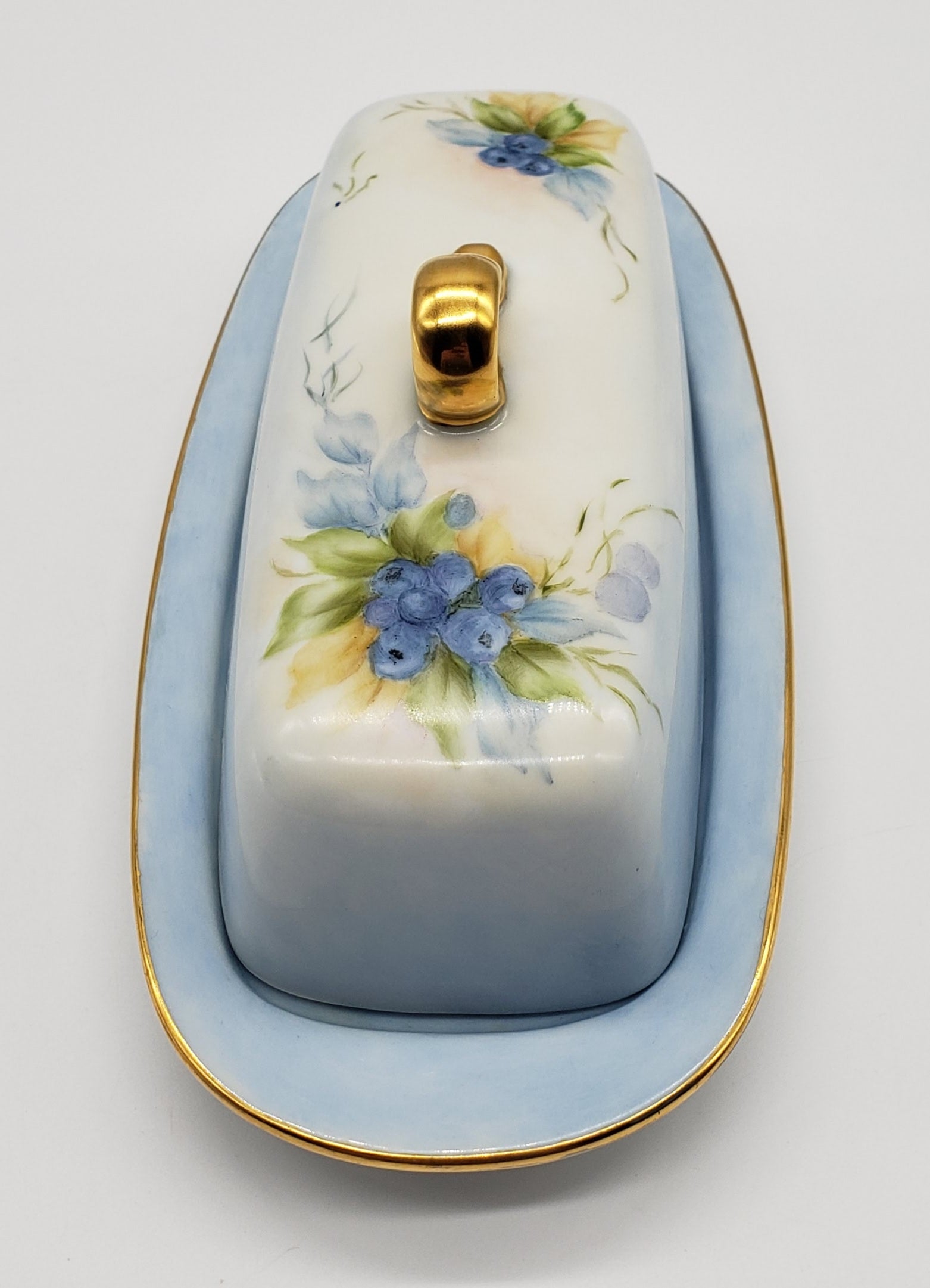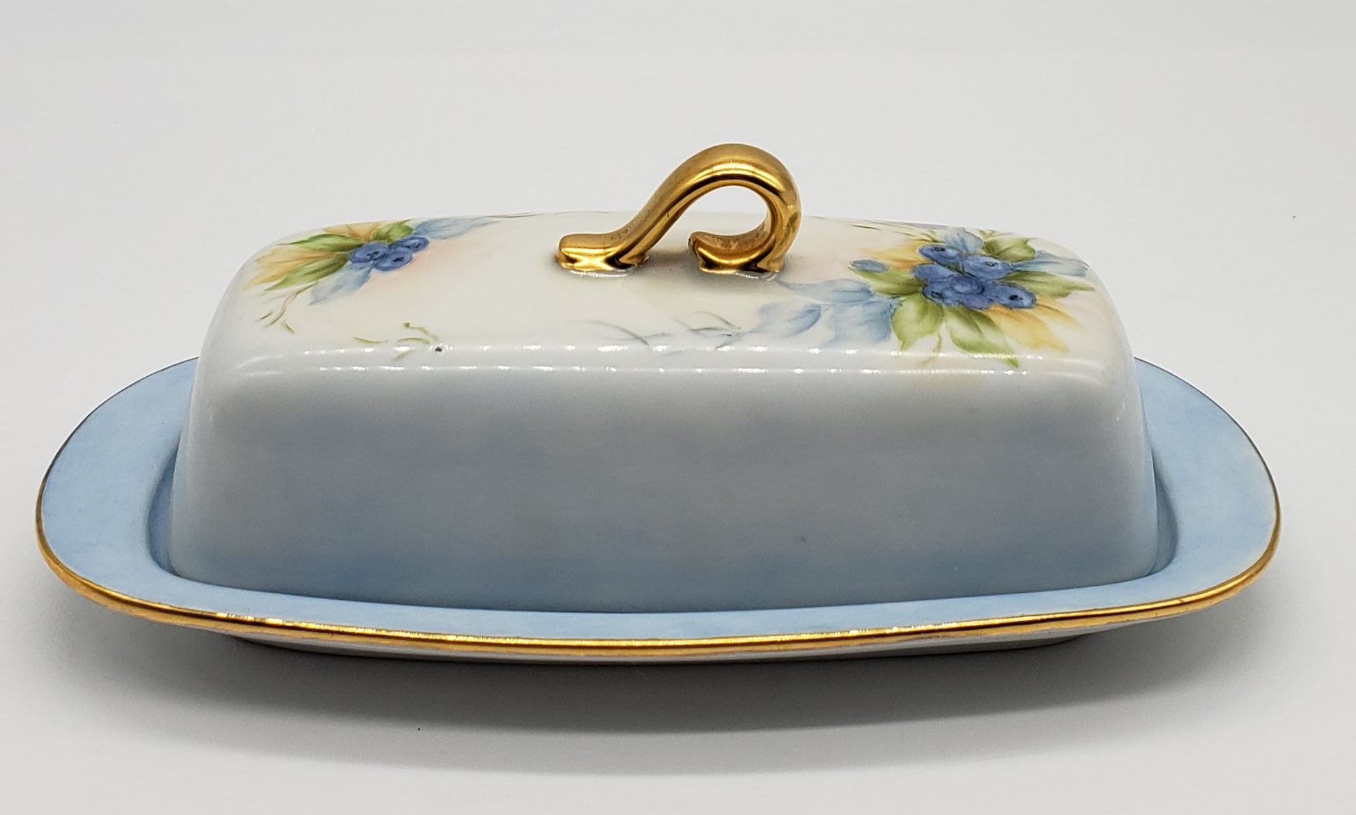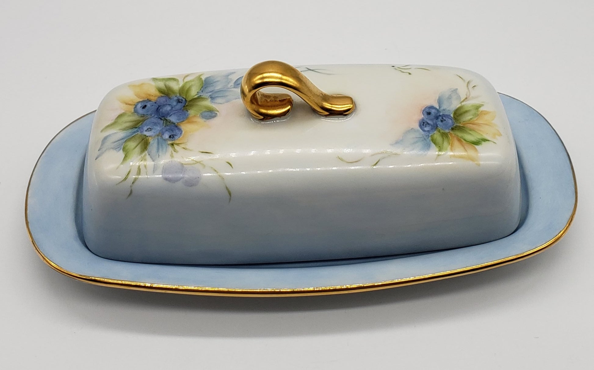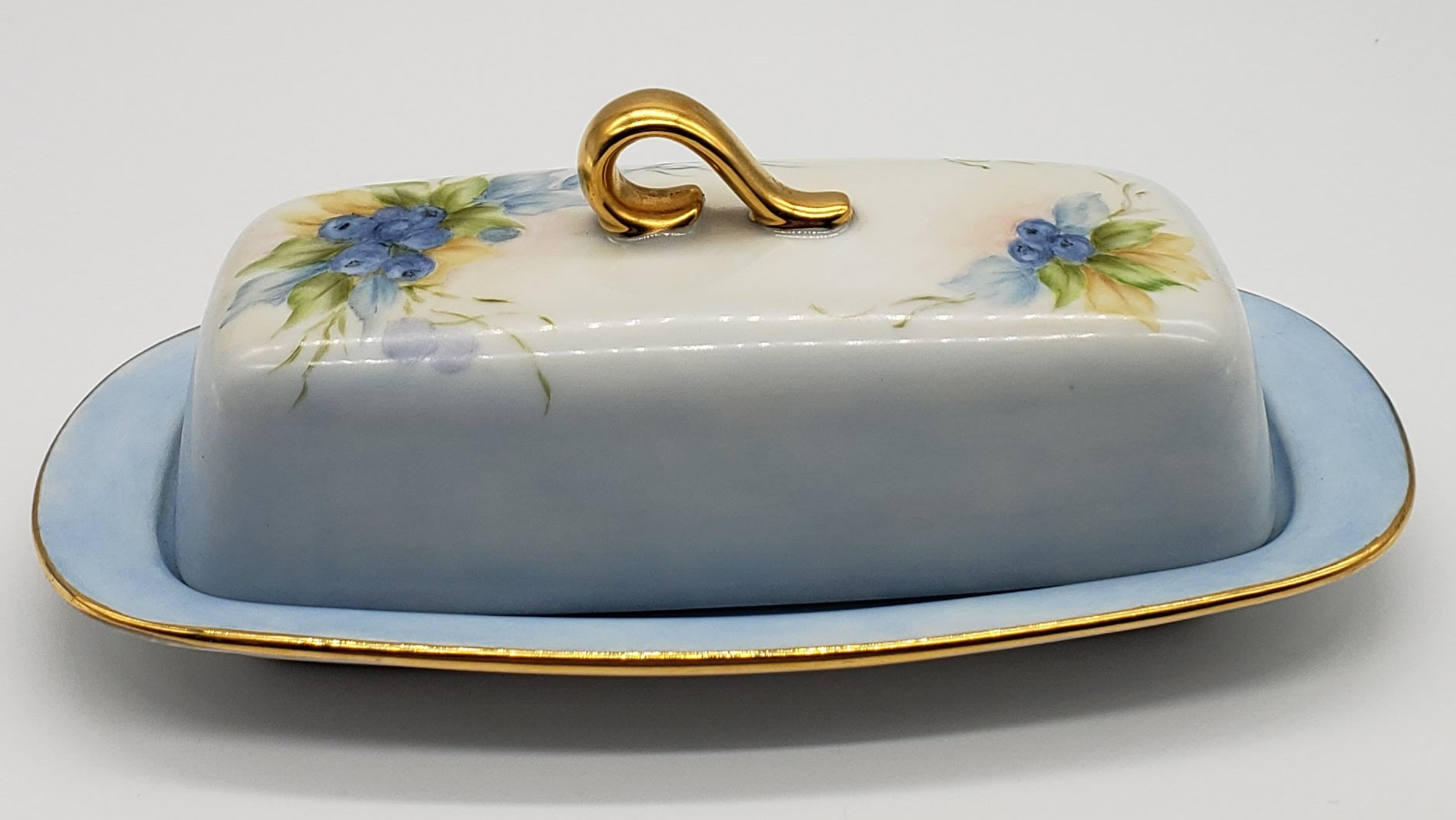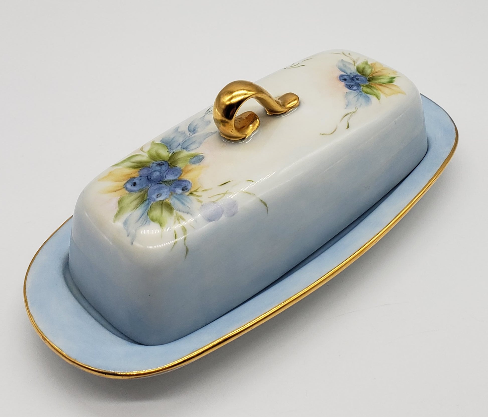 Vintage Hand Painted Blueberry Porcelain Butter Dish Artist Signed