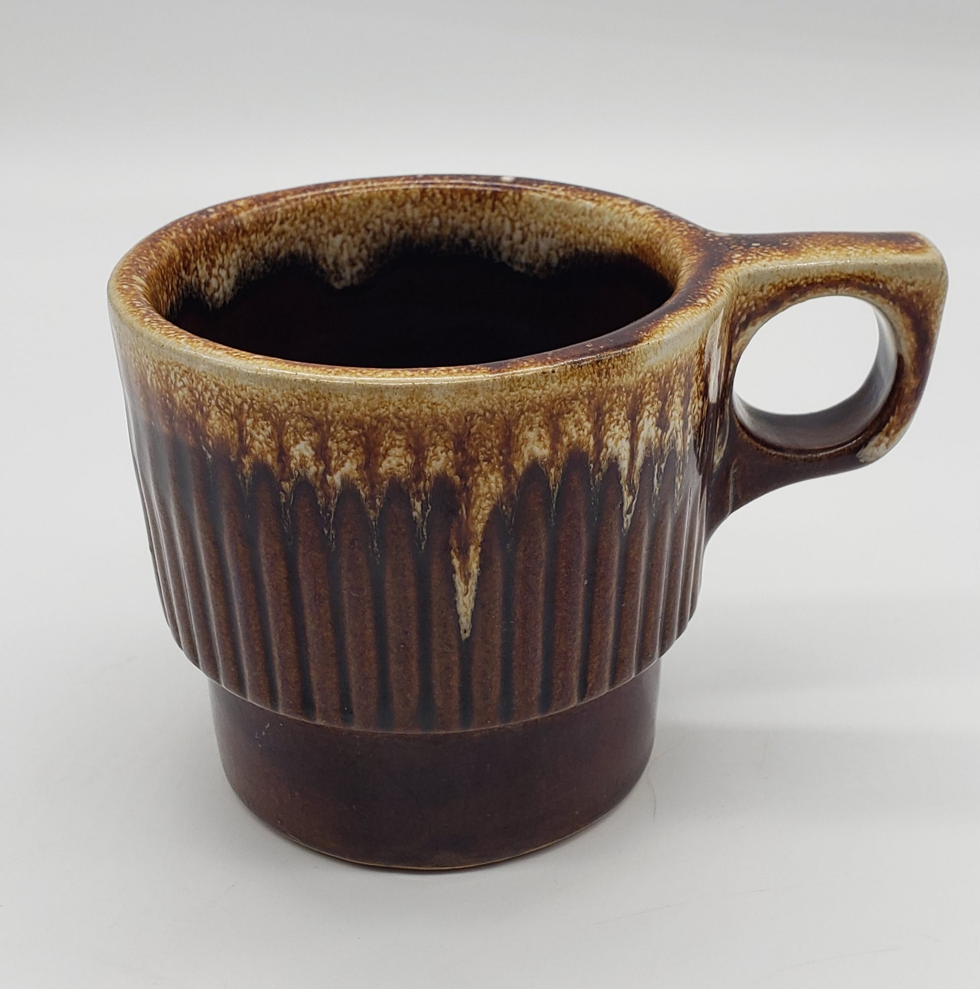 USA Monmouth Western Pottery - White on Brown Drip glazed Mug