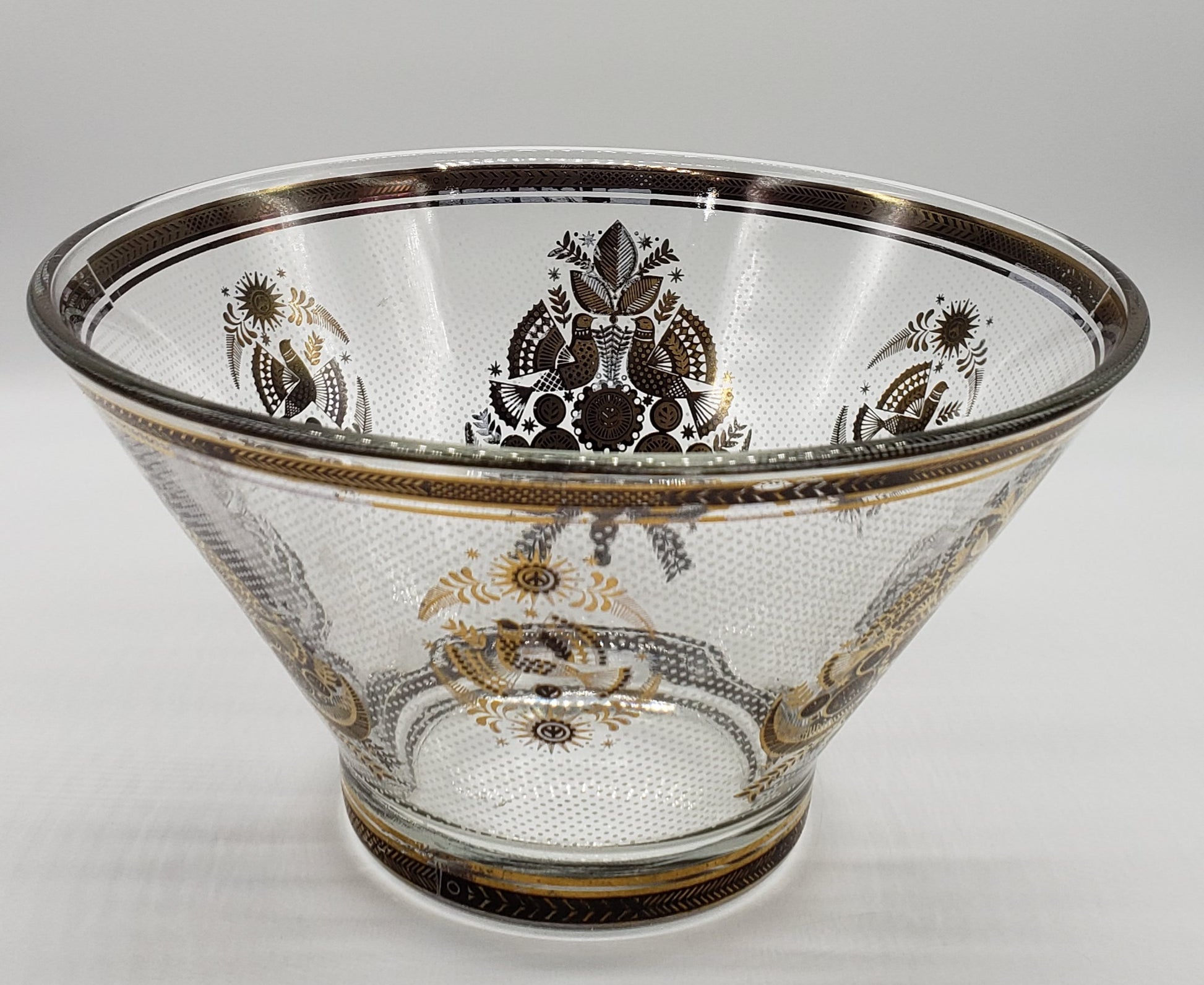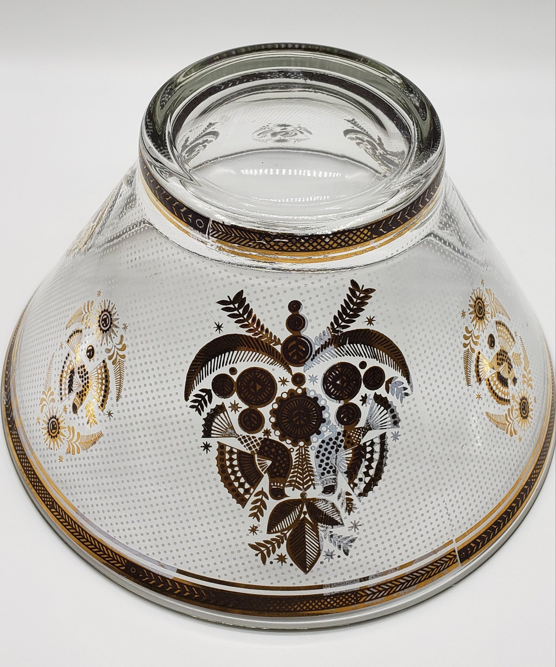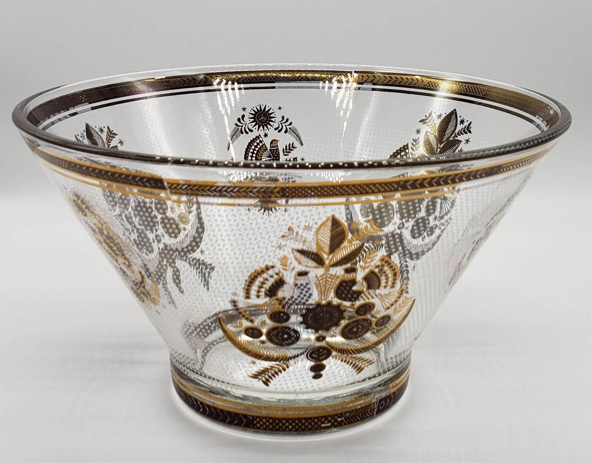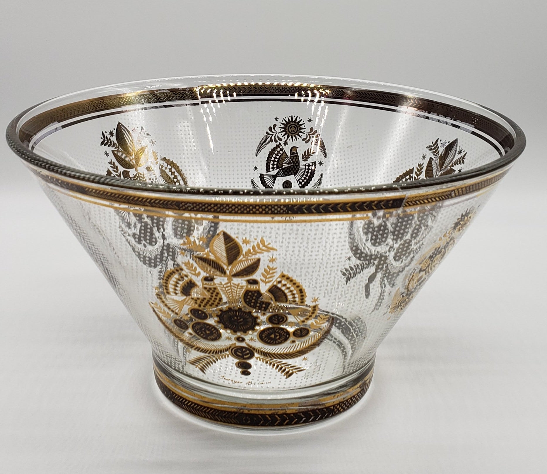 Georges Briard Sonata Serving Bowl Glass Applique Mid Century Modern Vintage Gold