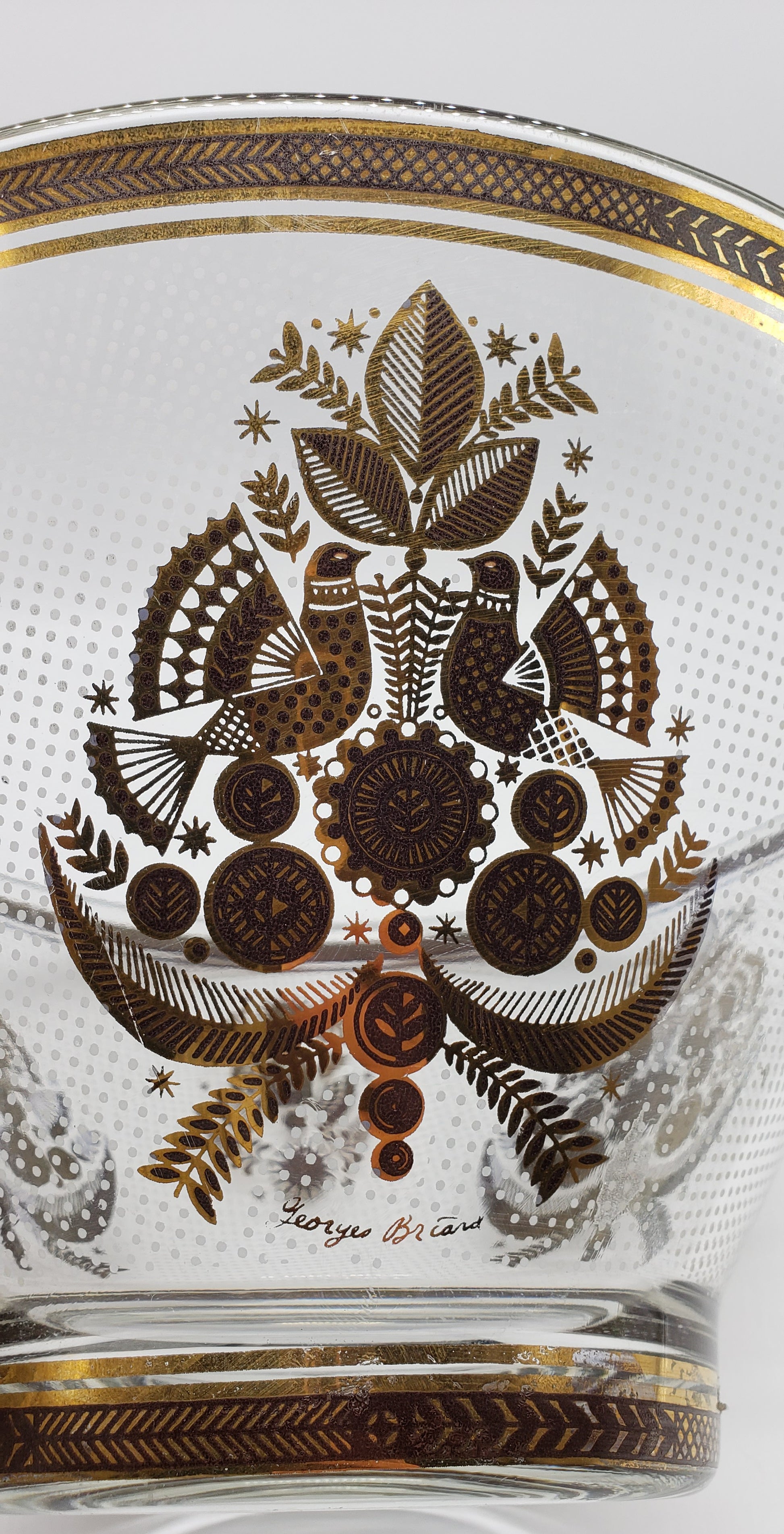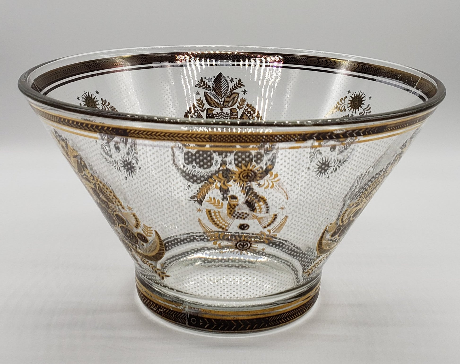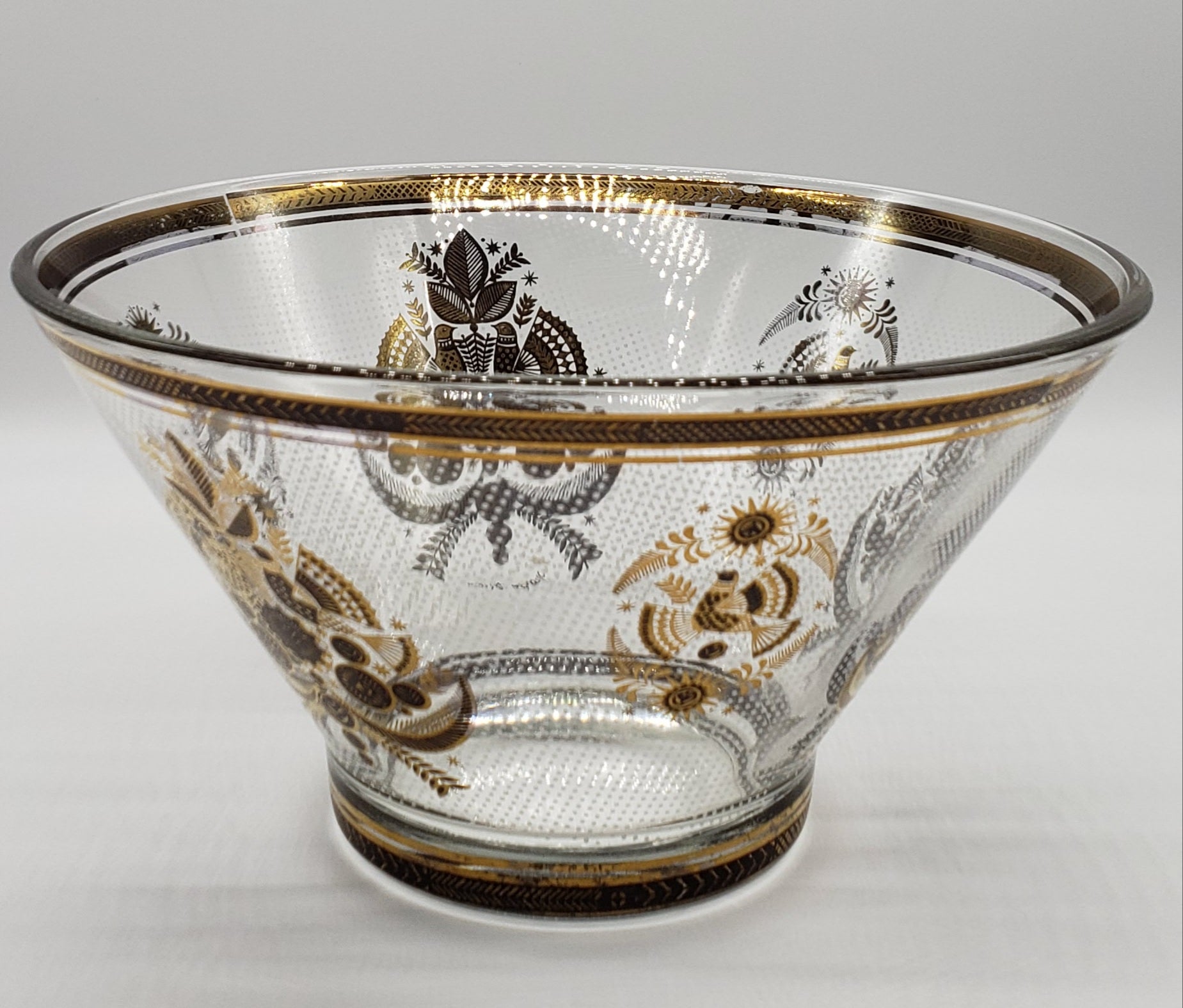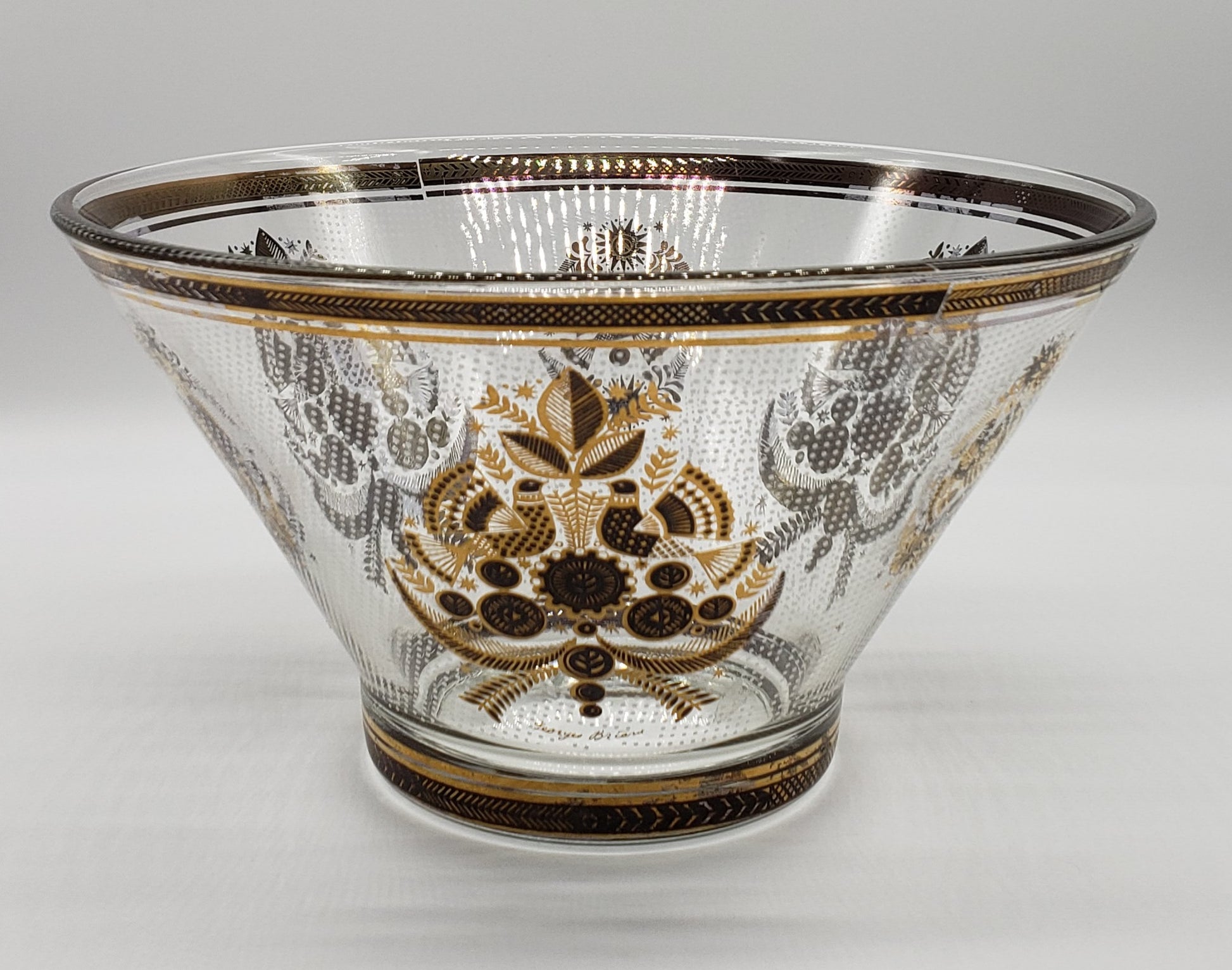 Georges Briard Sonata Serving Bowl Glass Applique Mid Century Modern Vintage Gold
